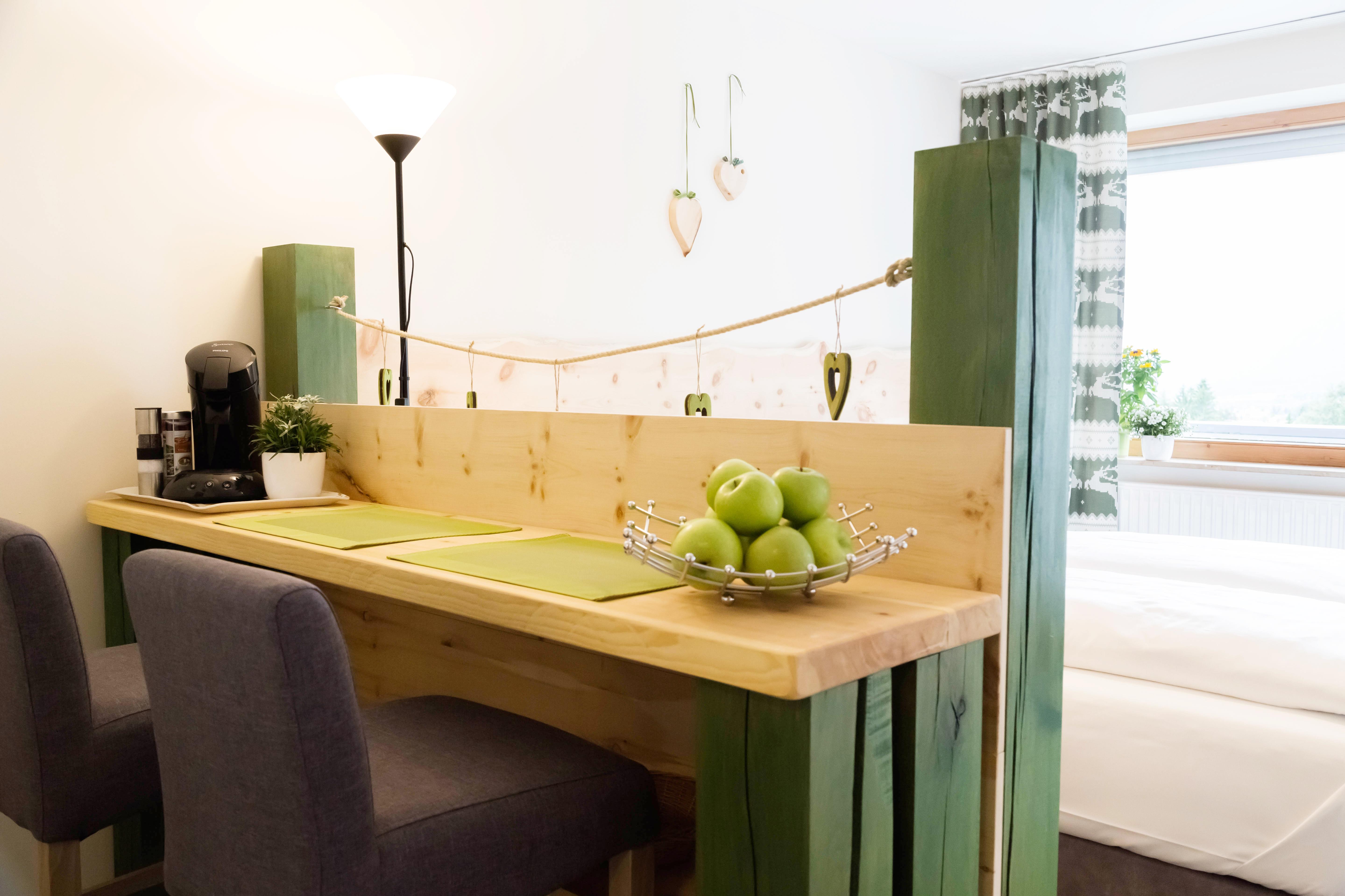 Wildgrüne Zirbenholzelemente, das hochwertige Box-Spring-Bett, die moderne Küche und natürlich alpenländische Dekoration sorgen für ein tolles Wohnklima.