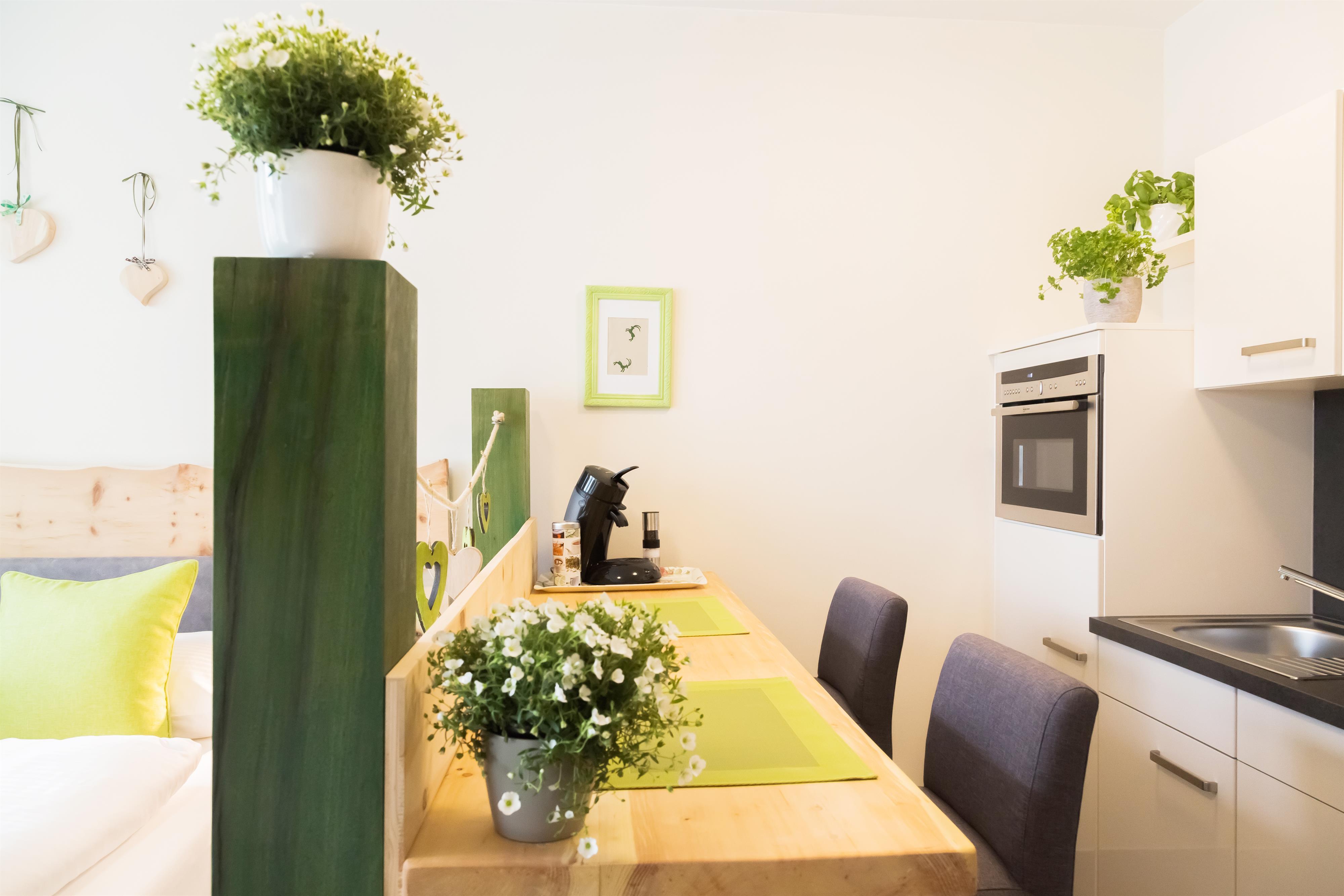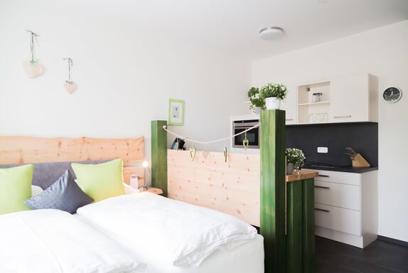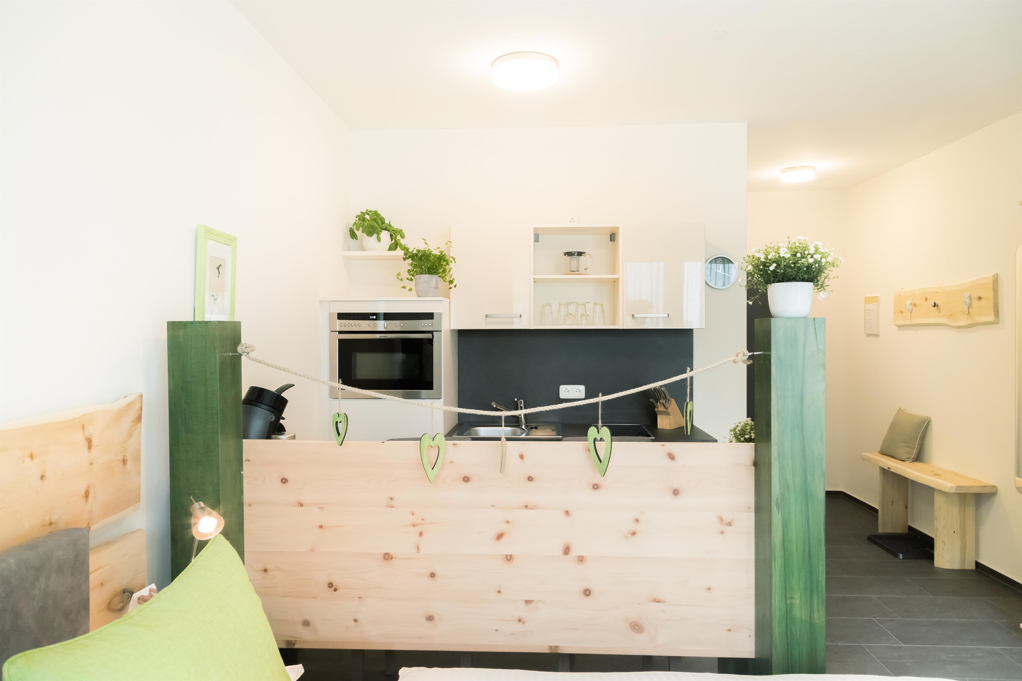 Wildgrüne Zirbenholzelemente, das hochwertige Box-Spring-Bett, die moderne Küche und natürlich alpenländische Dekoration sorgen für ein tolles Wohnklima.