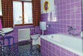 Bad mit Wanne, Waschbecken und WC. Fön. Zentralheizung.