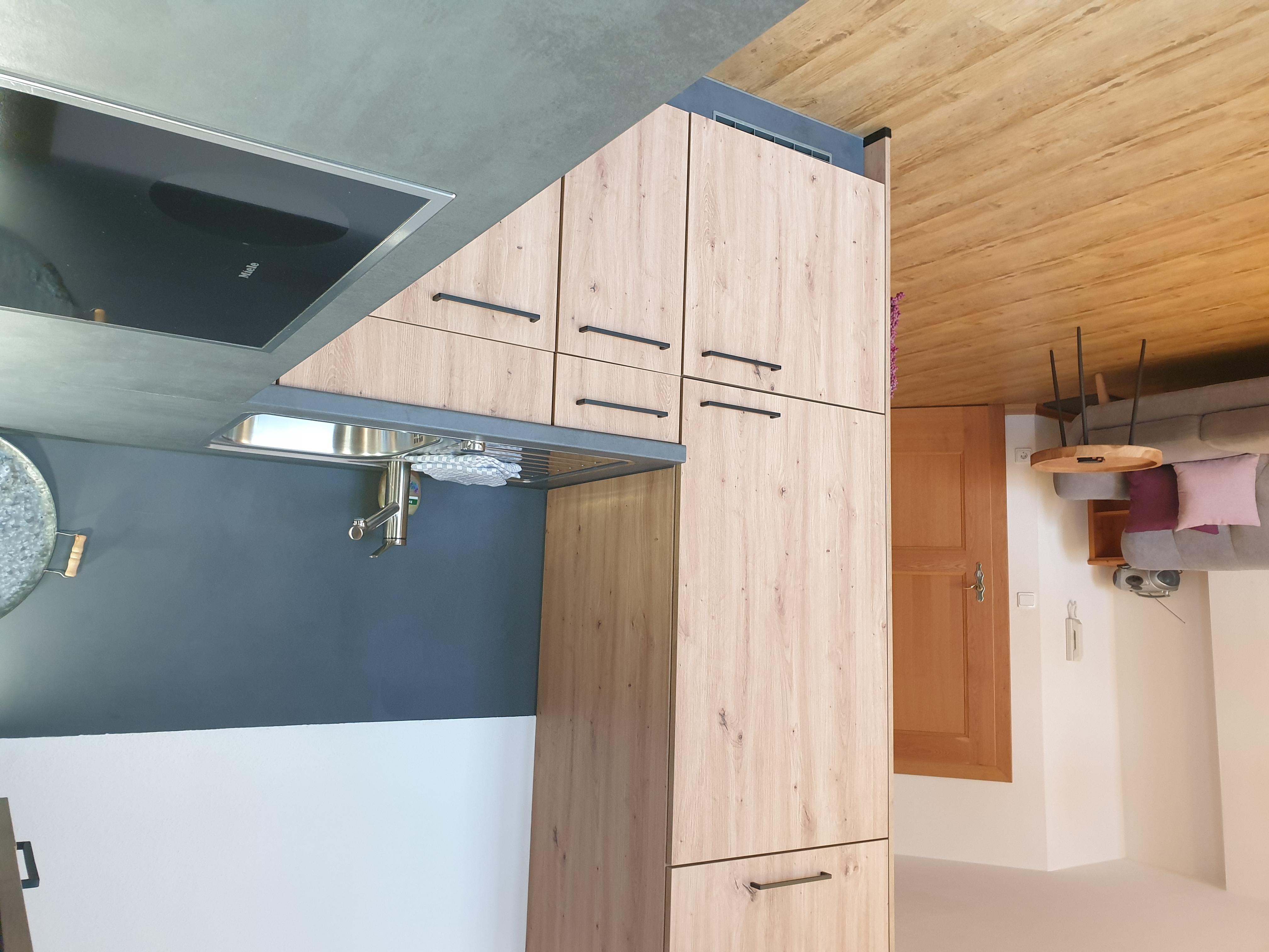 Die Wohnung verfügt über eine neue, komplett ausgestattete Küchenzeile, einen hellen Wohnraum mit Essecke, ein separates Schlafzimmer mit Doppelbett und ein Badezimmer mit Dusche.