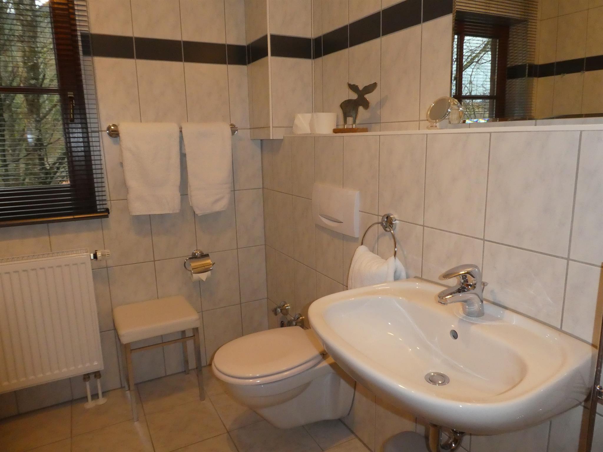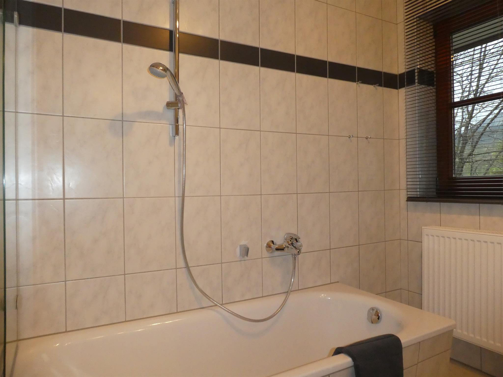 Das Badezimmer ist mit WC und Badewanne mit Duschvorrichtung ausgestattet.