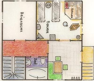 Untergeschoss: Sauna, Ski- und Trockenraum, Badezimmer mit Badewanne, WC, Waschmaschine