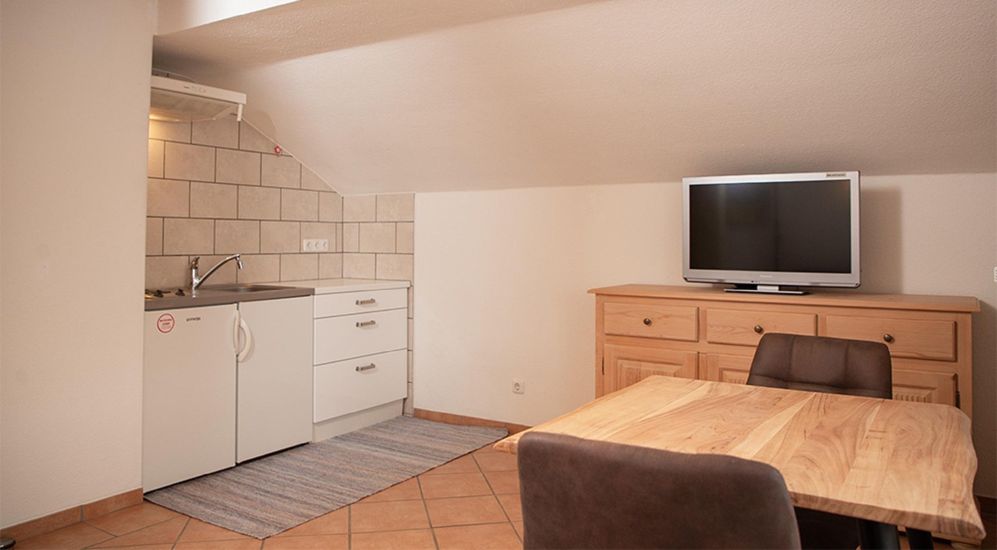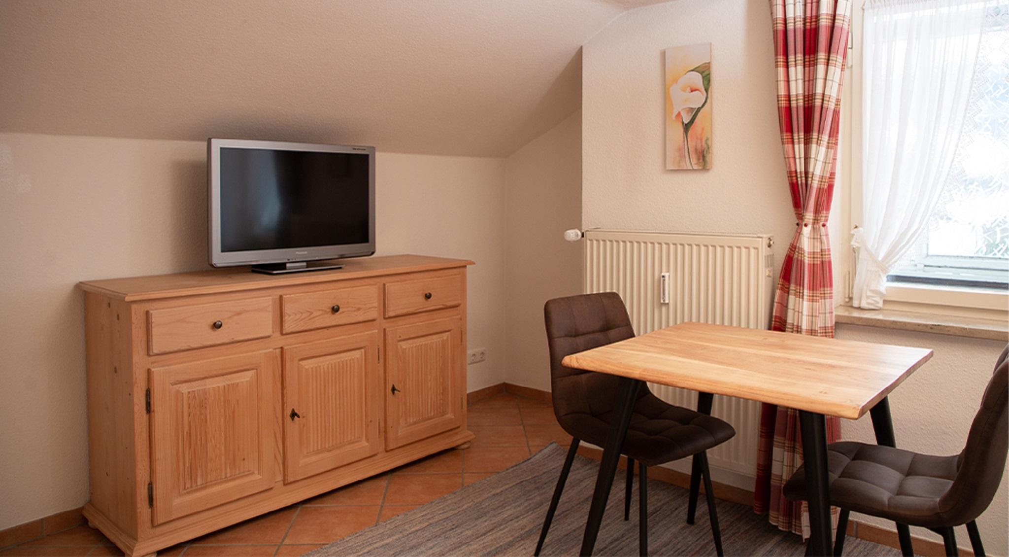 Das Rauchfreie Ferienappartement ca.50 qm befindet sich im 2. Obergeschoss unseres Hauses, mit seperatem Schlafzimmer und Balkon,sowie eine Wohnküche auch mit Balkon und kleinem Bad mit Badewanne. Die integrierte Küchenzeile ist mit allem ausgestattet was Sie im Urlaub benötigen. Selbstverständlich sind Tisch- und Bettwäsche sowie Handtücher im Mietpreis enthalten und Ihre Wertsachen können Sie bei Bedarf im Safe verstauen. Ein Kinderbett (0-6 Jahre) steht auf Anfrage kostenfrei zur Verfügung. Freies WLAN