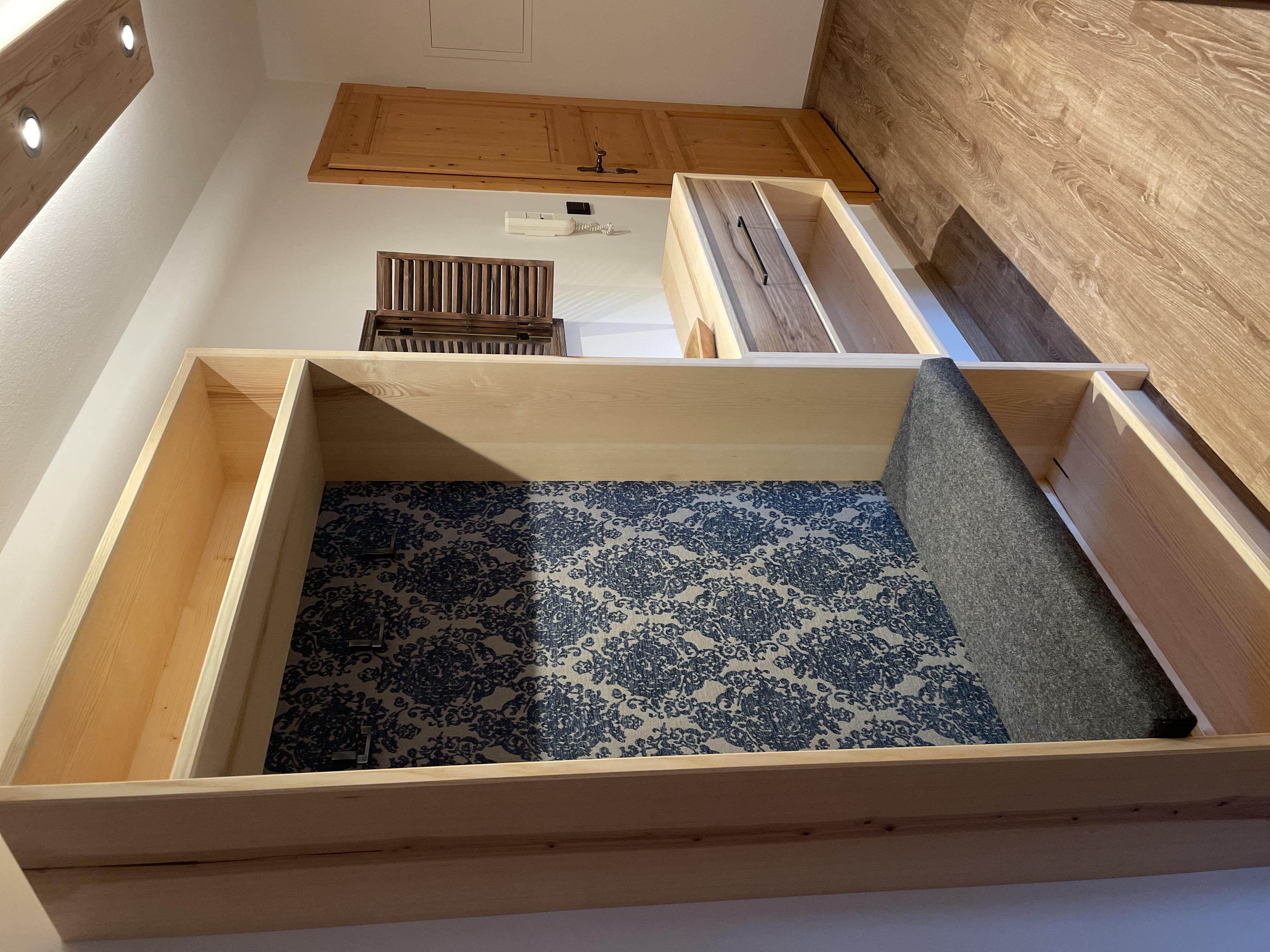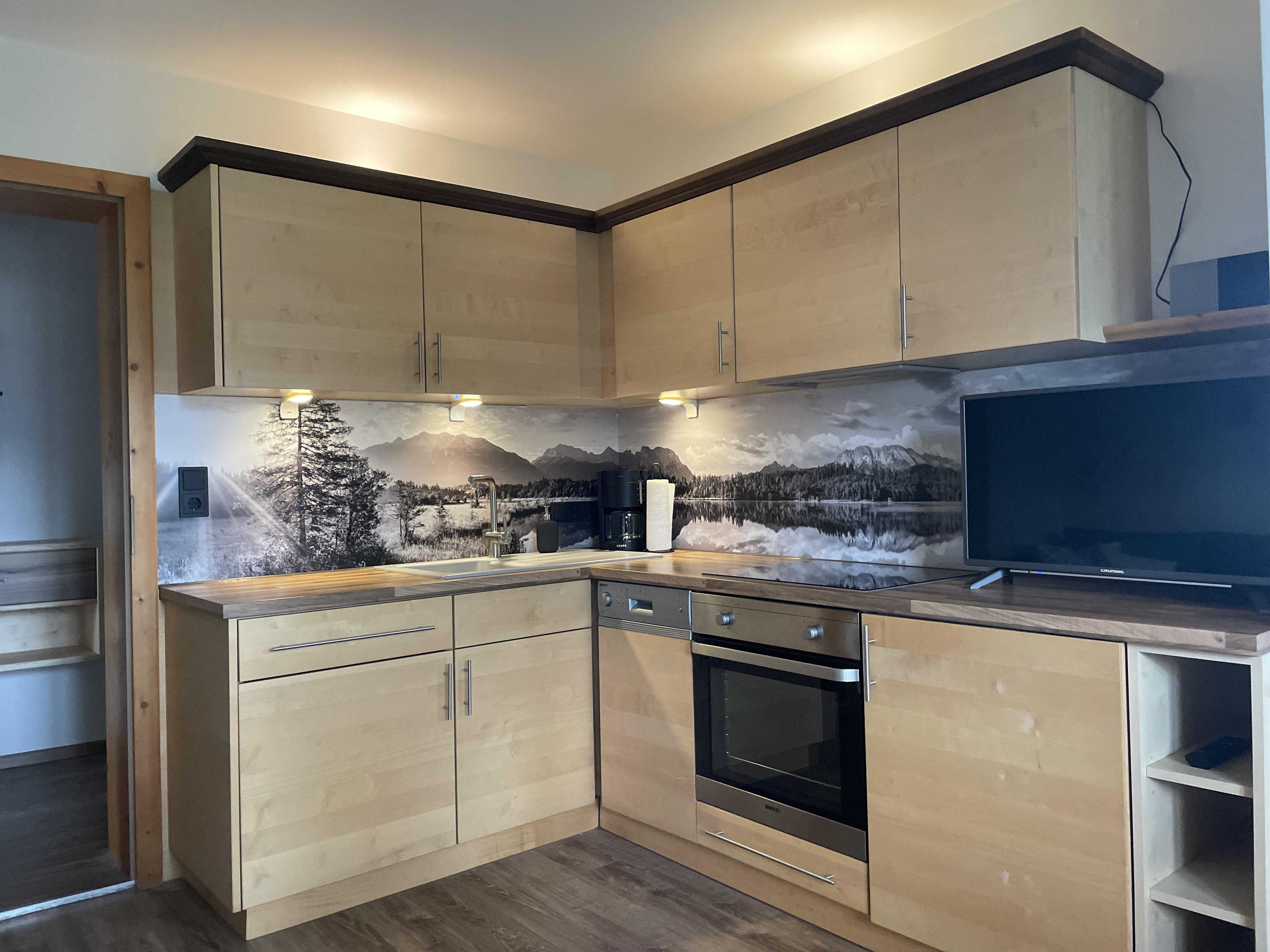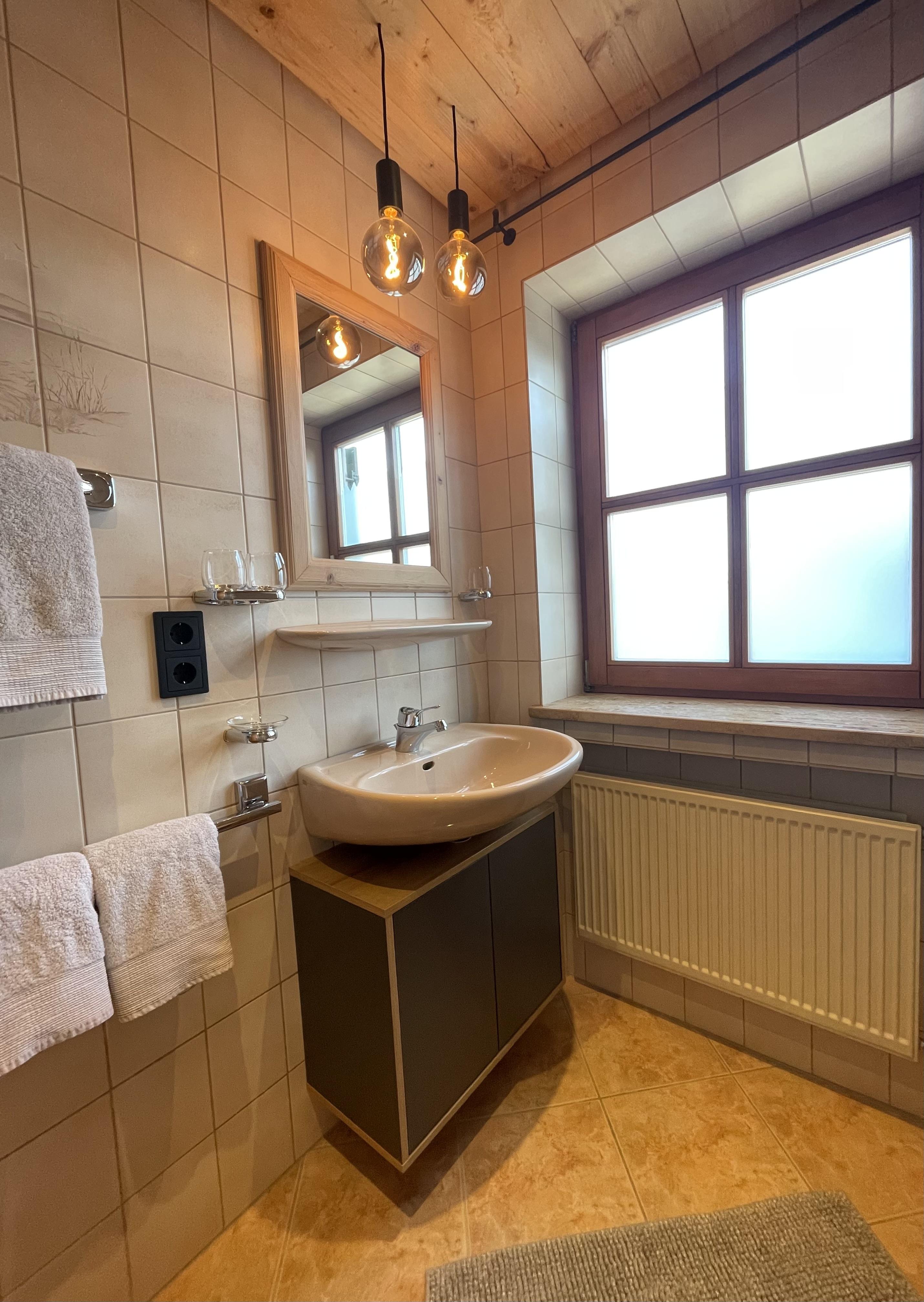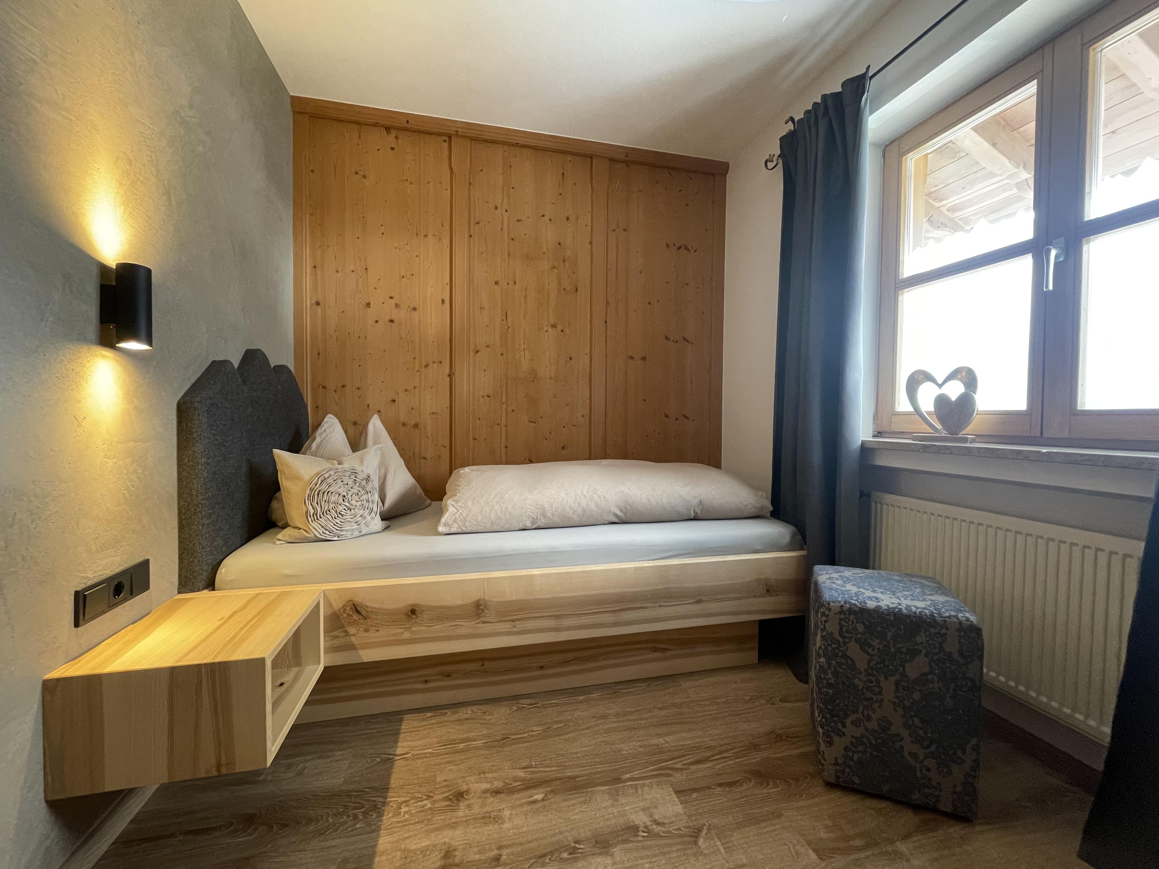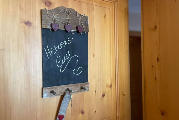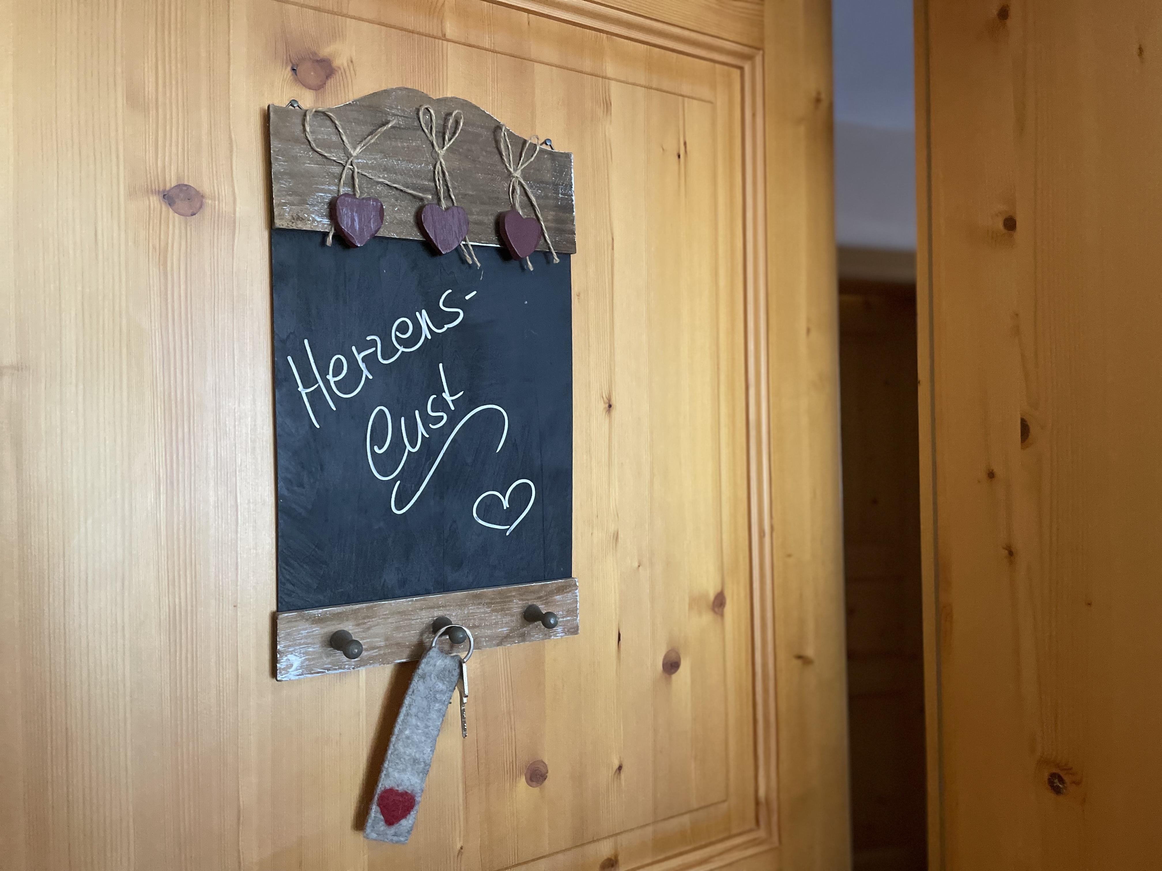 Ferienwohnung Herzenslust: Liebevoll eingerichtete Wohnung im 1. Stock unseres Hauses für 1-3 Personen mit großem Süd/Westbalkon, Gebirgsblick und Gartenmöbeln, 2 seperaten Schlafzimmern - 1 Schlafzimmer mit Doppelbett und ein kleineres Zimmer mit Einzelbett, Dusche/WC, komplett eingerichtete Küchenzeile mit Cerankochfeld, Spülmaschine, Backofen und gemütlicher Eckbank, Couch, Stereoanlage/CD-Player und Digitalem TV.