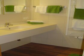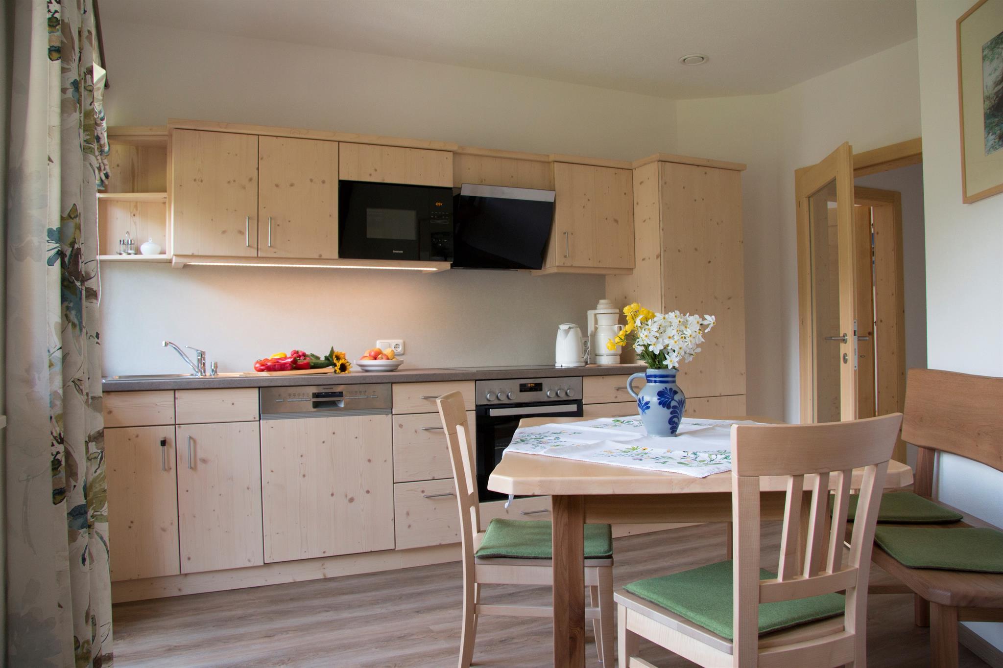 Ferienwohnung 60 m² im neu errichteten Gästehaus mit 2 getrennten Schlafzimmern, gerüumige Wohnküche mit Schlafsofa, gratis Internet, großer Terrasse mit herrlichem Ausblick auf viele 2000er, Freizeitraum, Panoramasauna im Haus. Wir bieten Ihnen ein Brötchenservice oder auf Wunsch verwöhnen wir Sie mit einem Frühstück. Viele Tiere zum Streicheln und Liebhaben am Hof. Im Sommer ist die Pyhrn Priel Card inclusive ( gratis benützung der Bergbahnen,..) und im Winter gratis Skibus direkt vorm Haus.