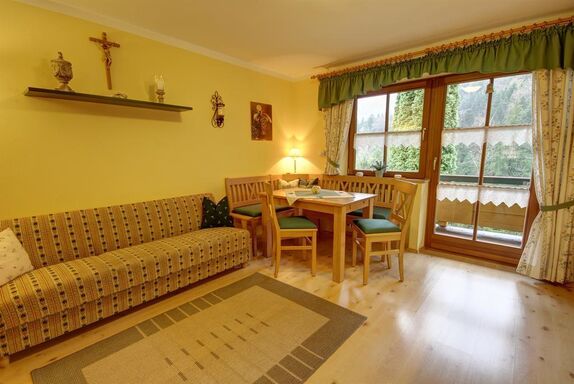 Die Ferienwohnung Weißbachblick ist behaglich eingerichtet und bietet Ihnen jeglichen Komfort für einen entspannten und angenehmen Aufenthalt. Eigener, teilweise Überdachter Süd-Ostbalkon mit unverbauten Blick auf Wiesen und Berge. Die Ausstattung im Detail: Kabel-/Sat-TV, Kühlschrank mit Tiefkühlfach, Geschirrspüler, Mikrowelle, Handmixer, Essecke mit großer Holzeckbank, gemütliche Schlafcouch, 1 separates Schlafzimmer, 2 Zustellbetten oder Babybett, Babyhochstuhl, Dusche/WC, Kosmetikspiegel, Balkon, Balkonmöbel, Doppelbett, Fön, Radio, Grillmöglichkeit, Liegewiese, Nichtraucher, Wohn/Schlafraum getrennt, Wohnküche, insgesamt 41m² gemütliche Wohnfläche. Inklusive Endreingung, Bettwäsche, Handtücher (Wechsel nach Wahl) und Geschirrtücher.