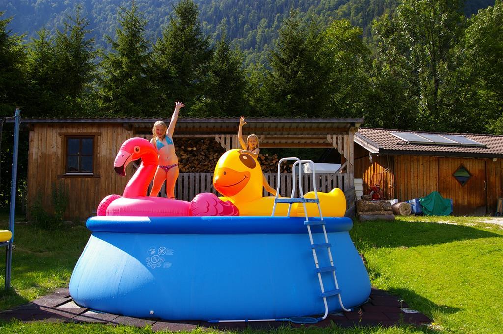 Großzügig eingerahmt vom Bergwald und großen Wiesen und Garten um unser Haus, laden Sie Kinderspielplatz mit großem Trampolin, Spielturm mit Sandkasten, Schaukeln, Kinderfußballplatz, großen Kinderpool und Grillplatz ein.