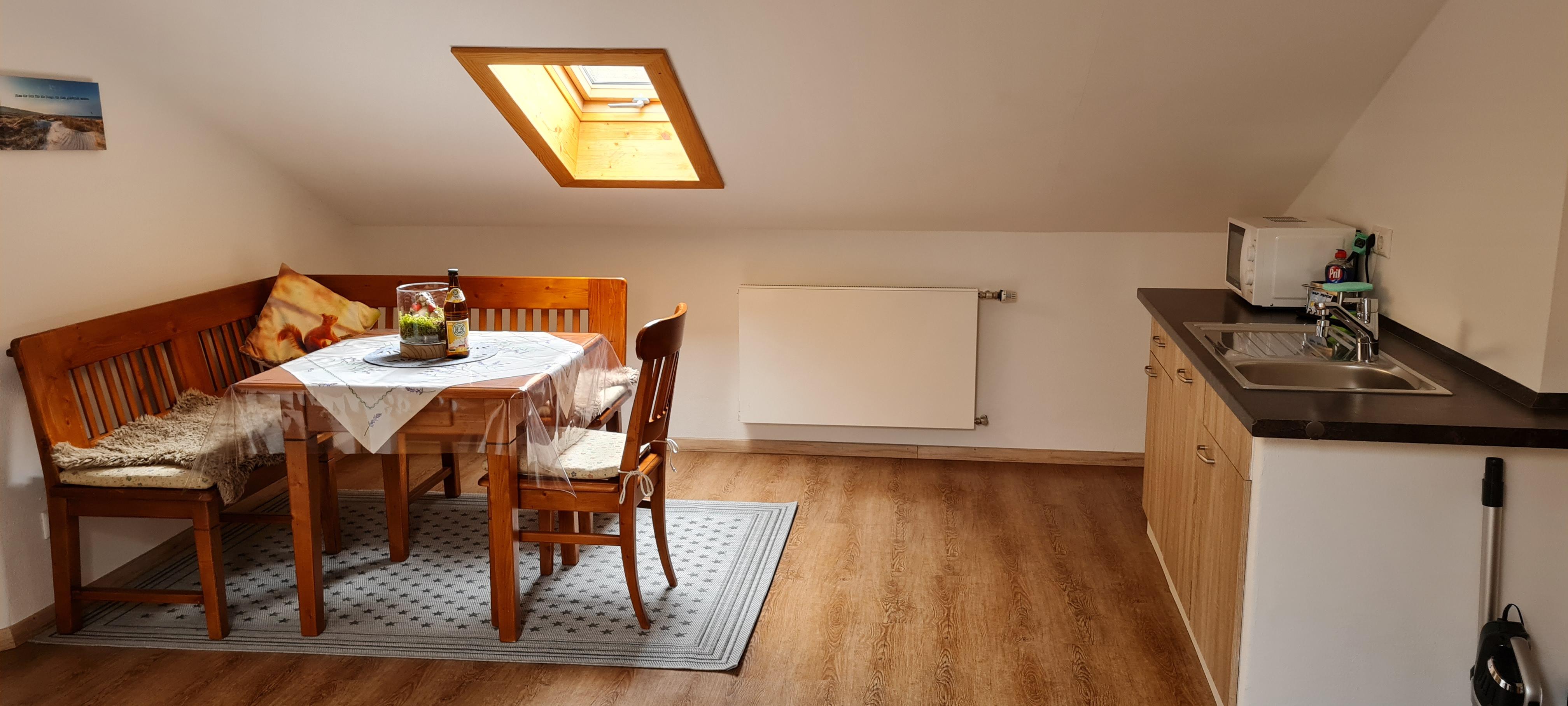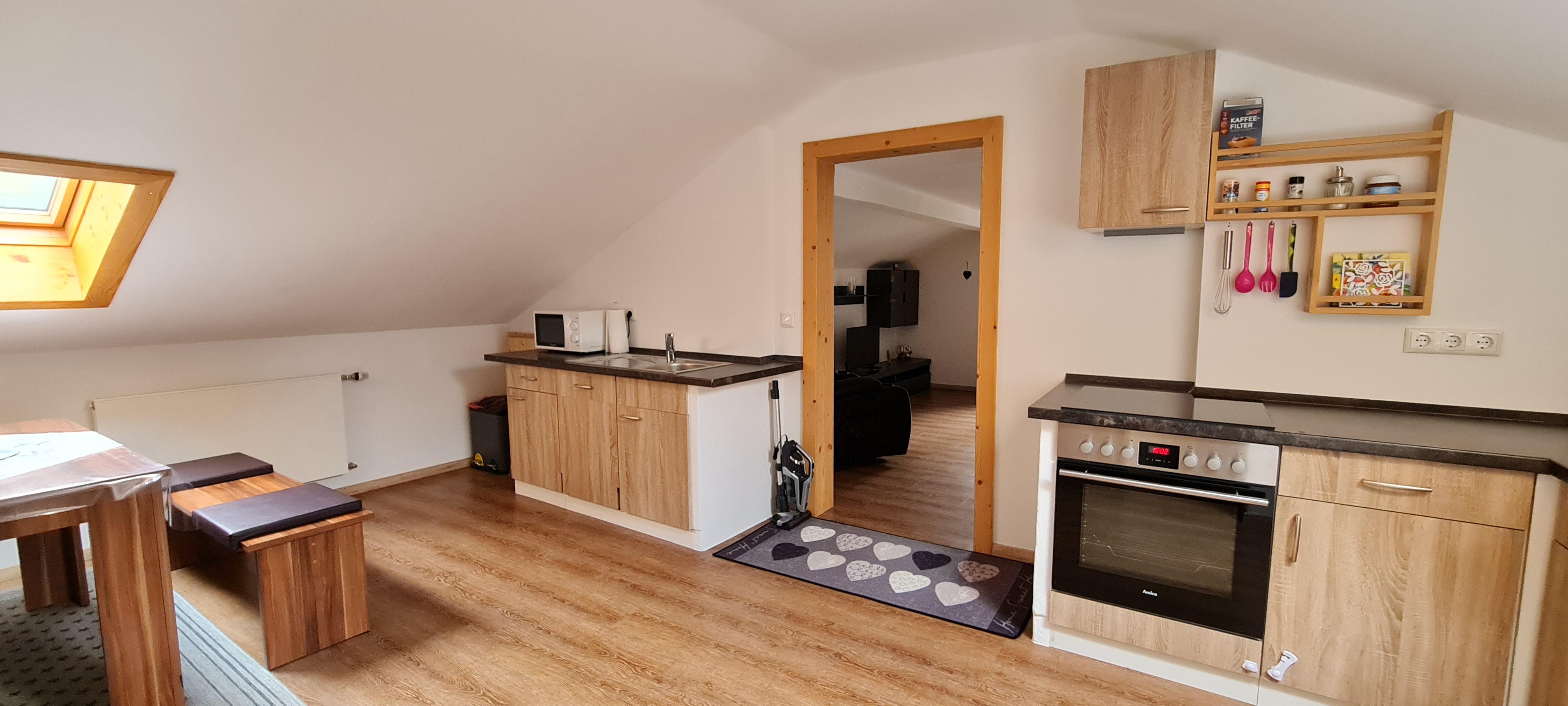 Im 2 Stock befindet sich unsere 50qm große Wohnungmit Balkon geräumiger Küche, Spühlmaschiene Wasserkocher, Kaffeemaschine und allem nötigen was Sie im Urlaub benötigen , das Schlafzimmer ist separat, im Wohnzimmer befindet sich ein TV sowie eine Schlafcouch für 1 Personen