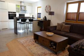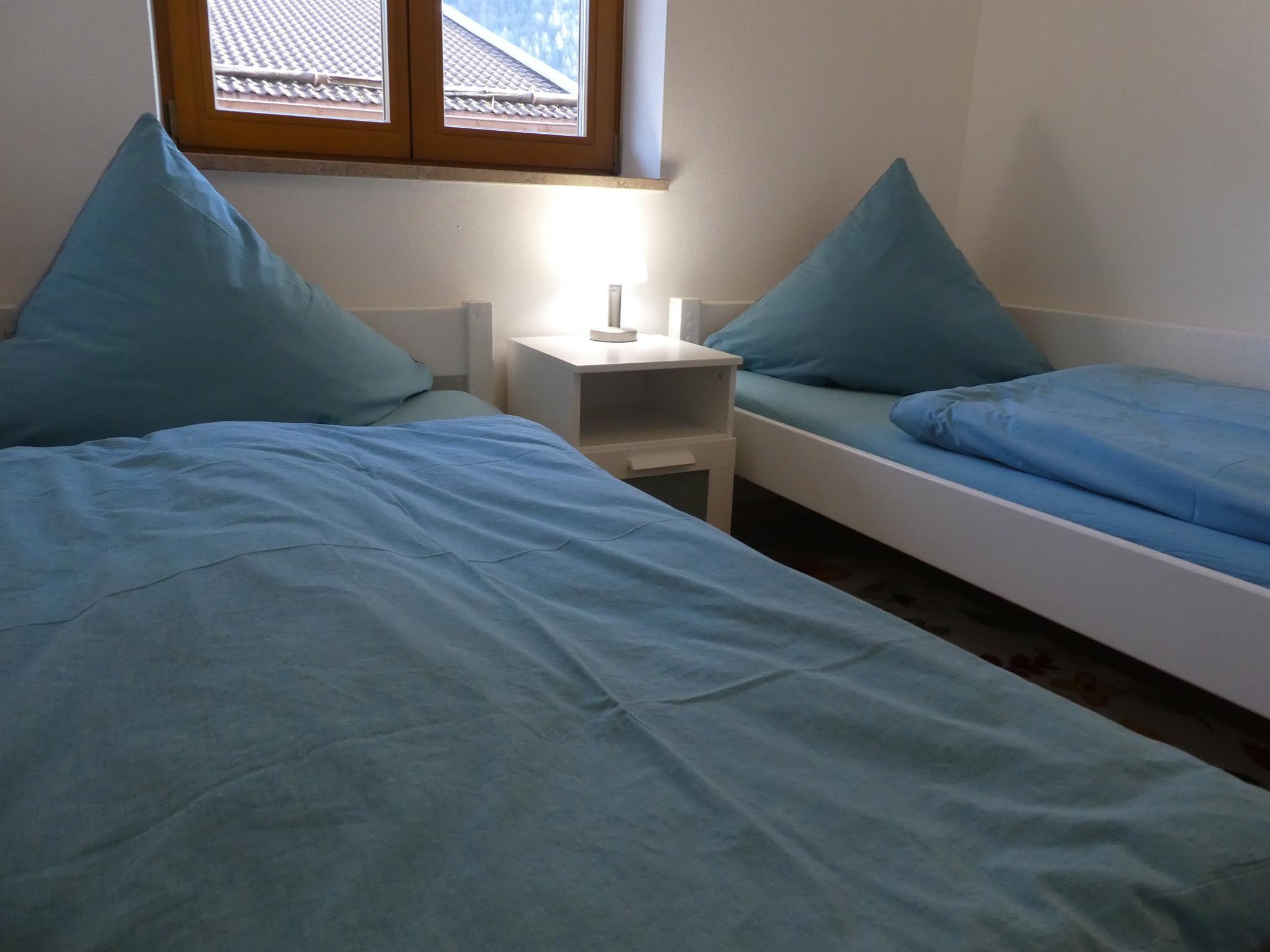 Komfortable, geräumige Ferienwohnung im 1. OG mit Aufzug, in ruhiger, zentraler Lage. Guter Ausgangspunkt für Wanderungen und Städtetouren, bequeme Bus- und Bahnanbindungen. 1 Schlafzimmer mit Doppelbett, 1 Schlafzimmer mit zwei Einzelbetten, 1 Badezimmer mit bodengleicher Dusche, Wohnraum mit Schlafcouch und hochwertiger Küchenzeile, Theke, Essecke und zwei möblierte Südbalkone. PKW-Tiefgaragenstellplatz, W-lan, Handtücher und Bettwäsche inklusive.