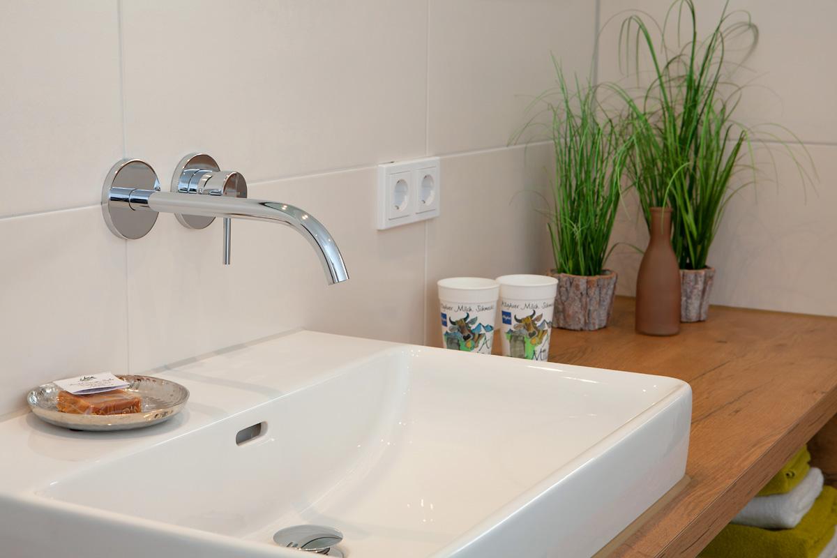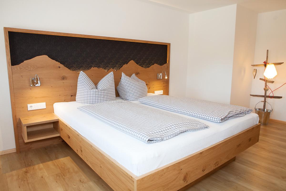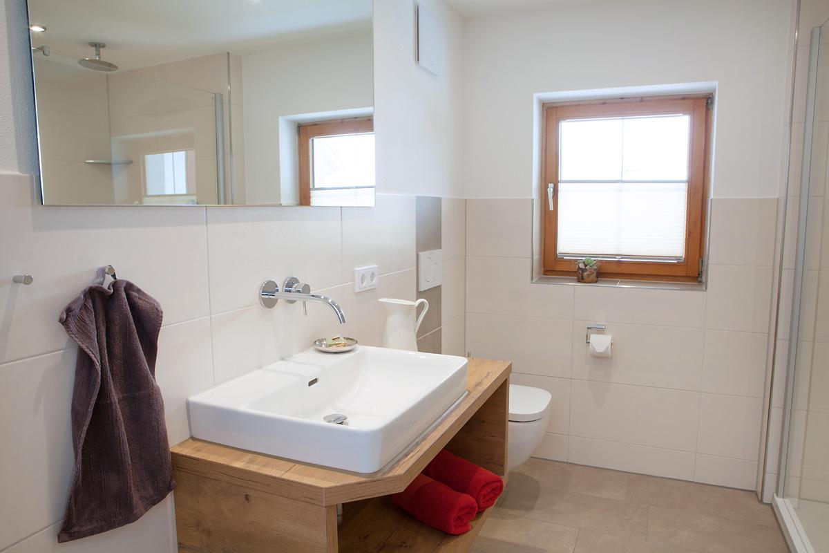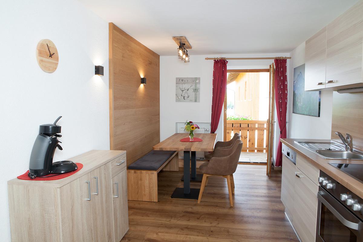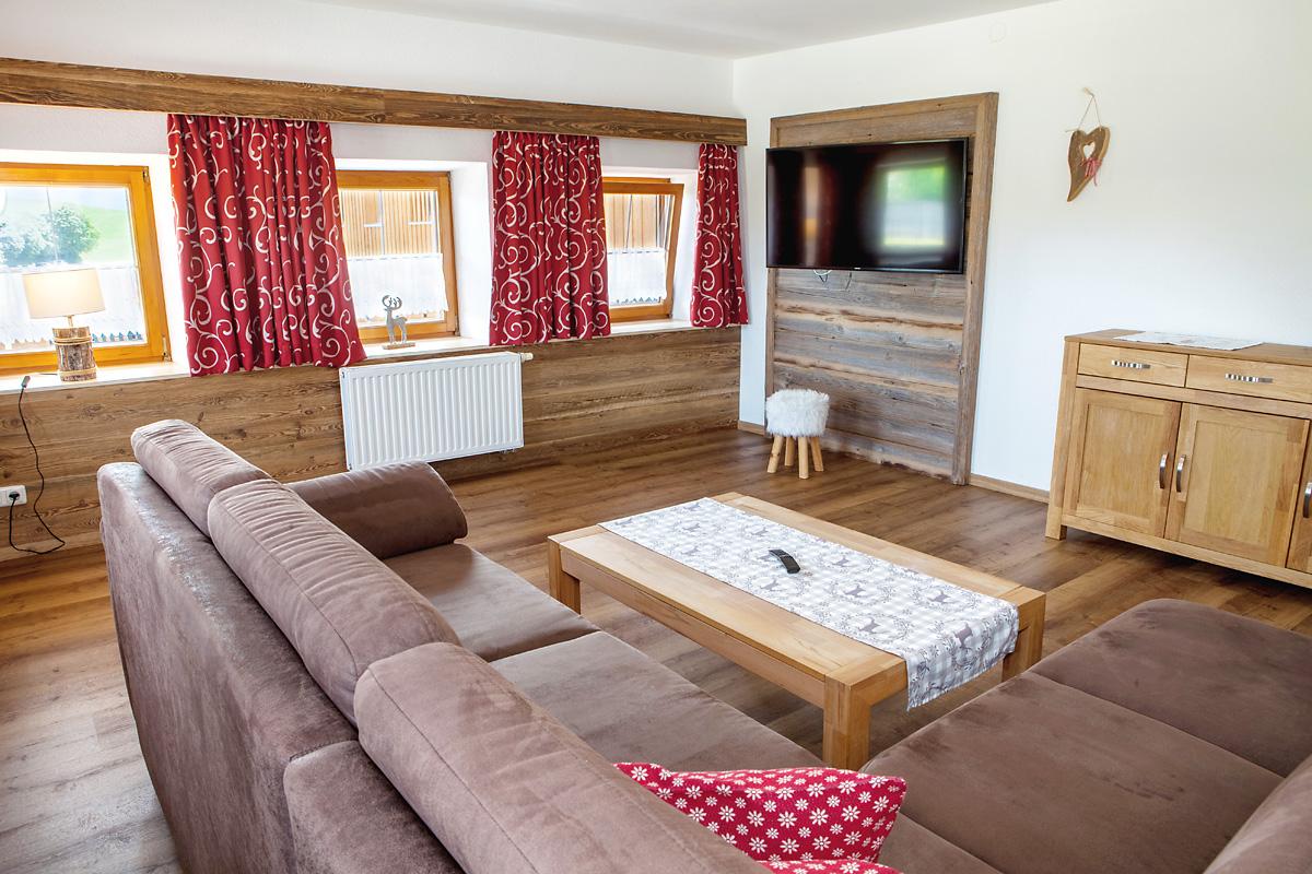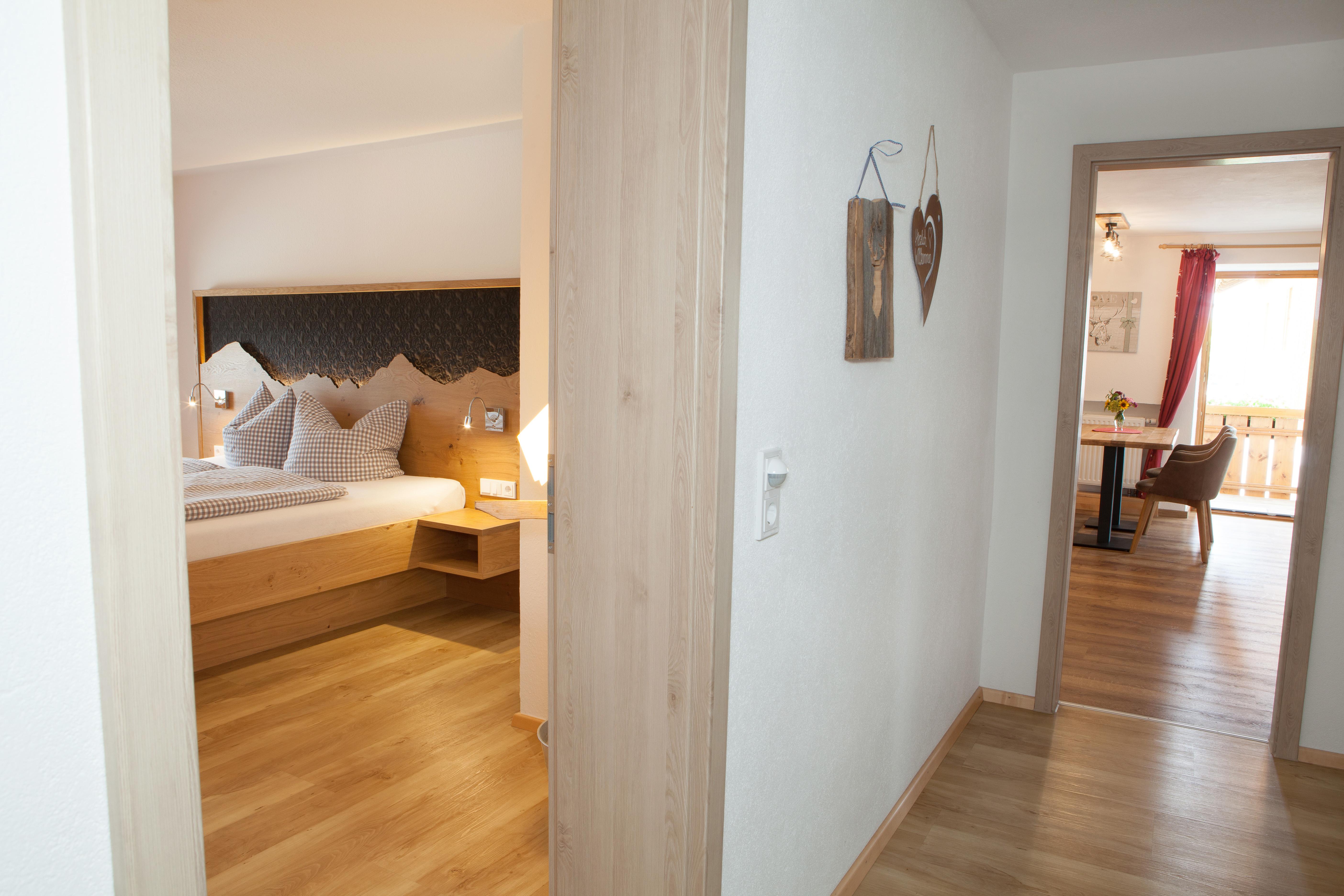 Die 5-Sterne-Ferienwohnung Säuling (103 qm) ist im Bauernhaus im 1. Stock. Sie ist bestens geeignet für 2 bis 4 Personen. Es gibt zwei Schlafzimmer mit je einem Doppelbett (ein Schlafzimmer mit Flachbild-TV und kleines angrenzendes Kinderzimmer mit Gitterbett). Das große Wohnzimmer mit Sofa und Flachbild-TV lädt zum Verweilen ein. Die Küche ist voll ausgestattet mit Esstisch, Spülmaschine, Backofen, Kühlschrank, Kaffeemaschine, Wasserkocher etc.! Von dort aus haben Sie Zugang zum Balkon. Es gibt zwei Badezimmer mit Regendusche und WC.