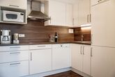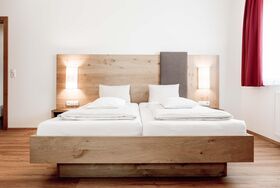 Appartement für 4-5 Personen mit ca. 60 m² Wohnfläche. Das Appartement Deluxe verfügt über 2 Schlafzimmer mit je einem Doppelbett und zusätzlicher Schlafcouch für 1-2 Personen, 2 Badezimmer mit Dusche und WC, Vorraum, Wohnküche mit Essbereich und vollausgestatteter Küche mit Kühlschrank/Gefrierfach, Mikrowelle, Ceran-Kochfeld, Kaffeemaschine, Geschirrspüler, Kochutensilien und Geschirr. Alle Appartements und Zimmer sind mit Telefon, TV, Safe, Föhn und WLAN Internet ausgestattet.