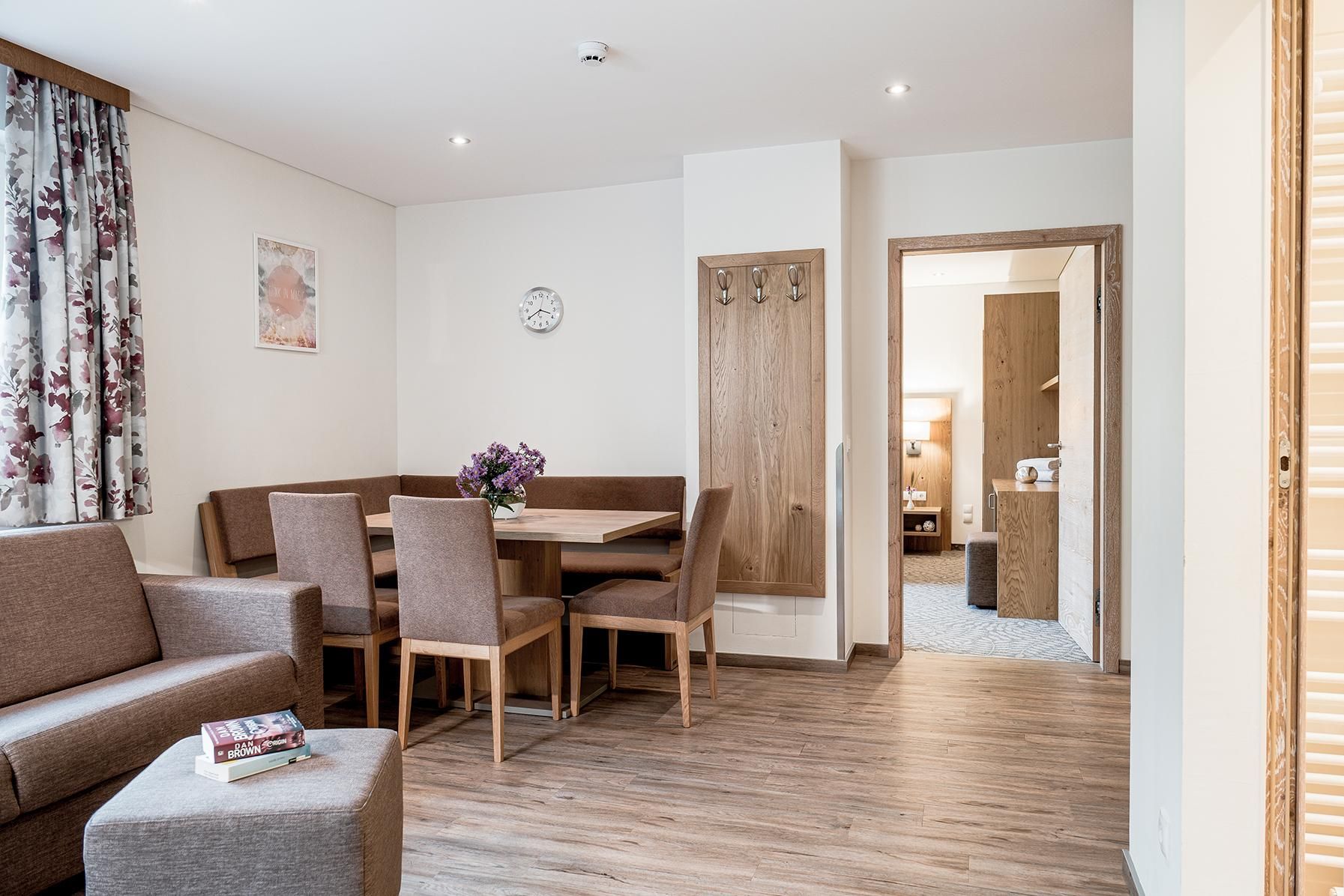 Die vollausgestatteten Appartements und Zimmer sind großzügig gestaltet, warme Farben und viel Holz sorgen für ein angenehmes Wohngefühl. Eine wohltuende Auszeit und Ruhe genießt du im kleinen, aber feinen Wellnessbereich mit Finnischer Sauna, Kräutersauna und Infrarotkabine. Weiteren Komfort bietet die Parkgarage (reservierungs- und kostenpflichtig) mit direktem Zugang zum Appartementgebäude und zum Aufzug sowie ein Ski- und Schuhraum mit beheizten und verschließbaren Skisafes.