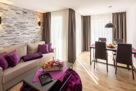 3 Zimmer Appartement mit einme Wohnbereich und komplett ausgestatteter Küchenzeile,einem Doppelzimmer mit Boxspringbett und einem Kinderzimmer mit Stockbetten., Sat/TV in allen Räumen, Wlan , externe Lüftungsanlage, Regendusche/WC ,Föhn, Zimmersafe, Terrasse/Balkon, Südlage, incl. Königscard.