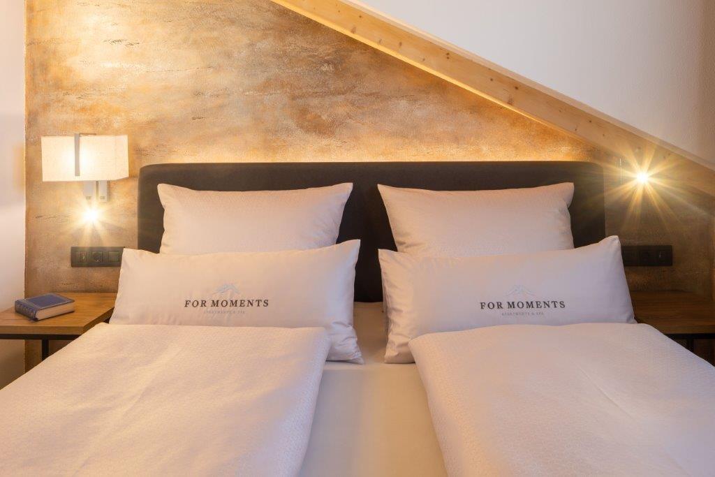 Erleben Sie Ihren Moment in der neu erbauten Ferienanlage FOR MOMENTS - Appartement & Spa mit zwei Appartementhäusern und 20 Ferienappartements. In modernen Alpenstyle eingerichteten Appartements, in 4 Kategorien eingeteilt, logieren Sie vor unberührter Natur direkt am Kurpark von Roßhaupten. Geniessen Sie das ursprüngliche Allgäu mit all seiner Vielfalt in herrlicher Ruhe, vor grasenden Kühen im Sommer, und der bezaubernden Schneelandschaft im Winter. Unsere Design - Appartements sind geradezu ein Zufluchtsort für Paare und Familien, um vom schnelllebigen und turbulenten Alltag zu entfliehen. Mit effizient gestalteten Schlafzimmern, zum Teil mit bodentiefen Fenstern und Boxspringbetten, modern gestalteten Bädern mit bodentiefer Regendusche, offen gehaltenen Flur-, Wohn- u. Essbereichen und direkten Zugängen zu Gärten und natürlich großzügigen Balkonen, lässt es sich wunderbar entspannen und dem Alltag entfliehen. Alle Appartements sind mit W-lan und TV Flatscreen in allen Wohn- und Schlafzimmern ausgestattet und zudem über einen Personenaufzug von der Tiefgarage bis zum Dachgeschoß, mit Sichtdachstuhl, erreichbar.