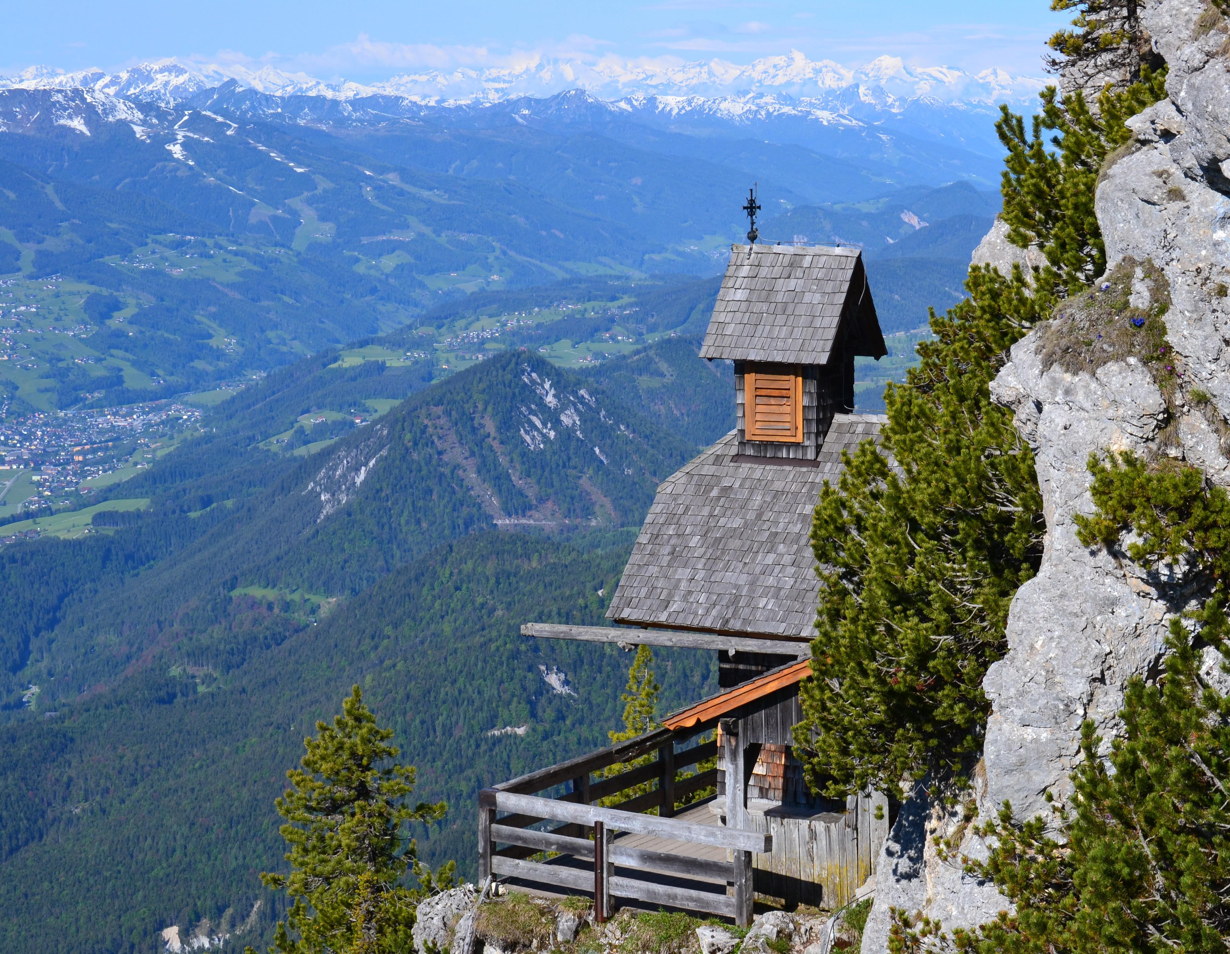 Mit unserer Lage finden Sie bereits zahlreiche Freizeitmöglichkeiten vor der Haustür. Verschiedene Wander-Kletter-und Klettersteigrouten in allen Schwierigkeitsgraden können von unserem Ferienhaus aus in Angriff genommen werden. Sehr beliebt ist dabei die Wanderung zum Friedenskircherl, welches zugleich ein sehr beliebtes Fotomotiv ist. Mit der Zipline, der längsten Seil-Gleitfluganlage der Alpen und dem Abenteuerpark Gröbming, die beide in wenigen Autominuten erreicht werden können, wird der Urlaub in Schladming-Dachstein zu einem perfekten Erlebnis.