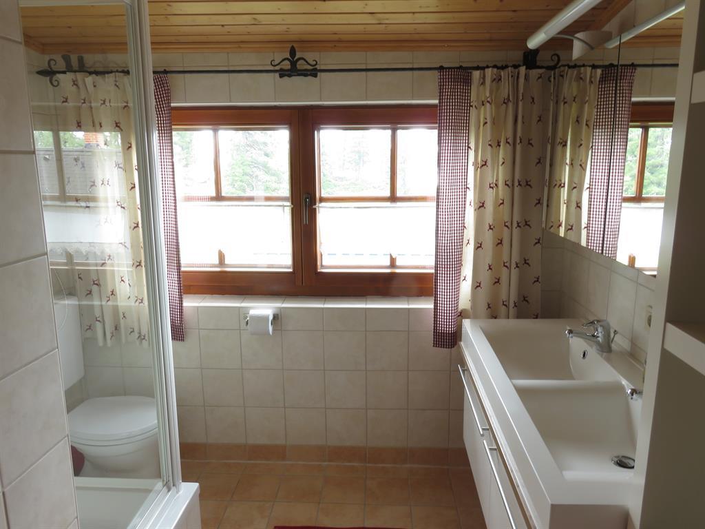 Unsere Selbstversorgerhütte ist ausgestattet mit einem großen, gemütlichen Wohnraum, mit Kachelofen, Sat-digital-TV, Küche, 3 Schlafräume (2/2/4) und einem Bad/WC.