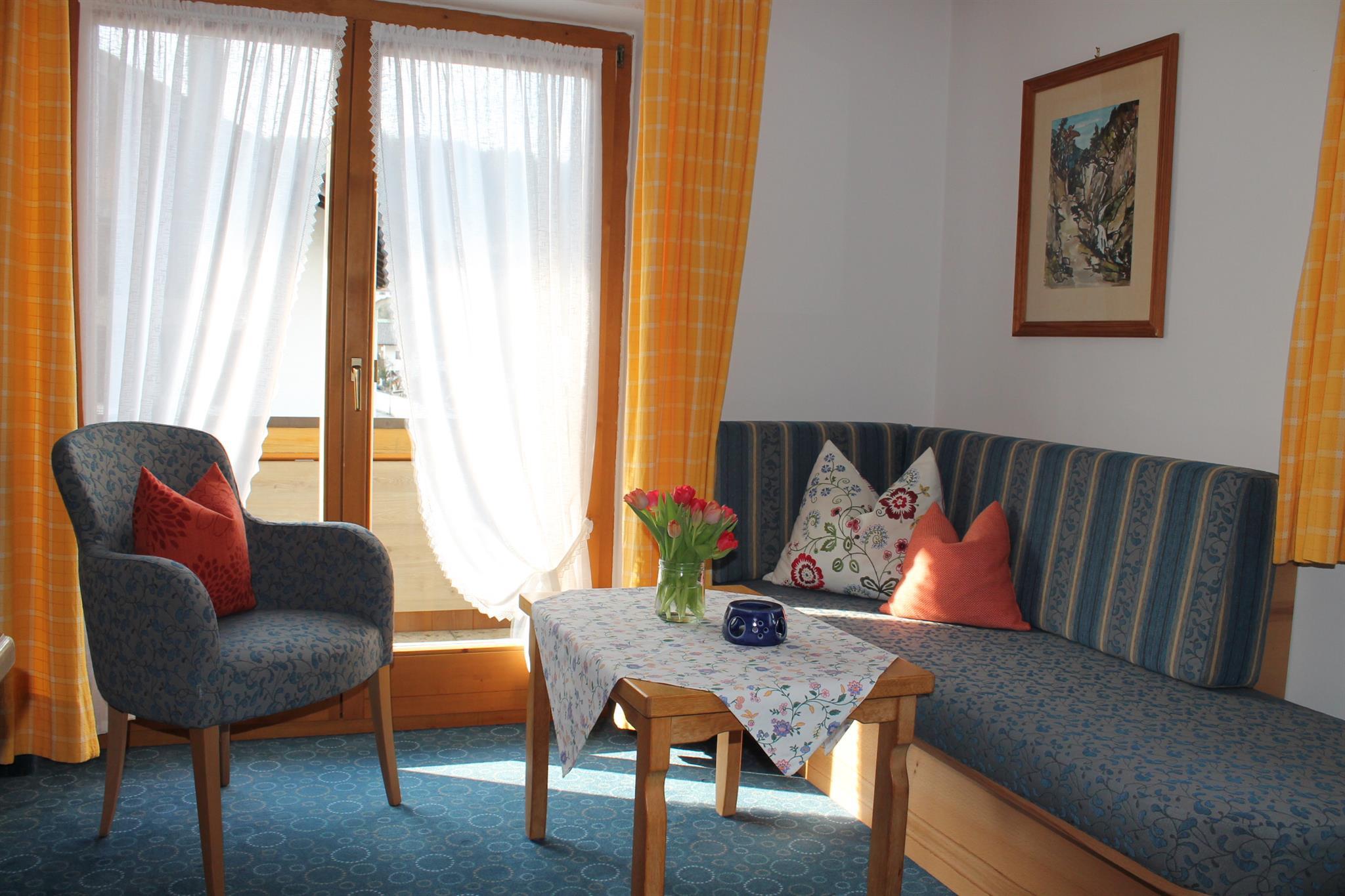 Genießen Sie den herrlichen Bergblick auf unser wunderschönes Wettersteingebirge und den Kranzberg vom West-Balkon Ihrer gemütlichen Ferienwohnung mit >40m². Wohn-Schlafzimmer mit Schrankbetten (normale Betten, tagsüber im Schrank, brauchen abends nur ausgeklappt werden), bequeme Sitzgruppe und Essecke, SAT-TV, Radio, Telefon; sep. Einzelschlafzimmer sep. Küche mit Kochplatten, Mikrowelle auf Wunsch, Kühlschrank mit Gefrierfach, Kaffeemaschine, Wasserkocher und kompl. Geschirr; Dusche/ WC, Fön; Balkon mit Sonnenschirm und Gartenmöbeln; Bettwäsche, Handtücher, Tischdecken und Geschirrtücher vorhanden