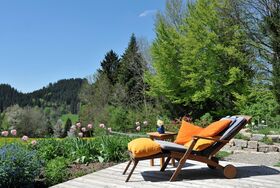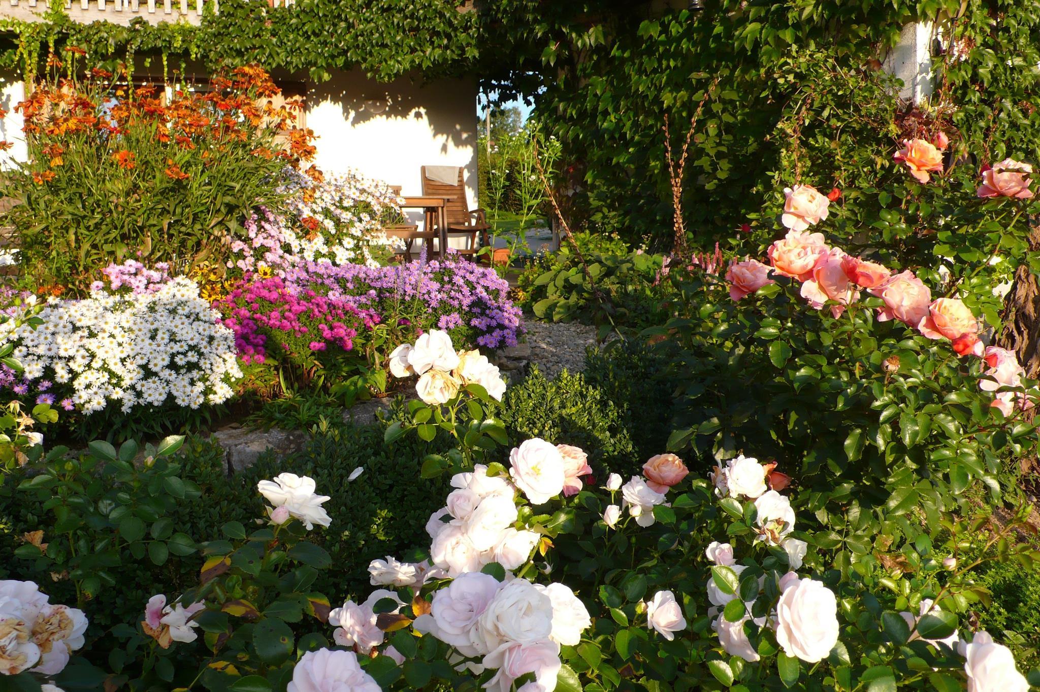Entspannung und Ruhe beginnen mit dem Blick in die faszinierende Landschaft oder beim ersten Frühstück auf Ihrer großen Holzterrasse, umgeben von duftenden Rosen und der Farbenpracht meines Bauerngartens.
