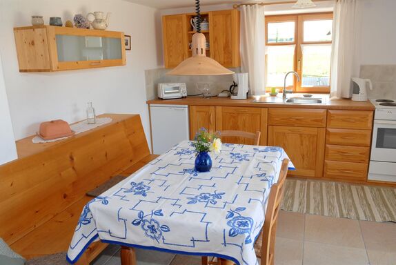 Die 35qm große Wohnküche ist gemütlich, mit einer kleiner Bibliothek, vielen CD`s und Kartenmaterial für Wander-, Radtouren oder persönlichen Ausflugtipps ausgestattet. Bei Buchung erhalten Sie eine ausführliche Inventarliste, die Ihnen Entscheidungen beim Packen erleichtert.