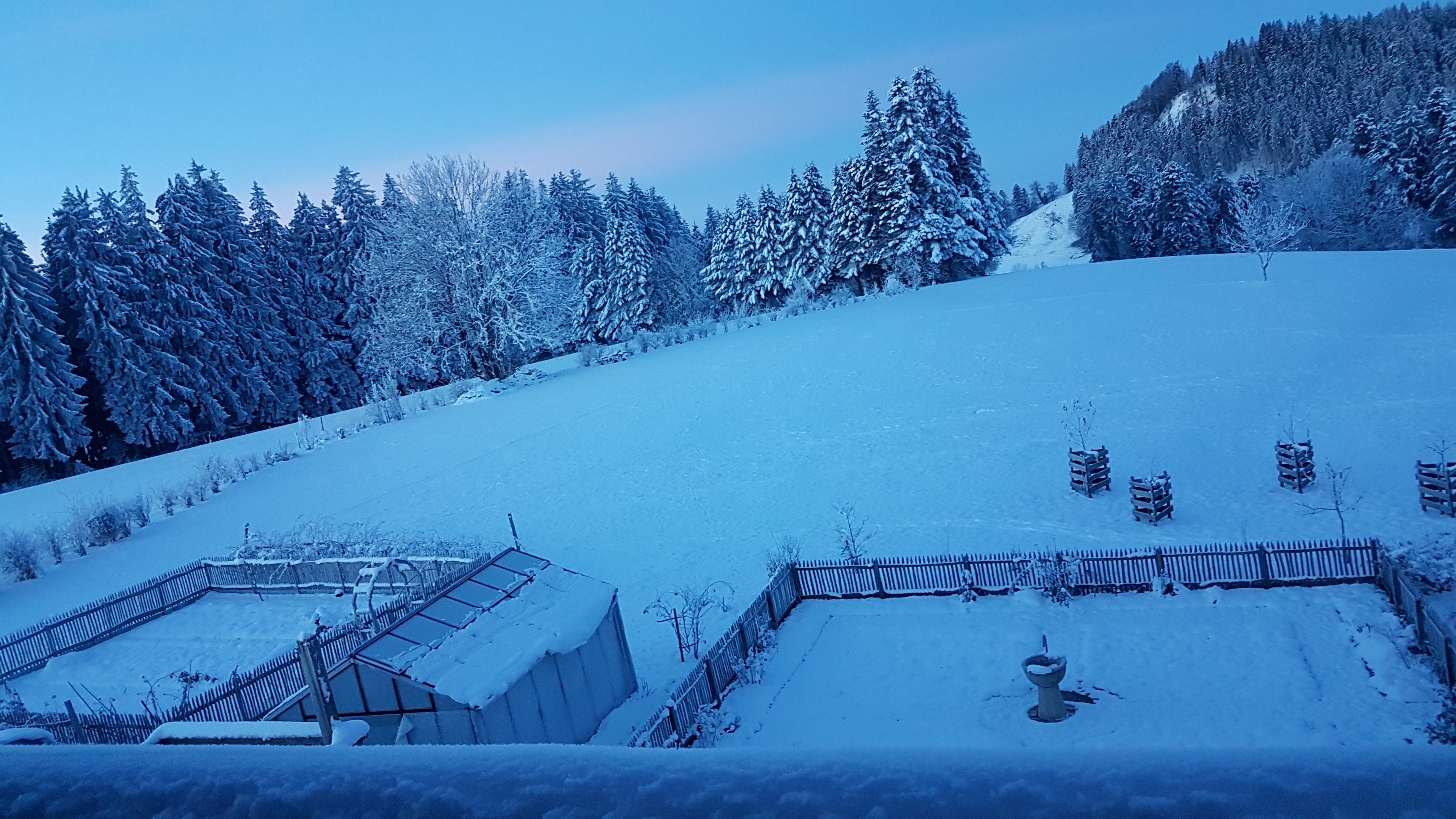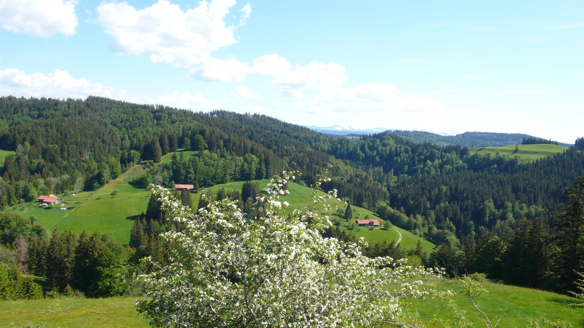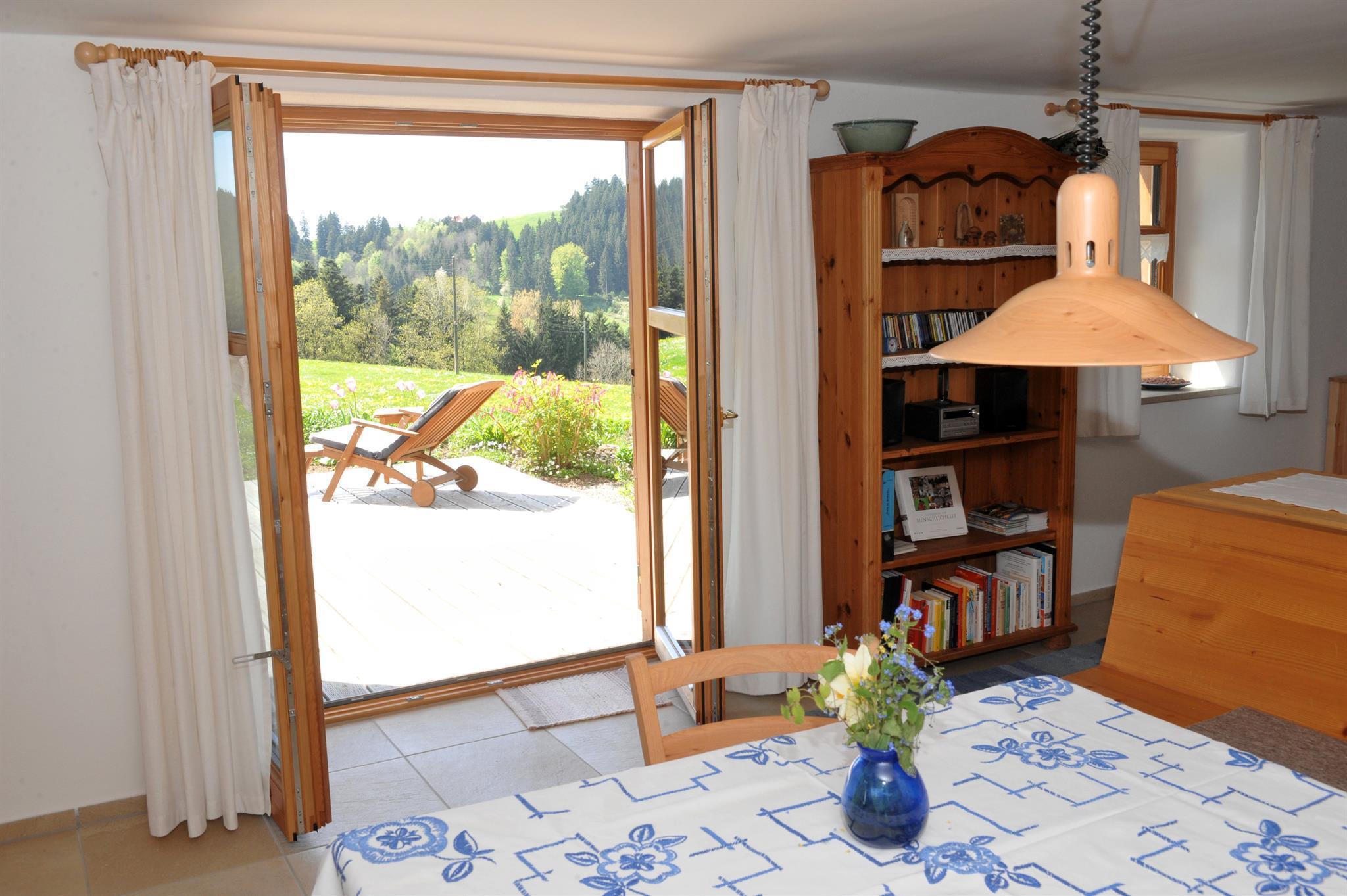 Inmitten von Wiesen, Wäldern und Bergen ist unsere Ferienwohnung ein idyllischer Ort, an dem Sie sorglose Urlaubstage verbringen können.