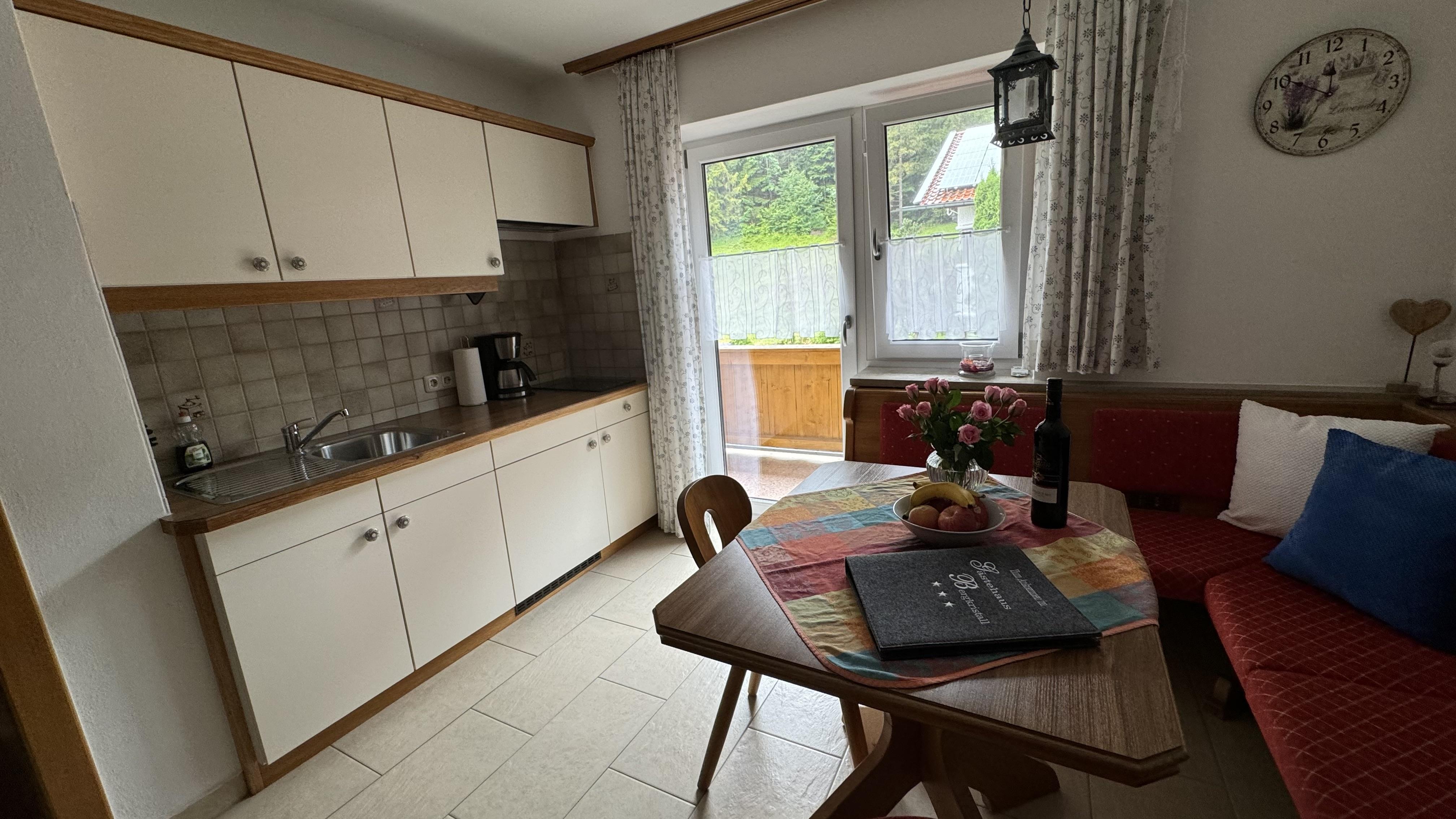 Herzlich Willkommen in unserer Nichtraucher-Ferienwohnung Wetterstein*** Unsere gemütliche, 40 qm-Wohnung im 1. OG wurde erst für Sie extra renoviert. Das schöne Bergpanorama können Sie vom sonnigem Westbalkon mit Balkonmöbel genießen. Sie bietet Platz für 2 Personen und besteht aus einer gemütlichen, vollausgestatteten Wohnküche inkl. Geschirrspüler und Mikrowelle mit Backofen, einer Eckbankgruppe, gemütlichen Couch, Sat-LCD-TV mit DVD Player und Stereoanlage. Separates, gemütliches Schlafzimmer mit Doppelbett, großem Schrank mit Safe und Spiegel. Bad mit Dusche/WC, Haartrockner, Handtücher, Toilettenpapier, Deo/Duschbad für Mann und Frau, Shampoo und Sonnenmilch, Wattepads/Ohrenstäbchen. Flur mit Garderobe und Schuhablage. Incl. WLAN, Handtücher, Bettwäsche, Endreinigung uvm. Excl. Kurtaxe. Bushaltestelle ist 1 Minute vom Haus entfernt.