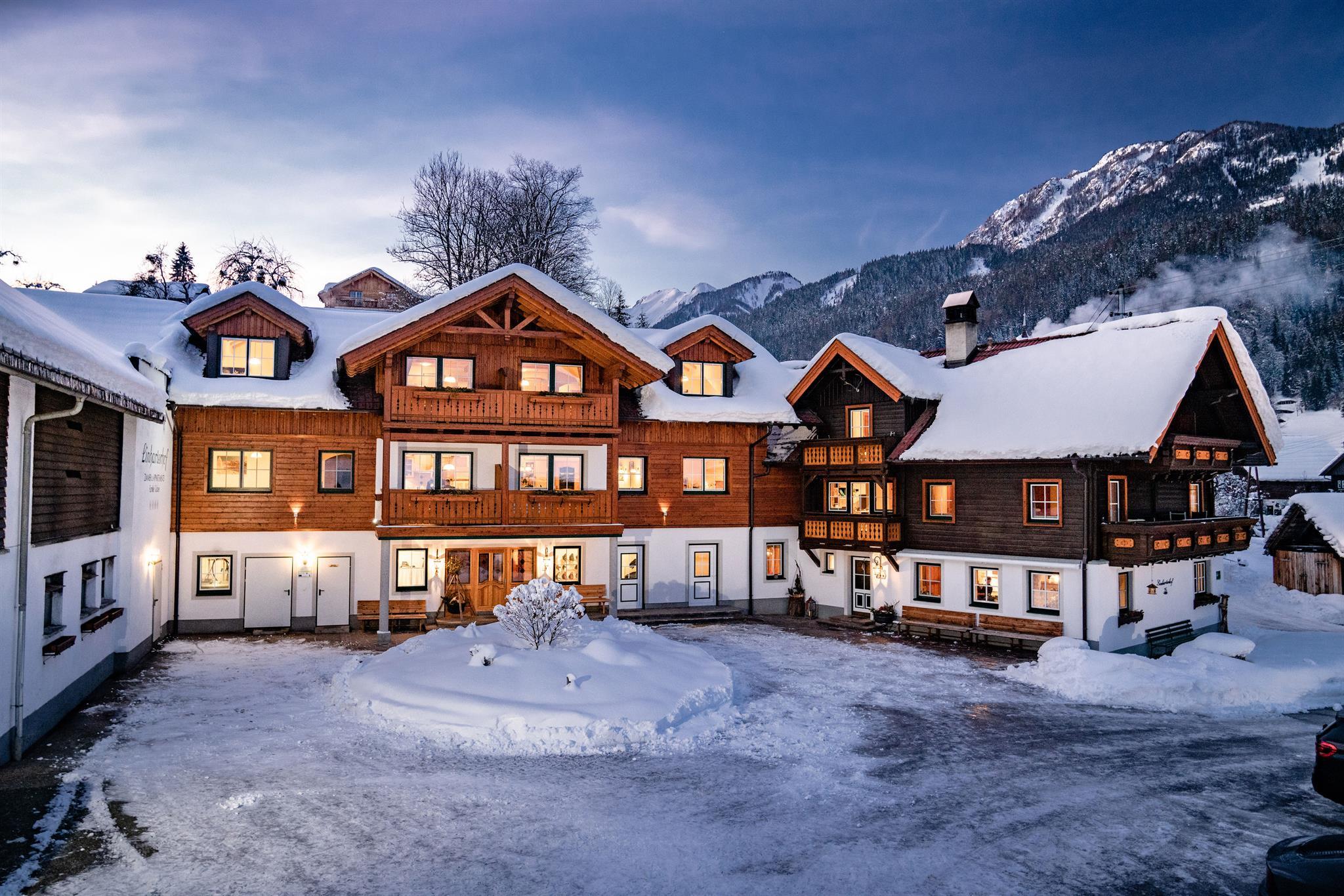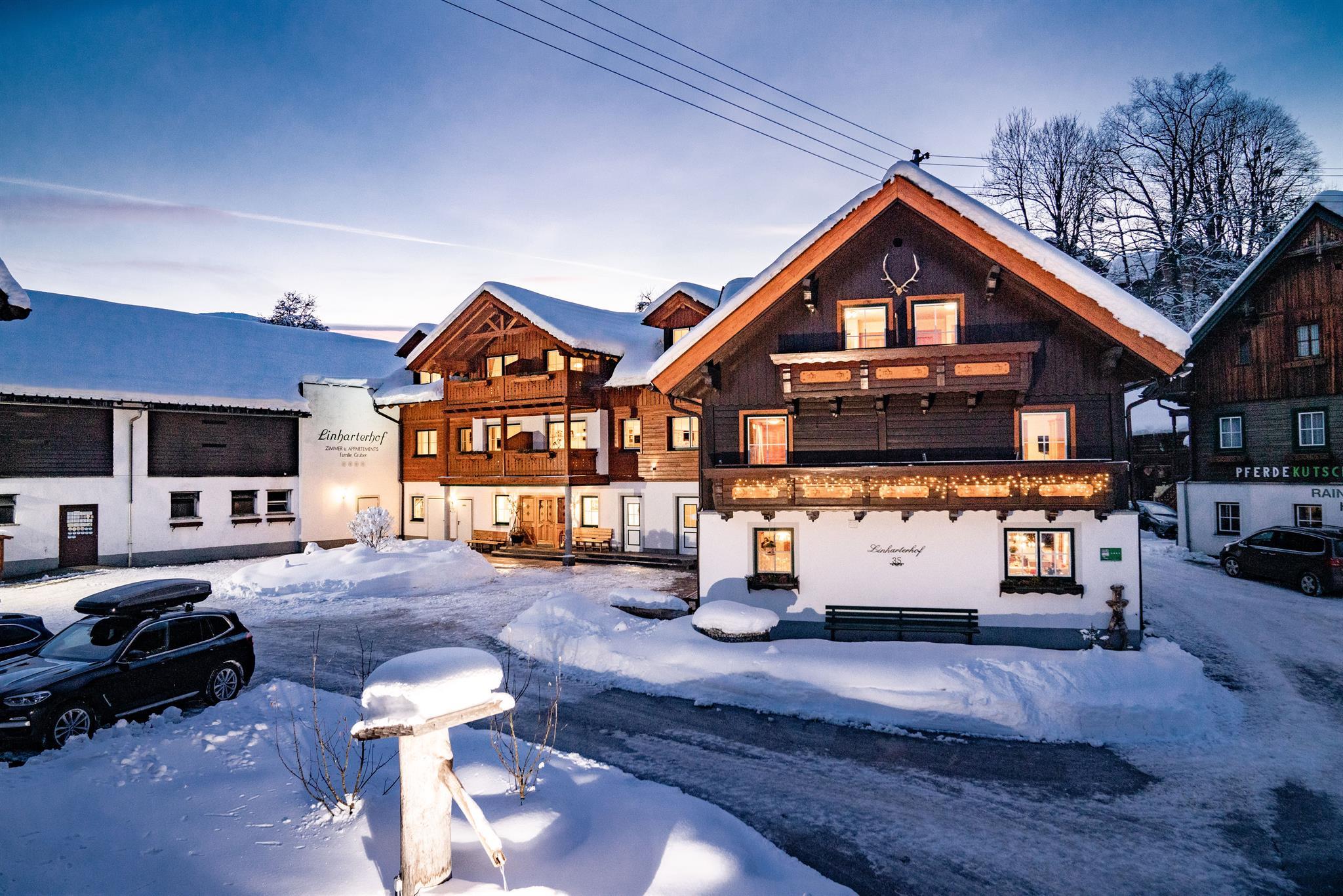 Im Winter ist unser Linharterhof der ideale Ausgangspunkt für unvergessliche Skierlebnisse in einer der schönsten Skiregionen Österreichs. Unser Hausberg, der Hauser Kaibling, ist der östlichste Einstieg in die Schladminger 4-Berge-Skischaukel und ist vom Hof aus in knapp 2 Minuten mit dem Skibus zu erreichen. Nach einem abwechslungsreichen Tag auf der Piste, steht Ihnen für Ihre Ski ein großzügiger Skiraum mit Schuhtrockner zur Verfügung. Egal ob Skivergnügen auf den schönsten Pisten der Region, Hüttengaudi und Aprés Ski im gemütlichen, urigen Ambiente; romantische Winterwanderungen, Ski- und Langlauftouren oder Pferdeschlittenfahrten durch die zauberhaft verschneite Winterlandschaft oder aufregende Rodelpartien - im Linharterhof verspüren Sie pure Lust auf den Winter.