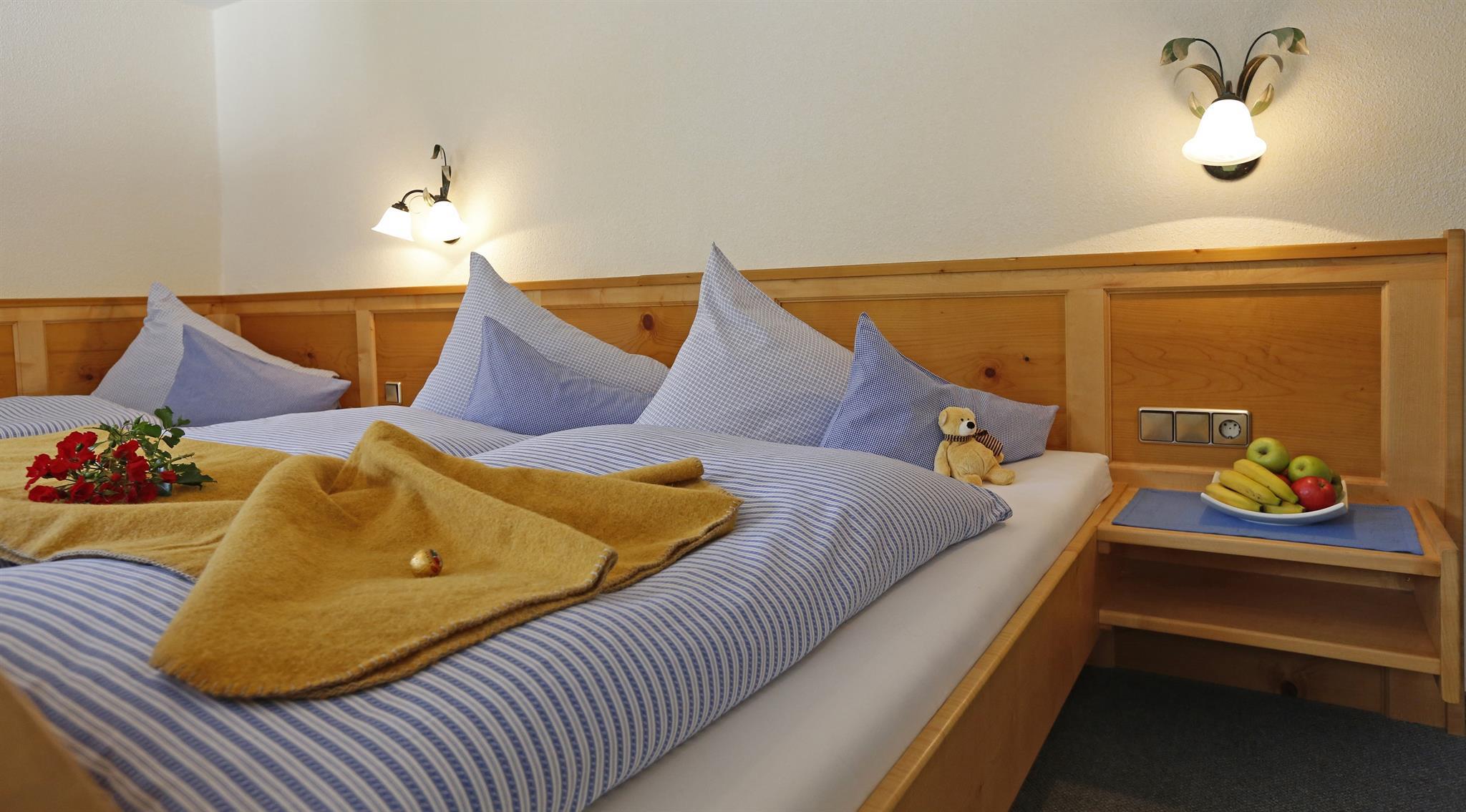 Ruhiges, geräumiges Zimmer mit hellen Vollholzmöbeln, Dusche/WC, Fön, Handtuchtrockner, Flatscreen, gratis W-Lan sowie größtenteils mit Balkon. Geeignet auch als Familienzimmer.