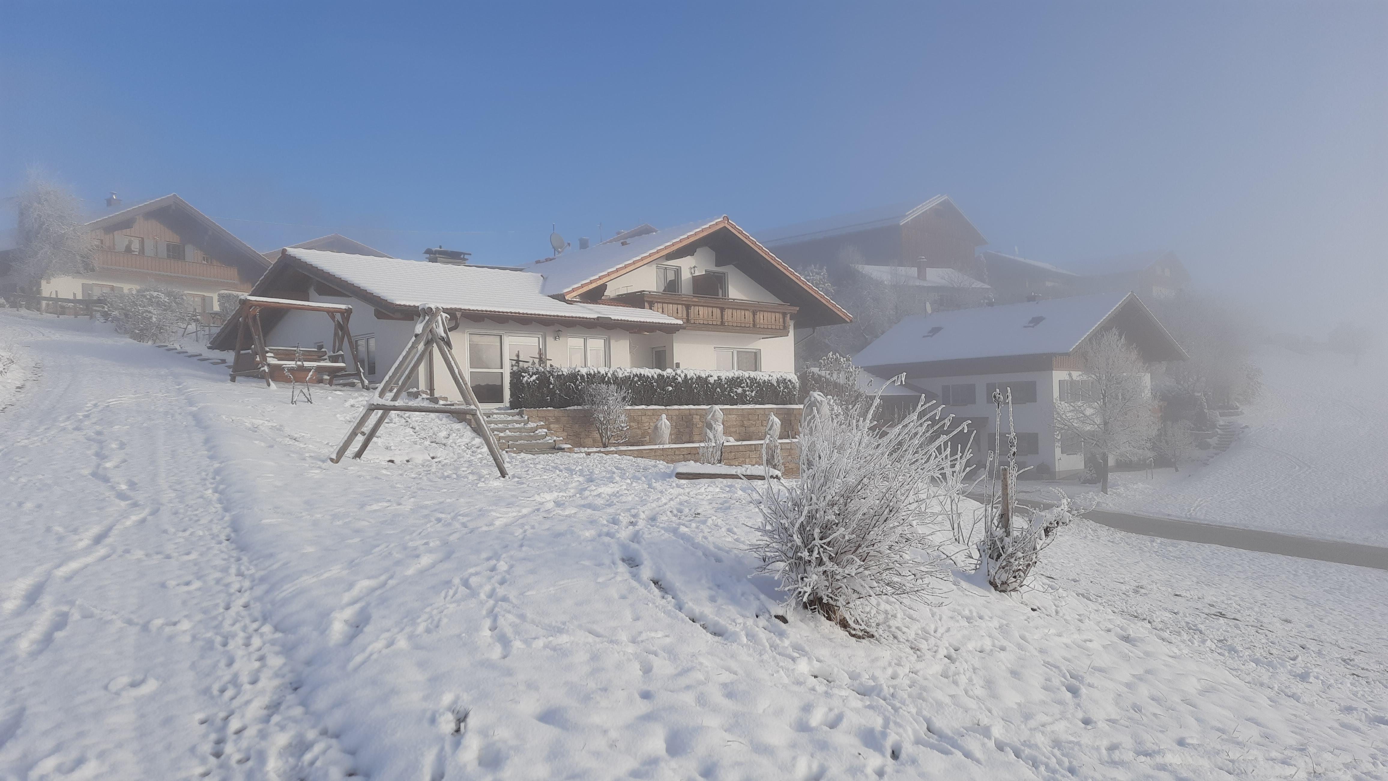 Verbringen Sie Ihren Urlaub in unserer 45 m² großen Ferienwohnung (Dachgeschoß), bestehend aus einer kleinen Wohnküche (Küchenzeile mit Essecke und TV), einem Schlafzimmer (mit zusätzlicher Schlafcouch und TV), Dusche/ WC und Südbalkon (mit Blick über die Allgäuer Alpen bis hin zu Schloß Neuschwanstein). WLAN gratis. Bettwäsche, Dusch- und Handtücher vorhanden. Parkplatz am Haus, Abstellmöglichkeit für Fahrrad und Ski/Schlitten in Garage möglich. Im Garten Sitz- und Liegemöglichkeit, Schaukel, Trampolin unt Tischtennis - Rodelhang am Haus.