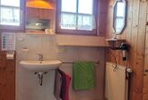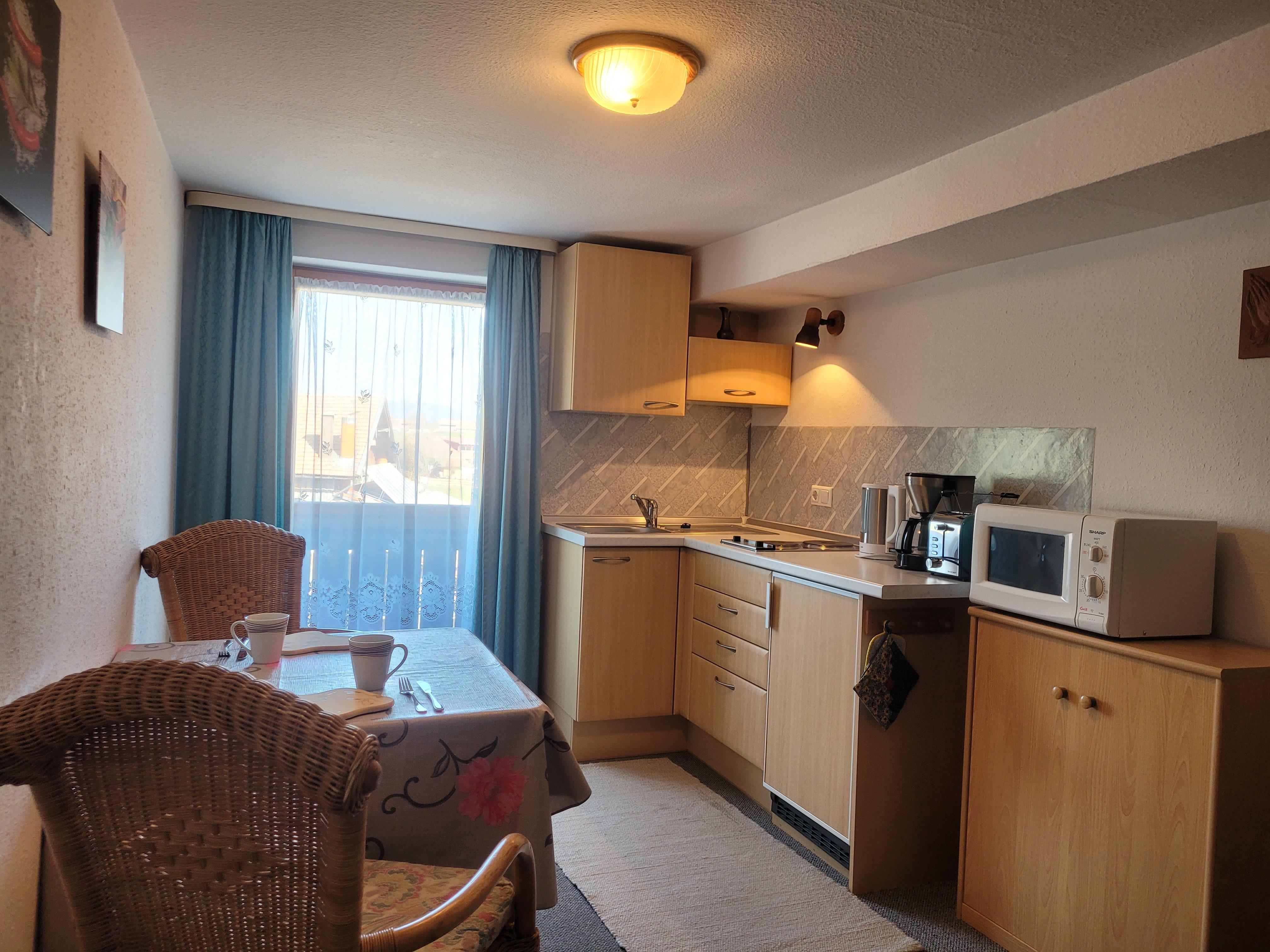 Die Ferienwohnung D´Obre im DG des Hauses verfügt über eine kleine Küche mit TV/Doppelzimmer/Bad mit Dusche und WC/kleines Kinderzimmer/ Balkon