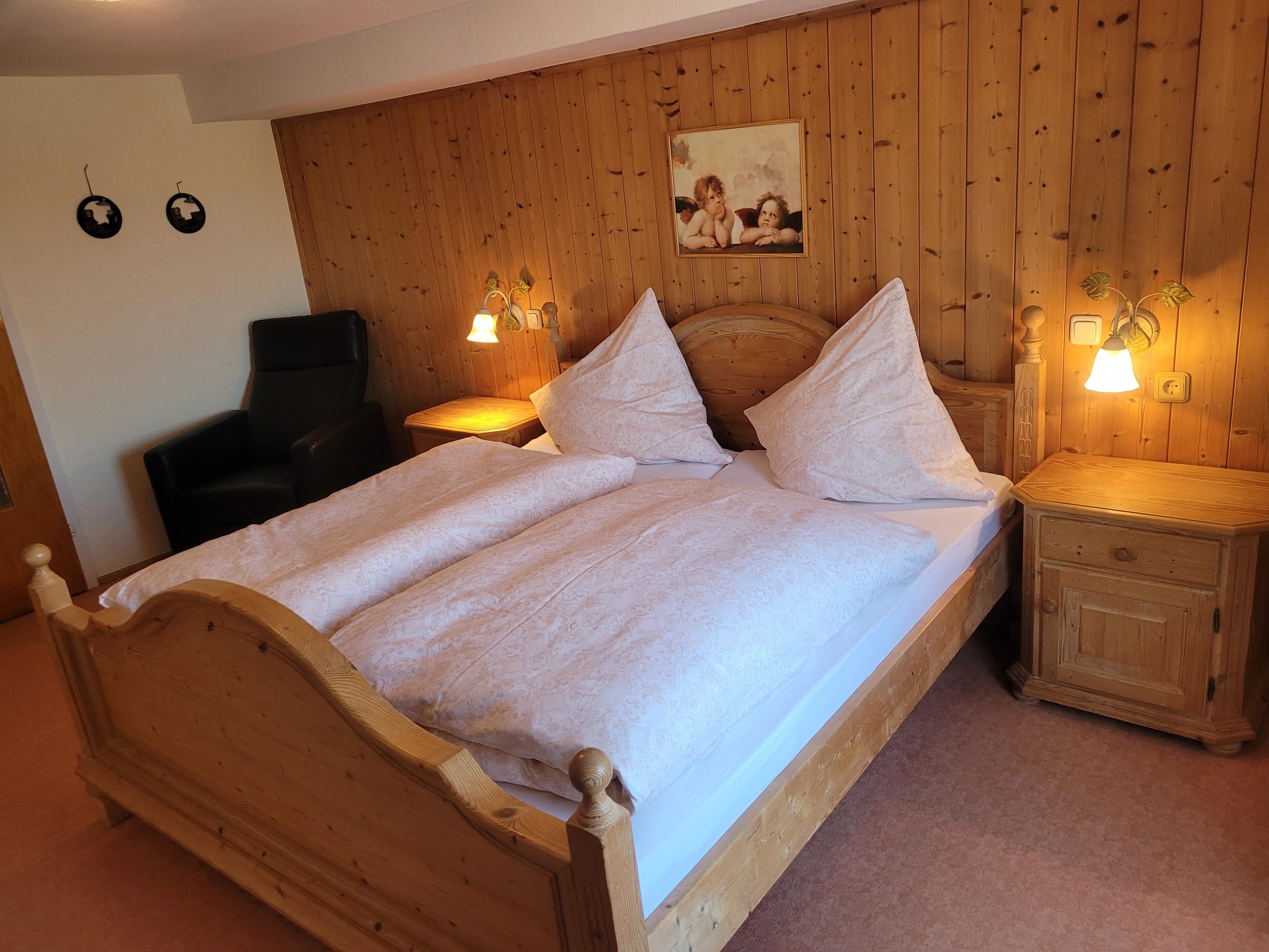 Die Ferienwohnung D´Middle im 1. Stock des Hauses verfügt über einen Wohn-Essbreich mit TV/Doppelzimmer mit TV/Bad mit Dusche und WC/ kein Balkon/ Zustellbett für Kind auf Anfrage