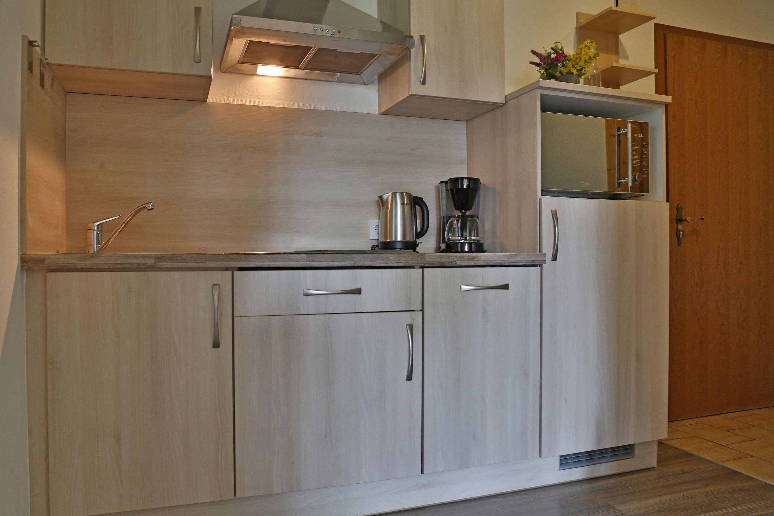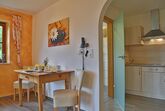 Die 4-Sterne-Ferienwohnung (Nichtraucher) befindet sich im Erdgeschoss und bietet auf 50 Quadratmetern Platz für 2 Erwachsene und 1-2 Kind(er). Sie verfügt über einen Südbalkon mit Balkonmöbeln. Küche mit Geschirrspülmaschine, Cerankochfeld, Umluftofen mit Grill und Mikrowelle. Das Schlafzimmer ist mit Massivholzmöbeln, erhöhtem Doppelbett und einem Kleiderschrank ausgestattet. Der zweite kleine Schlafbereich verfügt über ein Einzelbett. Das Wohnzimmer ist mit neuen Polstermöbeln (Schlafsofa), einem Massivholzschrank und einem Essbereich eingerichtet. HD-TV (Kabel Digital), DVD, Radio. Neuwertiges barrierefreies Badezimmer/WC mit Handtuchwärmer, Haartrockner und kostenlosen Pflegeprodukten. Freie Nutzung von WLAN, Telefonie ins Deutsche Festnetz, Bettwäsche und Handtücher. Garagennutzung auf Anfrage für 5,-€ pro Tag. Saunahandtücher für 7,-€ pro Stück erhältlich.