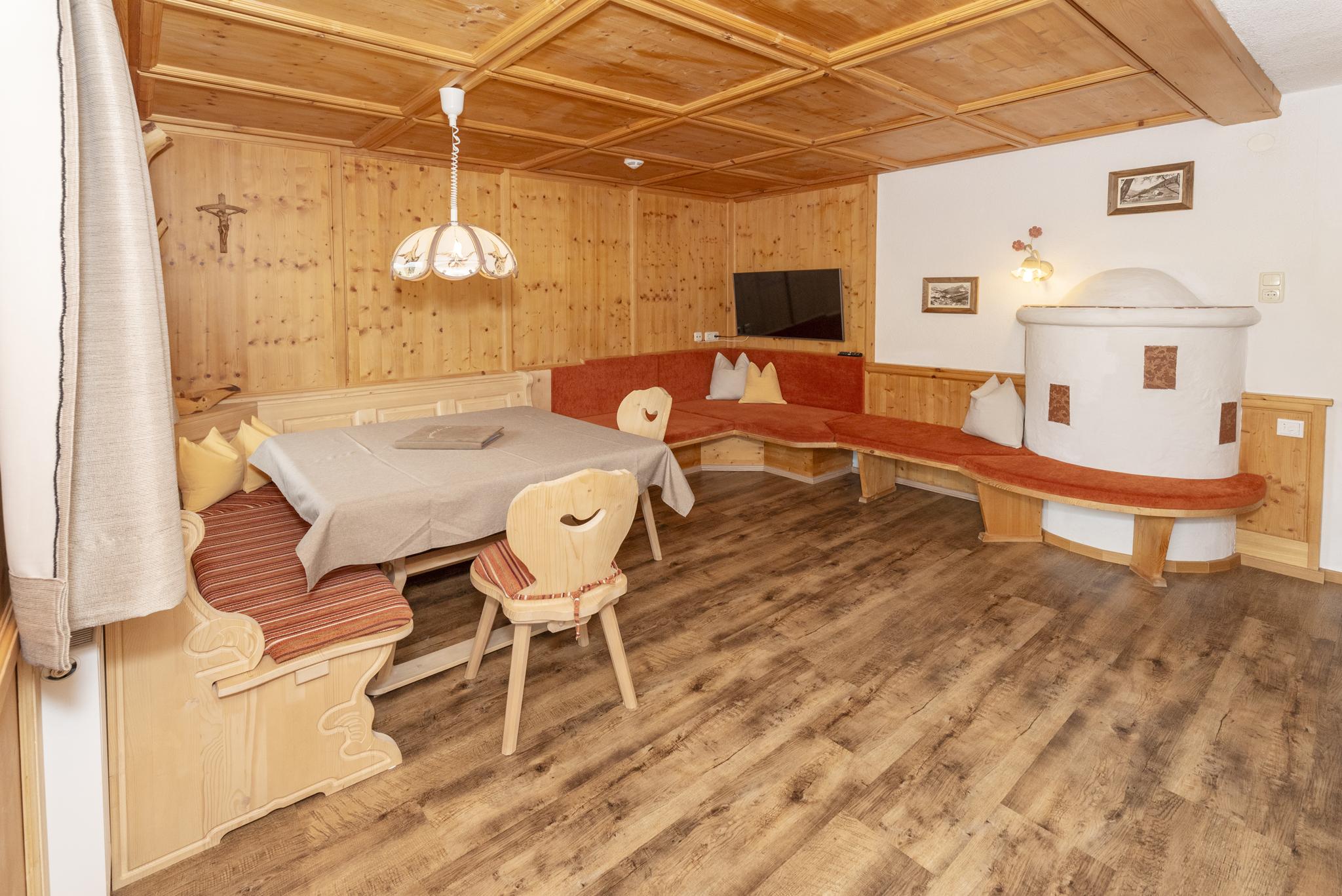Die gemütliche Ferienwohnung ist ca. 90m² groß und ist mit viel Holz im Alpbacher Stil ausgebaut. Die Wohnung bietet Platz für 6 Personen und verfügt über einen Kachelofen.