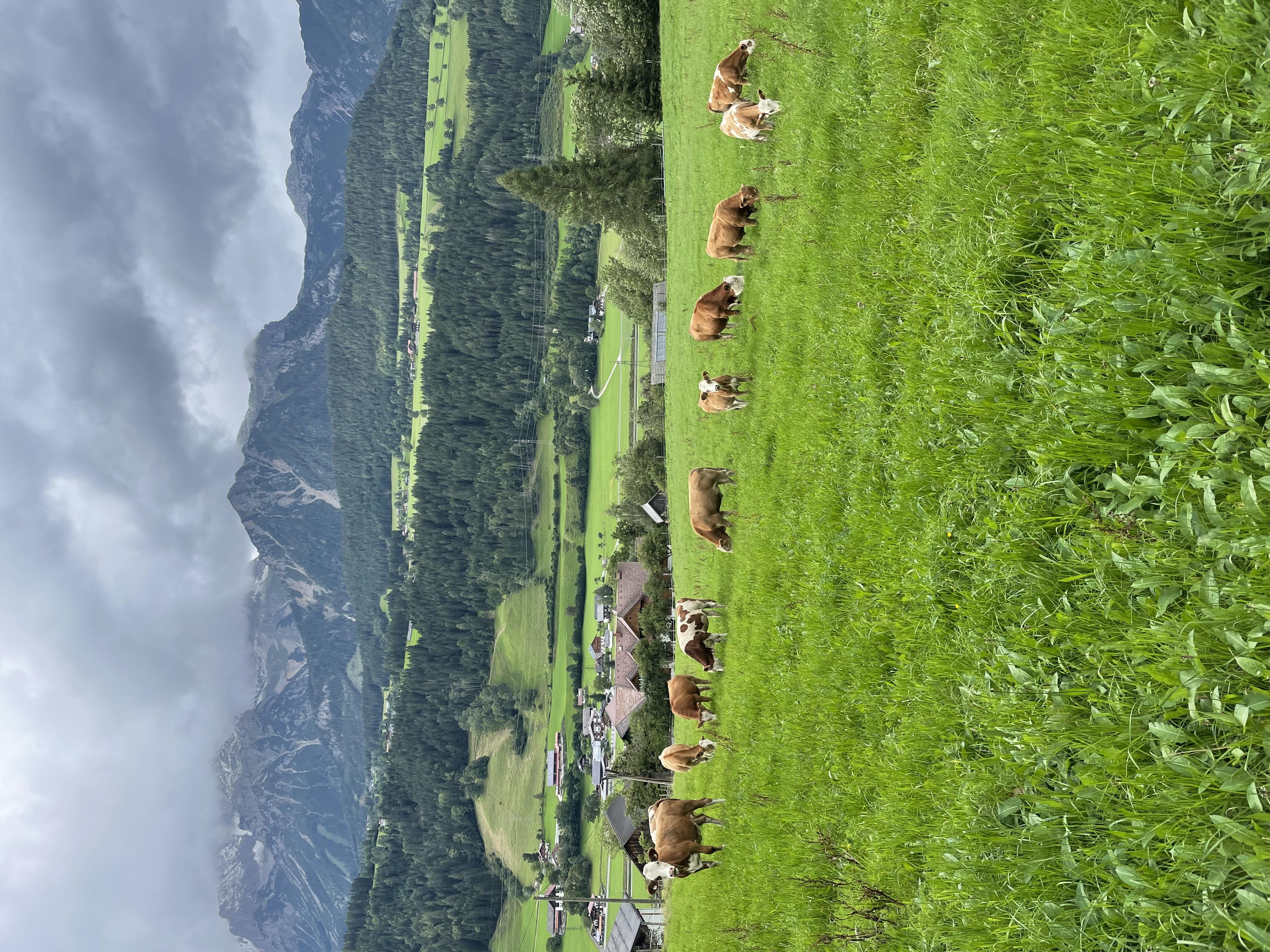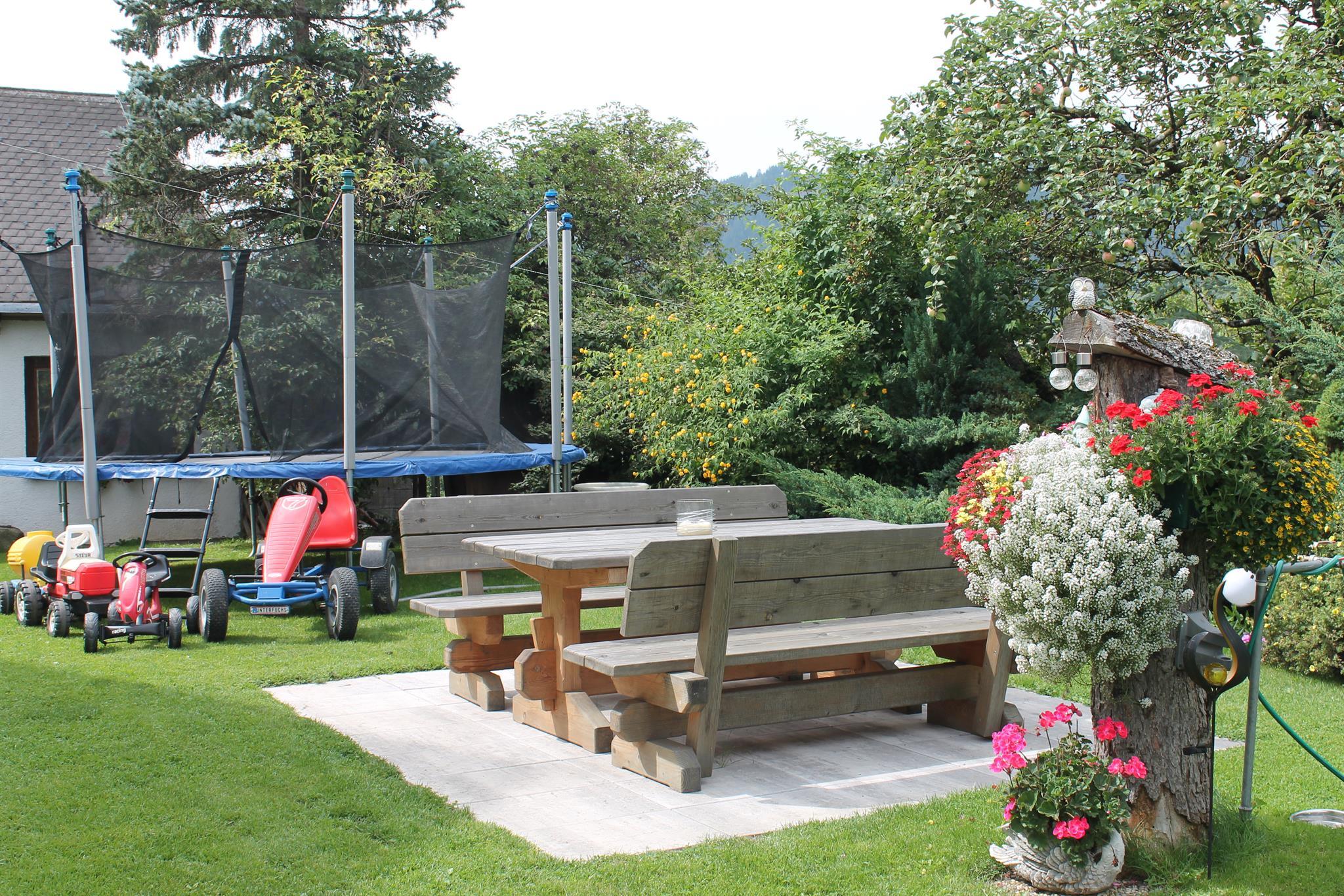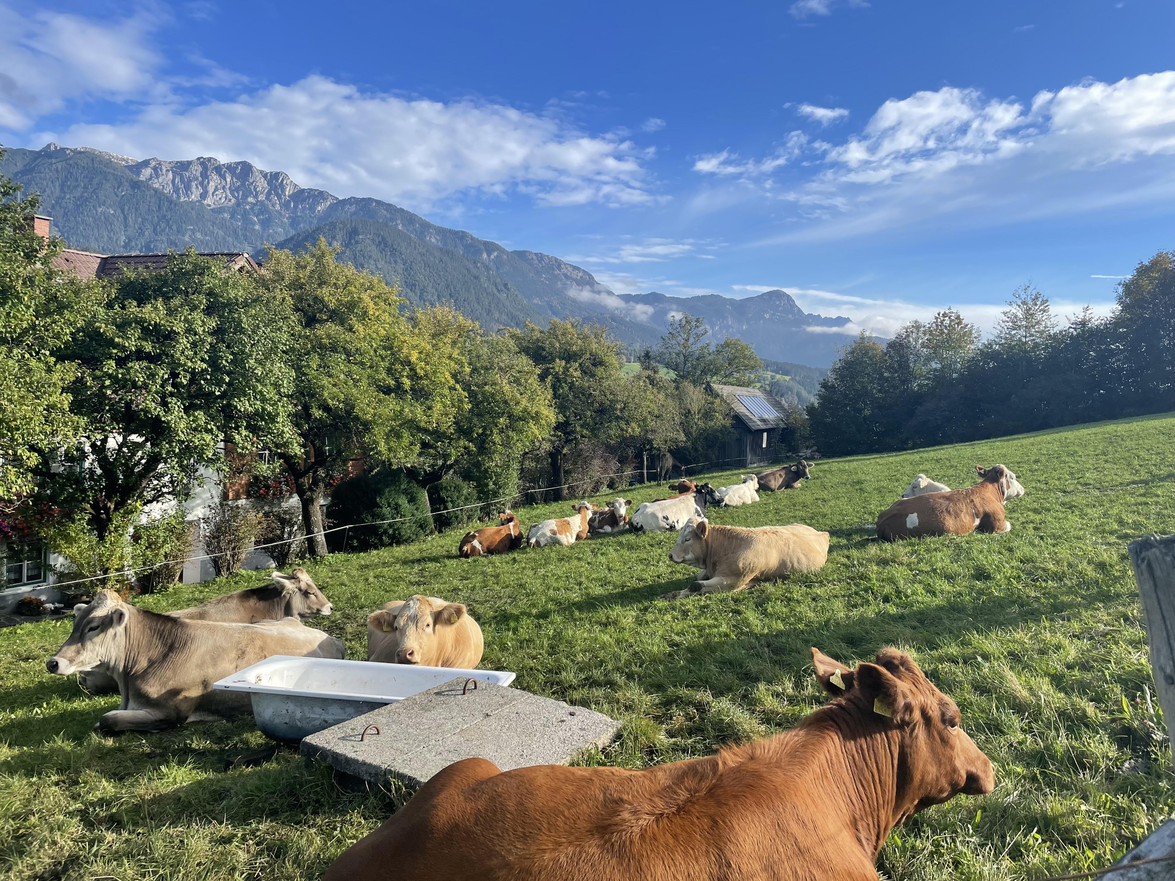 Die leicht erhöhte Lage bietet eine beeindruckende Sicht über das Ennstal auf das gegenüberliegende Dachsteinmassiv.