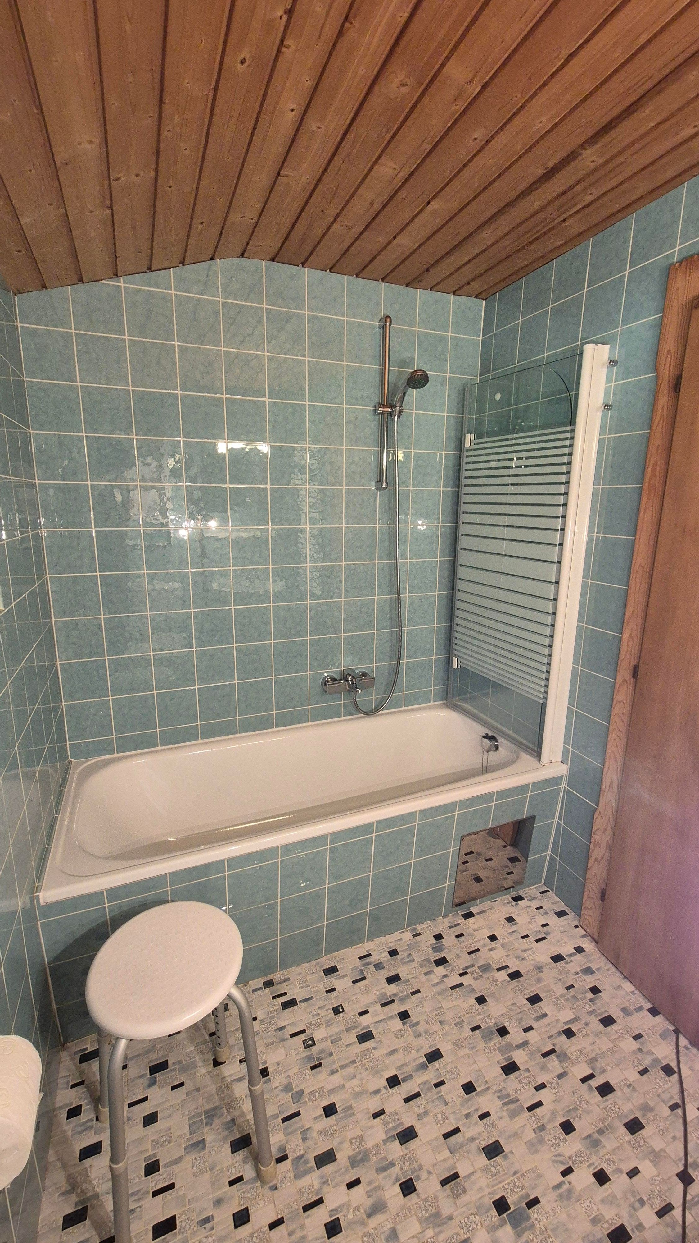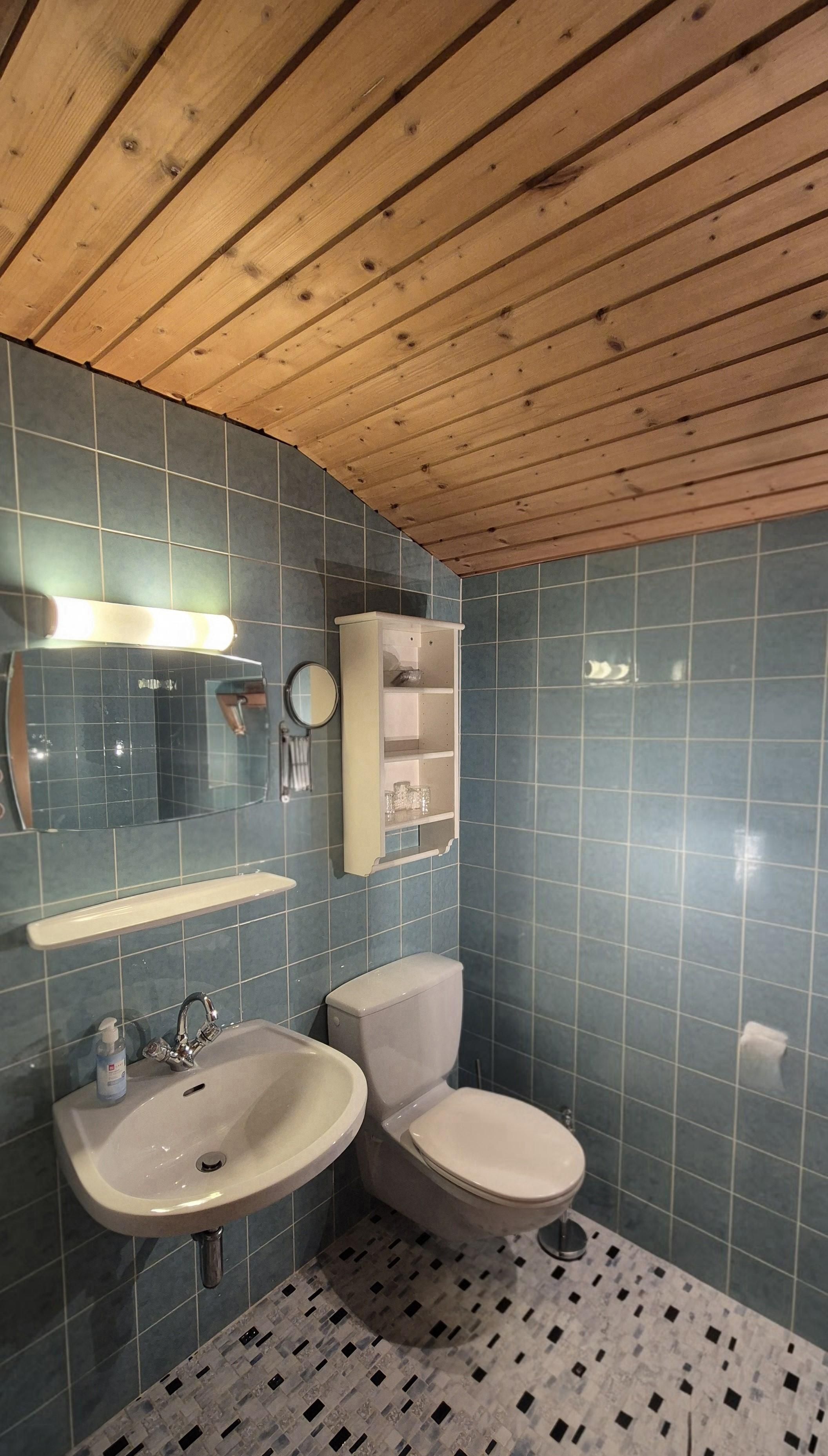 Aufteilung: ein Schlafzimmer mit Doppelbett ● ein Schlafzimmer (Dachschräge) mit zwei Einzelbetten, welches sich gut als Kinder Schlafzimmer anbietet ● ein Badezimmer (Badewanne mit Duschvorrichtung) mit WC ● ein separates WC ● eine Küche mit Durchreiche zum Esstisch, ein Esszimmer, ein Wohnzimmer.