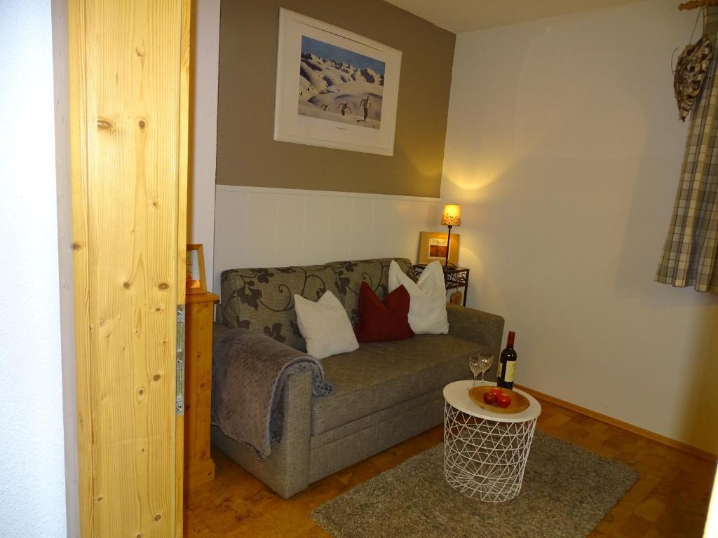 Sie wohnen in einem gemütlichen Appartement mit 1 Schlafzimmer und einer Schlafcouch im Wohnzimmer.