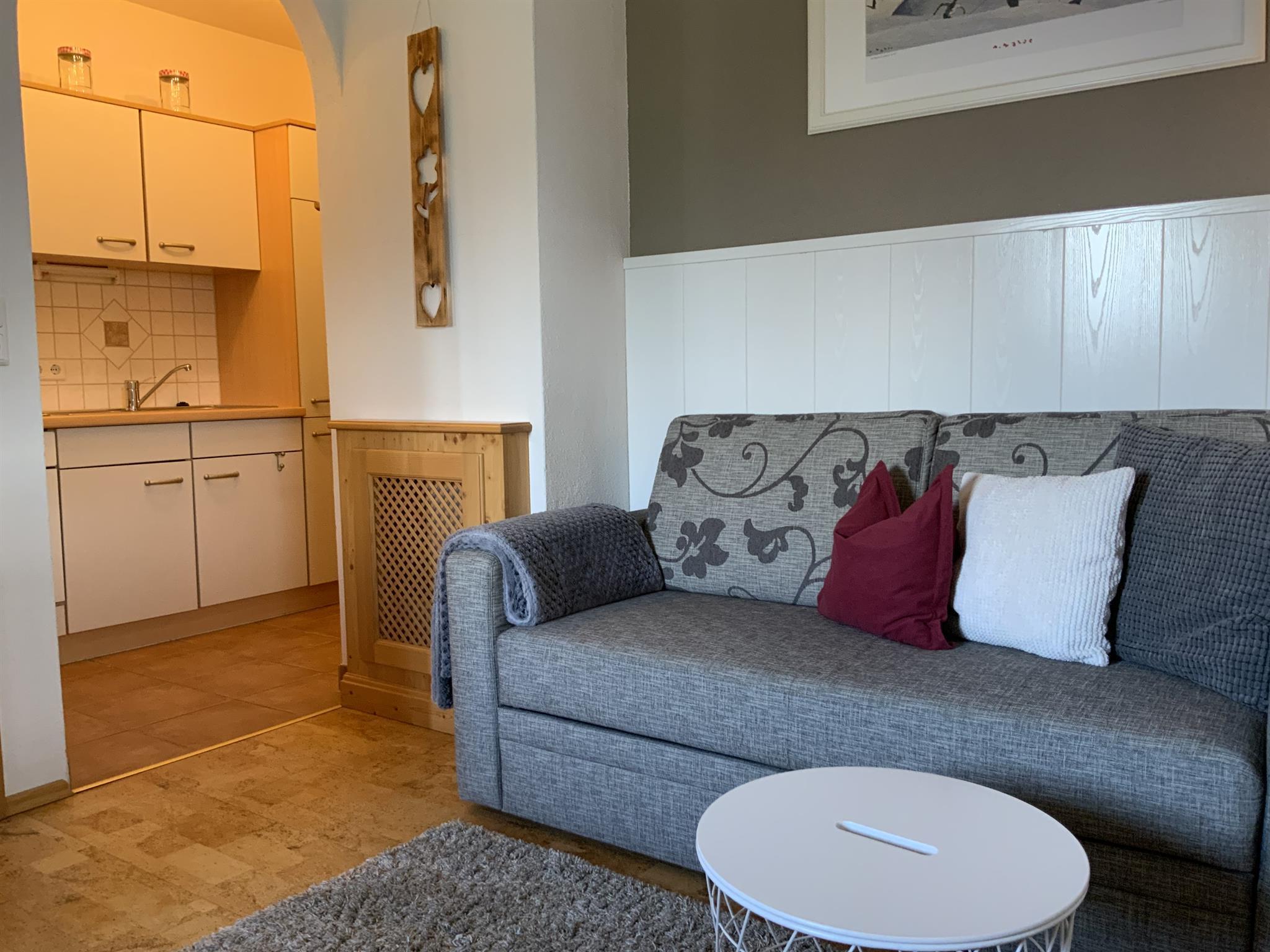 Eine kleine Kochnische sowie eine komfortable Sitzecke laden zum Verweilen ein.