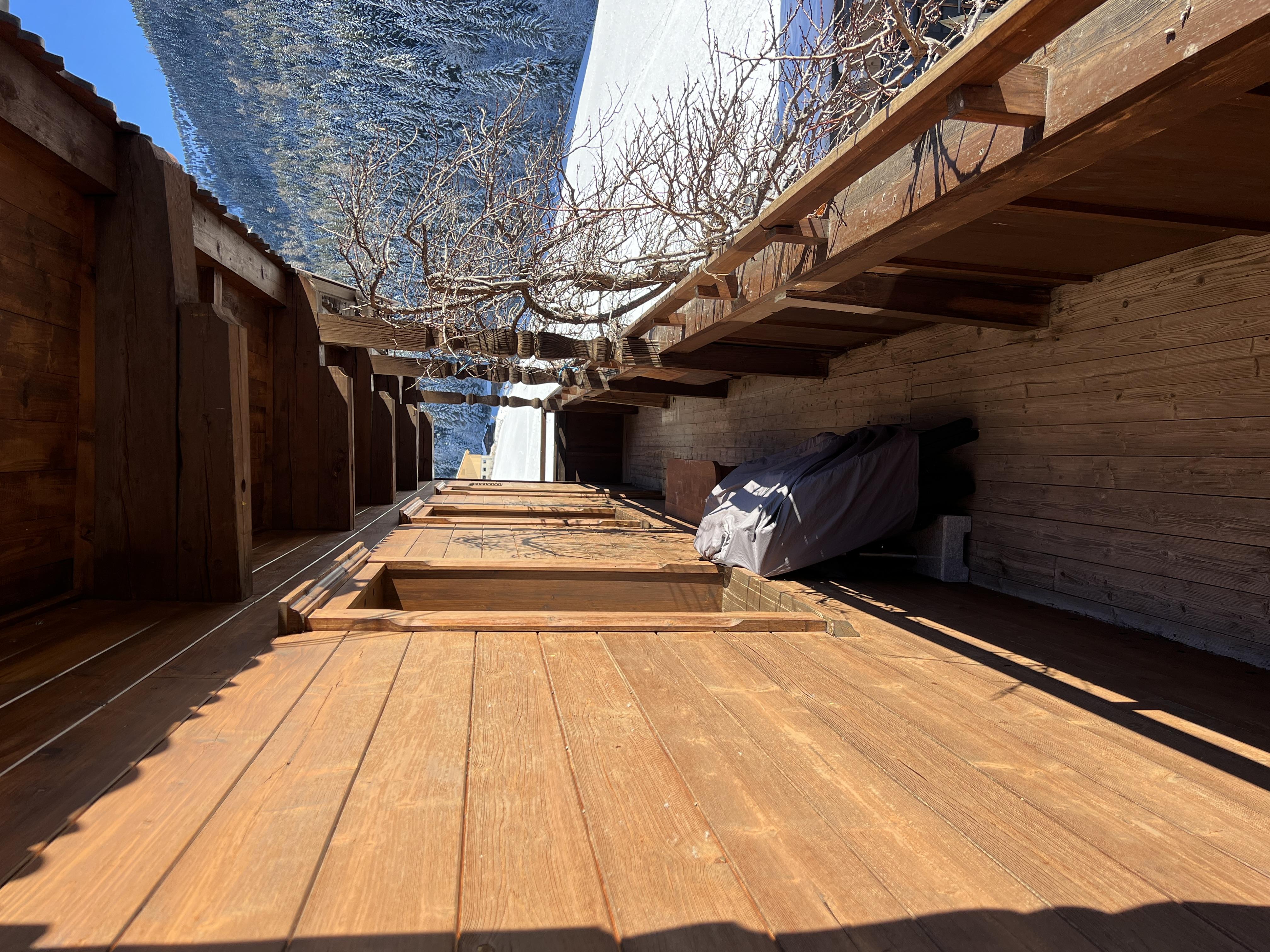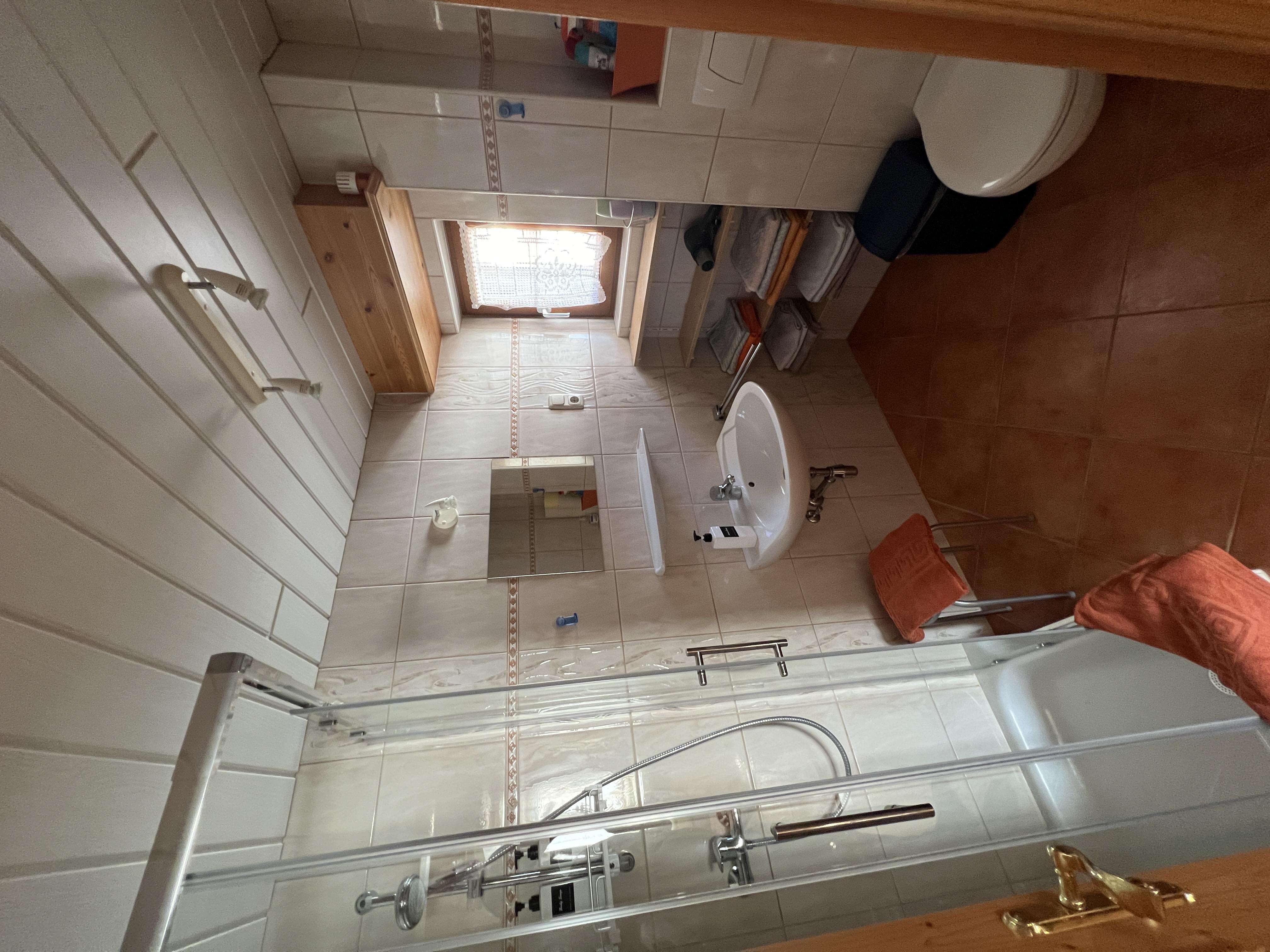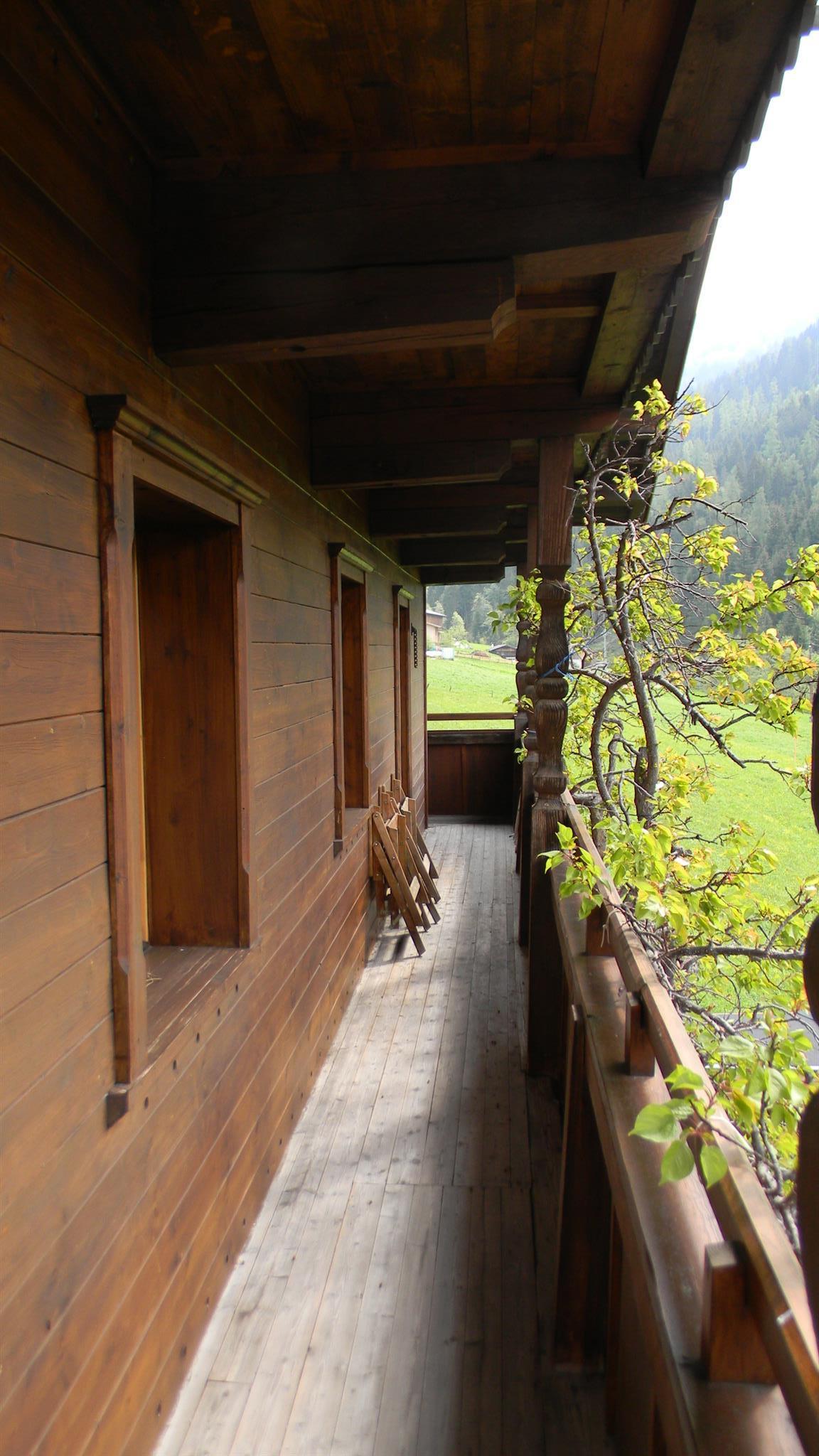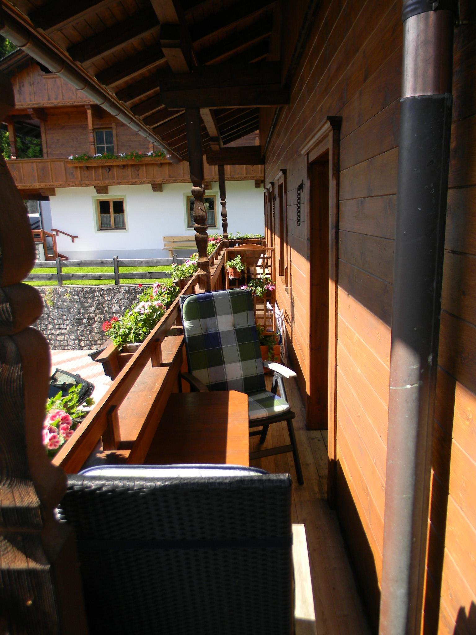 Zum Appartement gehört ein Balkon, der die ganze Südseite des Hauses umfasst. Auf dem Balkon finden Sie eine Sitzgelegenheit mit zwei kleinen ausklappbaren Tischen, um entspannt die Sonne und den wunderschönen Ausblick auf die Berge zu genießen.