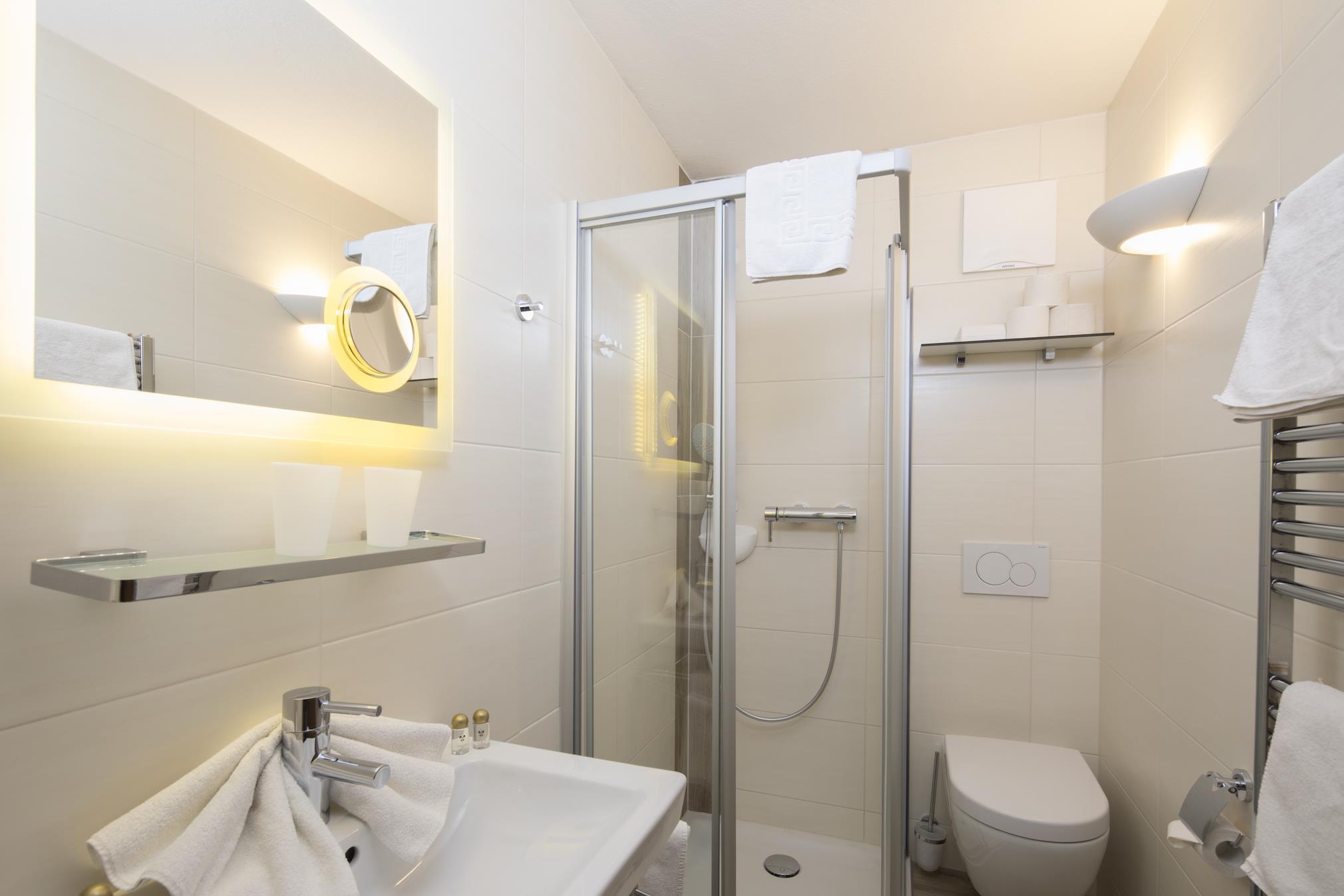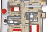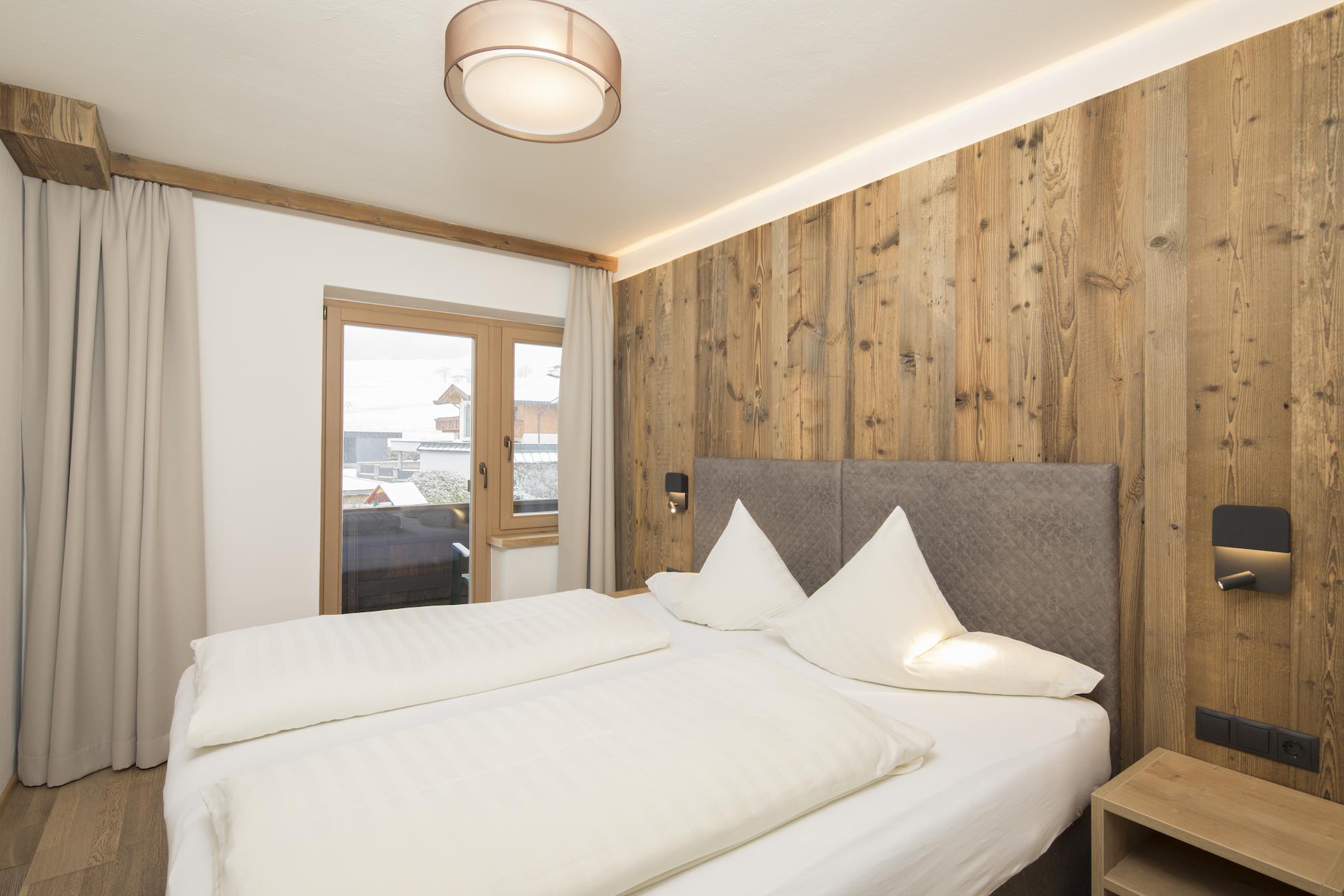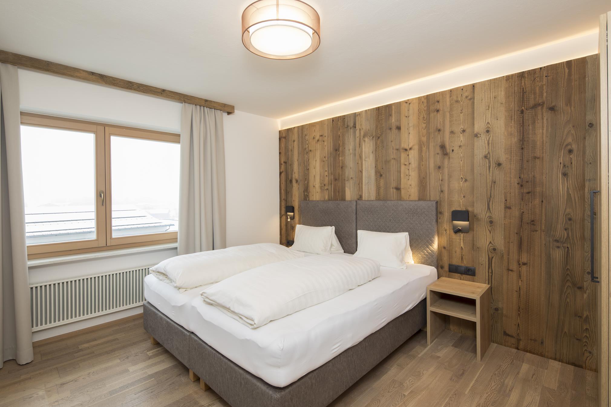Die Familiensuite Angerer umfasst 74 m2 Wohnfläche und überzeugt mit einem besonders gemütlichen Ambiente sowie einer hochwertigen Ausstattung im alpinen Chalet-Stil. Die Suite verfügt über einen Wohnbereich mit Eckbank und direkt angrenzender Kochnische, vier Schlafzimmer für bis zu 7 Personen (3 Schlafzimmer mit je einem Boxspring-Doppelbett und 1 Schlafzimmer mit einem Boxspring-Einzelbett) sowie drei getrennte Bäder mit Dusche und WC. Zur hochwertigen technischen Einrichtung der Familiensuite gehören fünf Flatscreen TV-Geräte mit internationalen Kanälen, kostenloses Highspeed-WIFI, eine Stereoanlage mit Internetradio und ein für Laptops geeigneter Safe. In der Familiensuite Angerer kann nach Rückfrage maximal ein Zustellbett für eine weitere Person zum Preis von EUR 15,00 pro Übernachtung und ein Babybett (kostenfrei für Kinder bis 2 Jahre) platziert werden.
