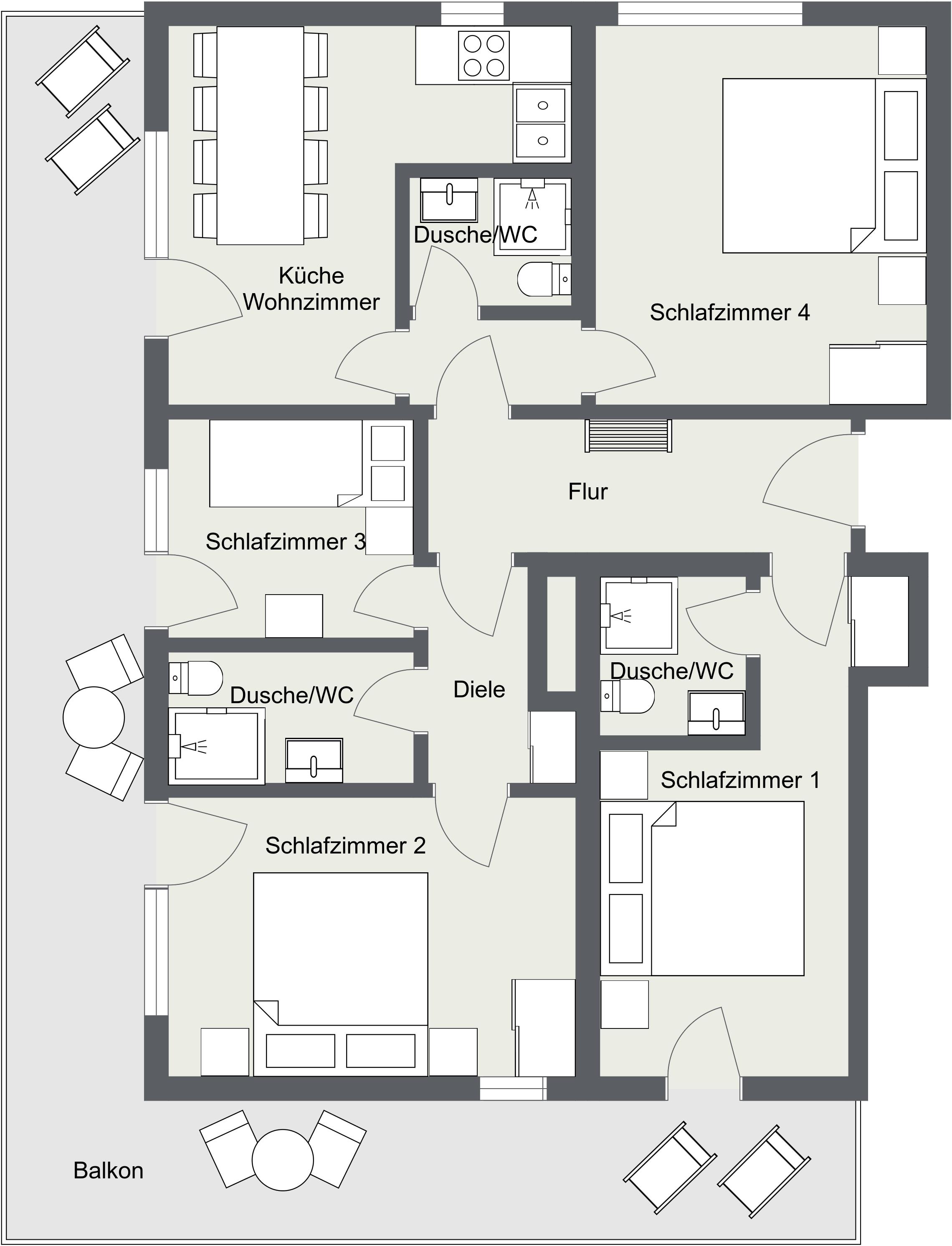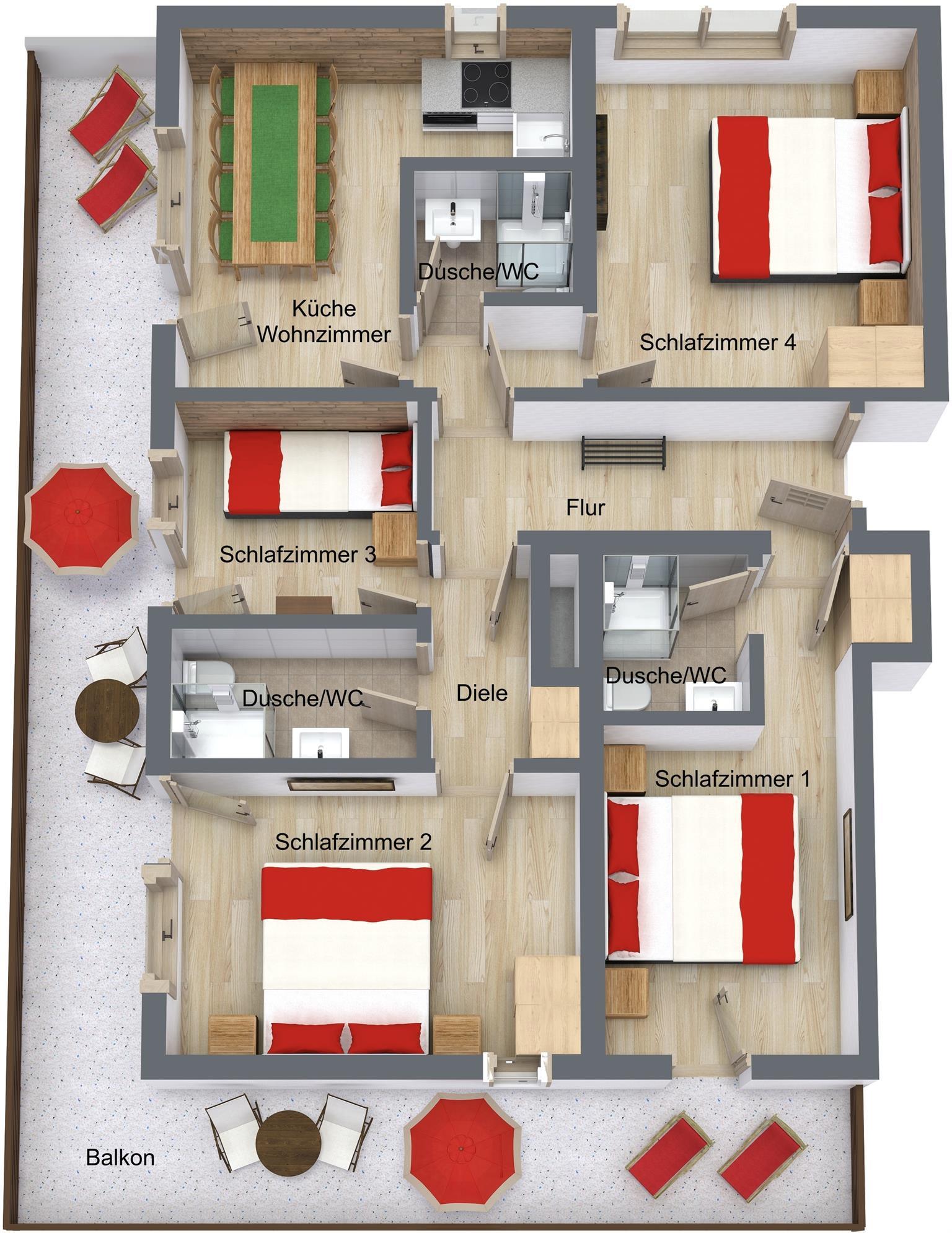 Dazu gehören große Familiensuiten für bis zu 8 Personen mit mehreren Schlafzimmern sowie gemütliche Familienappartements.