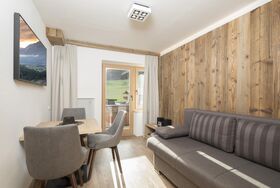 Das Appartement Juwel umfasst 27 m2 Wohnfläche und überzeugt mit einem besonders gemütlichen Ambiente sowie einer hochwertigen Ausstattung im alpinen Chalet-Stil. Das Appartement verfügt über einen Wohnbereich mit komfortabler Couch und direkt angrenzender Küche, ein Schlafzimmer für bis zu 2 Personen mit Boxspring-Doppelbett und ein Bad mit Dusche und WC. Bei unseren Gästen besonders beliebt ist der südseitig ausgerichtete Balkon mit schöner Aussicht. Zu unserem Service gehören bereits bei Anreise fertig bezogene Betten und die Bereitstellung von Handtüchern, Badetüchern sowie Bademänteln. In Appartement Juwel kann nach Rückfrage maximal ein Zustellbett für eine weitere Person zum Preis von EUR 15,00 pro Übernachtung und ein Babybett (kostenfrei für Kinder bis 2 Jahre) platziert werden.