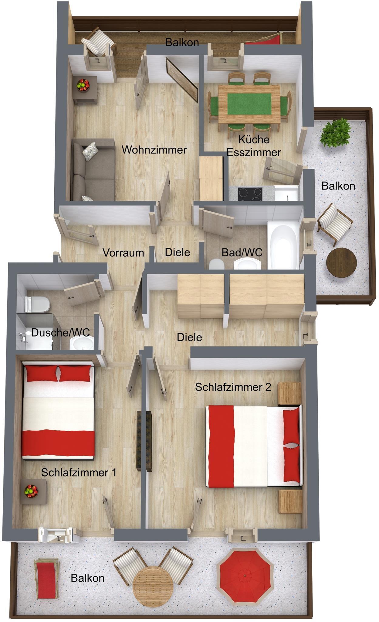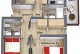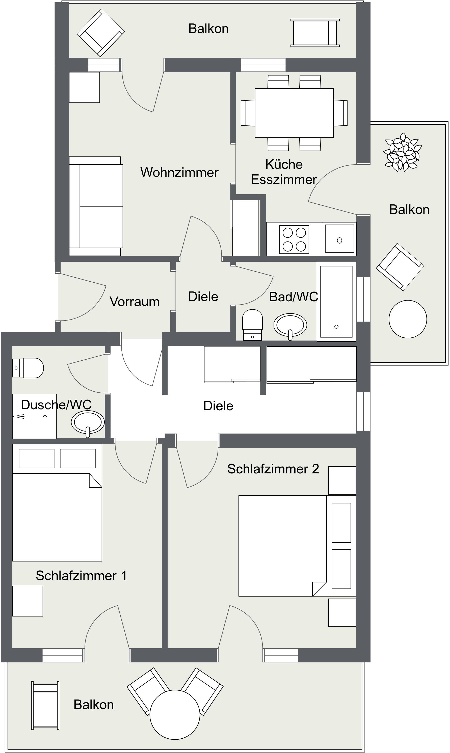 Das Familienappartement Seenland umfasst 50 m2 Wohnfläche und überzeugt mit einem besonders gemütlichen Ambiente sowie einer hochwertigen Ausstattung im alpinen Chalet-Stil. Das Appartement verfügt über einen Wohnbereich mit komfortabler Couch und direkt angrenzender Küche mit Esstisch und Eckbank, zwei Schlafzimmer für bis zu 4 Personen und je einem Boxspring-Doppelbett und zwei getrennte Bäder mit Bad bzw. Dusche und WC. Bei unseren Gästen besonders beliebt sind die drei Balkone mit wunderbarer Aussicht. Zu unserem Service gehören bereits bei Anreise fertig bezogene Betten und die Bereitstellung von Handtüchern, Badetüchern sowie Bademänteln. Im Familienappartement Seenland kann nach Rückfrage maximal ein Zustellbett für eine weitere Person zum Preis von EUR 15,00 pro Übernachtung und ein Babybett (kostenfrei für Kinder bis 2 Jahre) platziert werden.