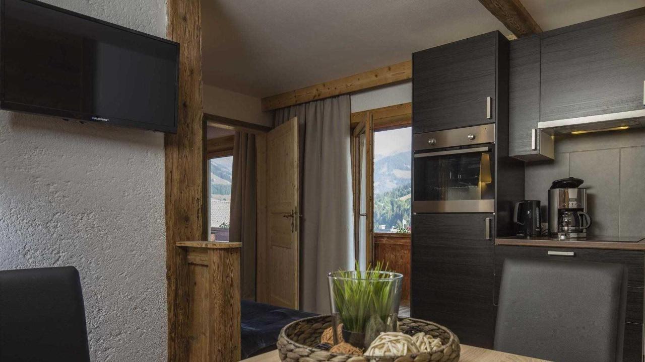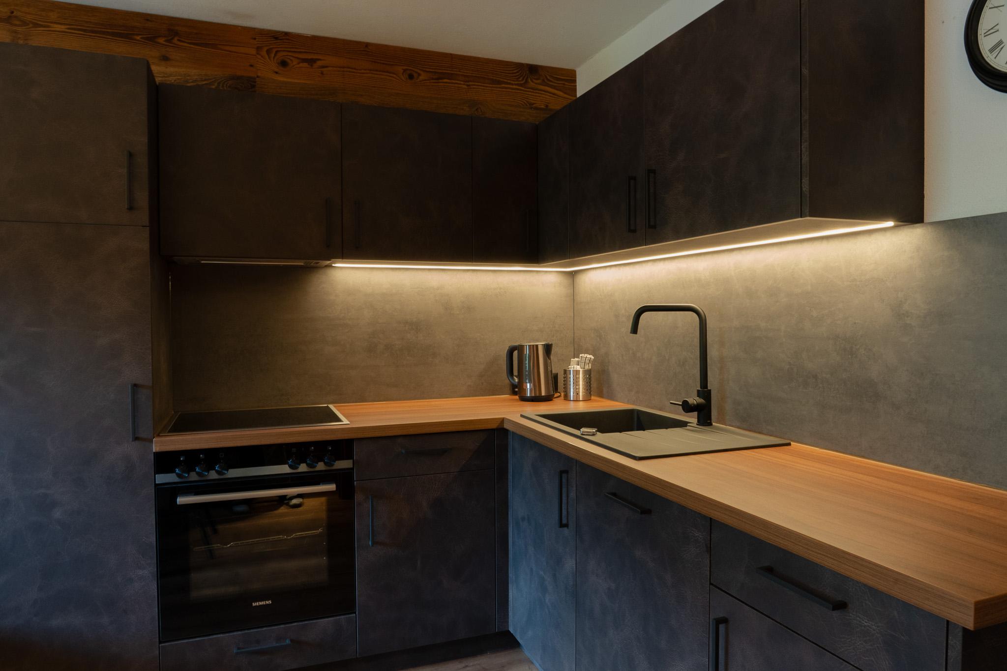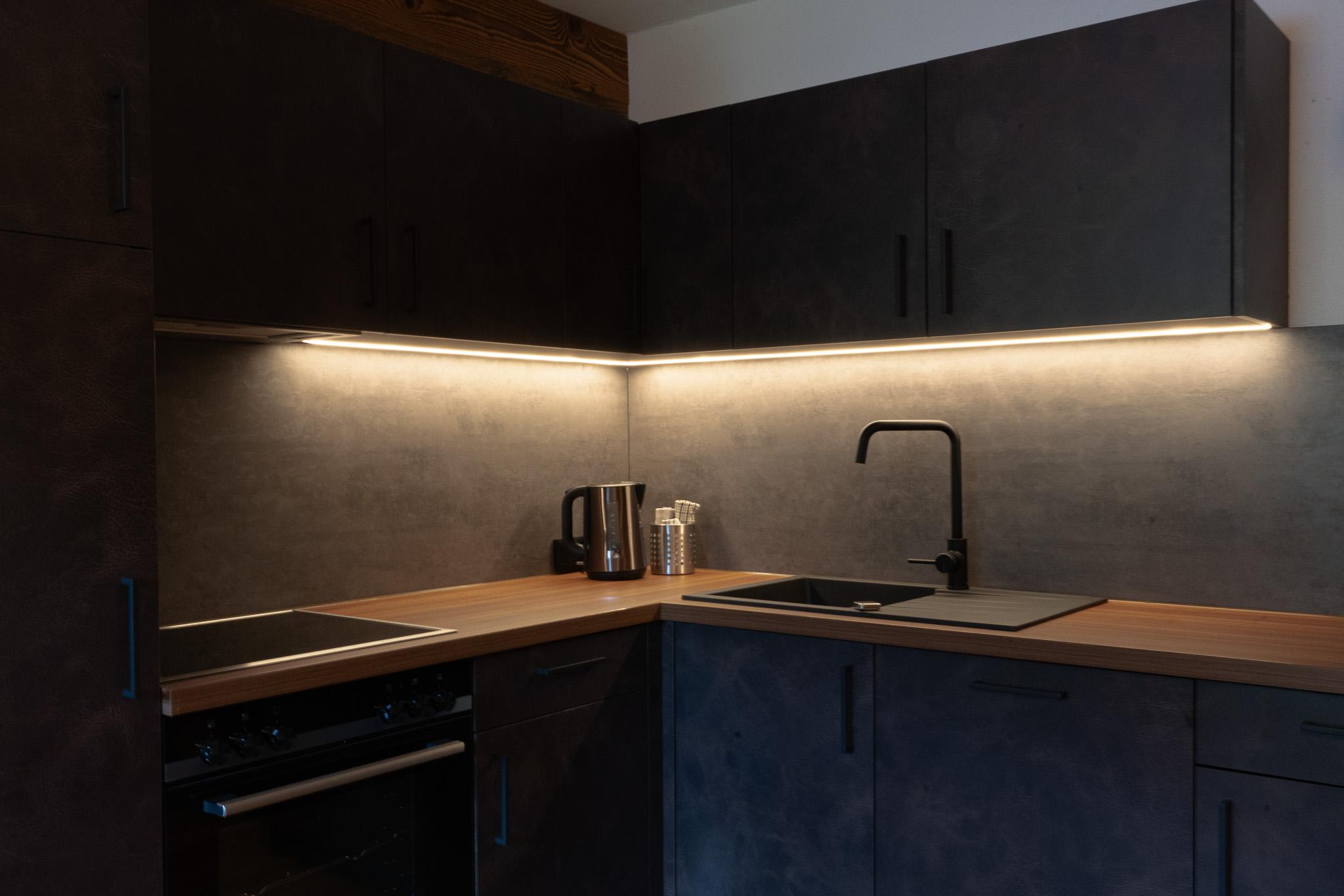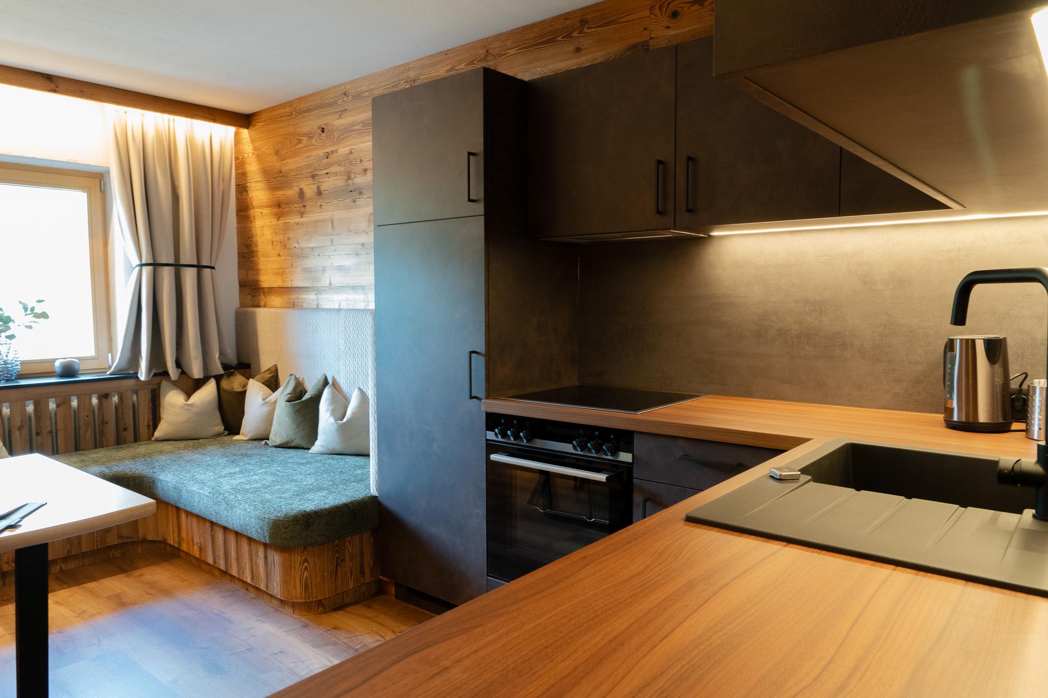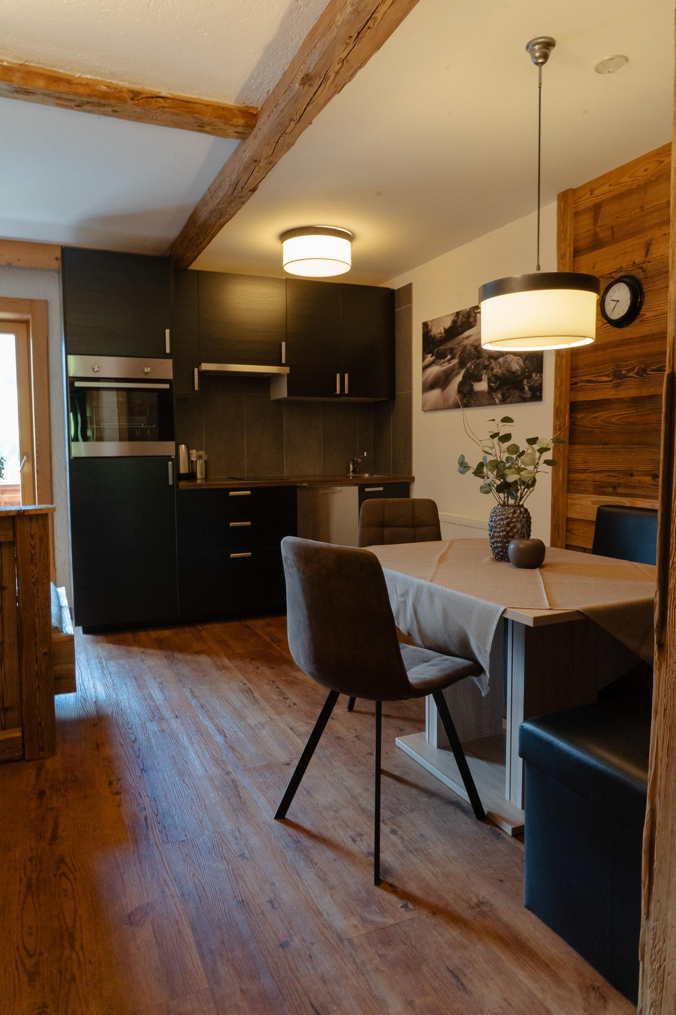 Unsere Wohnküche lädt zum Verweilen ein. Eine voll ausgestattete Küche mit Geschirrspüler, Backofen Kaffeemaschine (Nespresso) Toaster und Teekocher erwartet Sie.