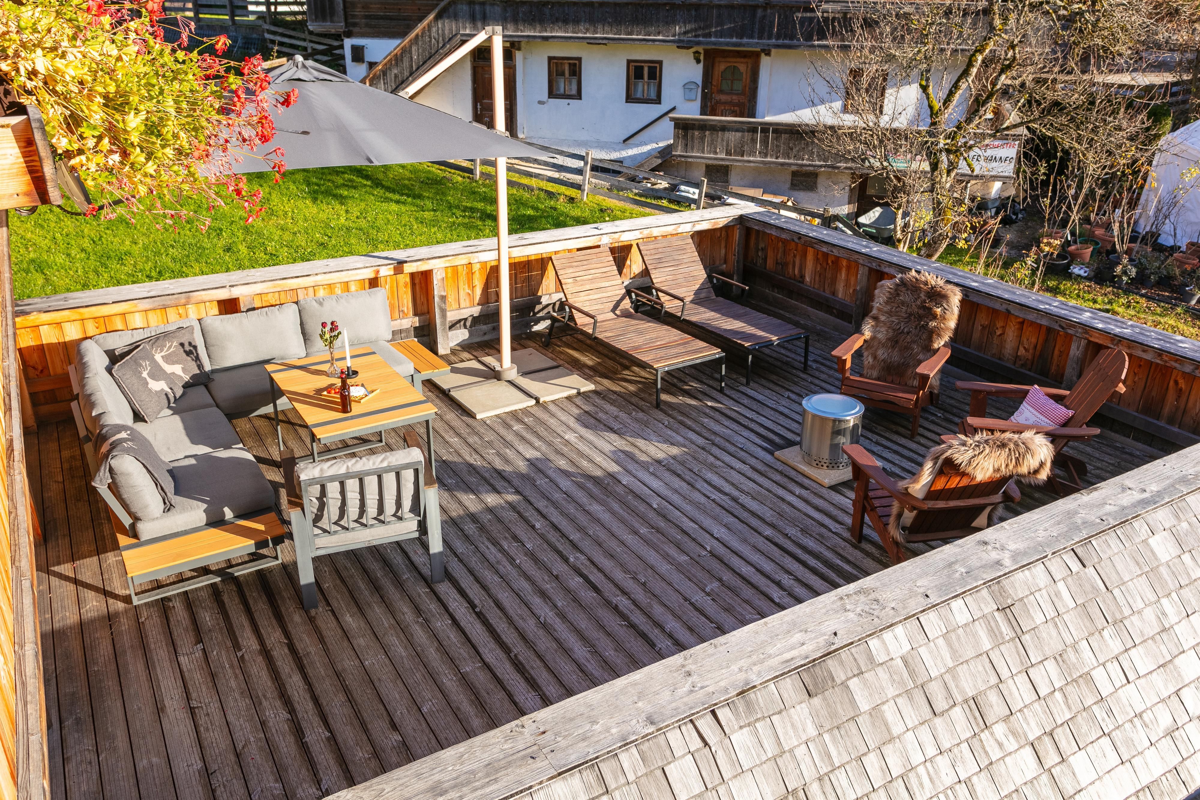 Auf der rund 9 m² großen Terrasse können Sie entspannte Sommerabende mit Blick in die Tiroler Bergwelt genießen. Ein überdachter Parkplatz steht Ihnen ebenfalls zur Verfügung.