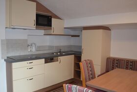 Die Wohnküche ist komplett ausgestattet mit einer Spülmaschine(Tabs vorhanden), Mikrowelle mit Grillfunktion, E-Herd (Ceran),Kaffeemaschine, Wasserkocher, Toaster, Kühlschrank und sämtlichen Geschirr.