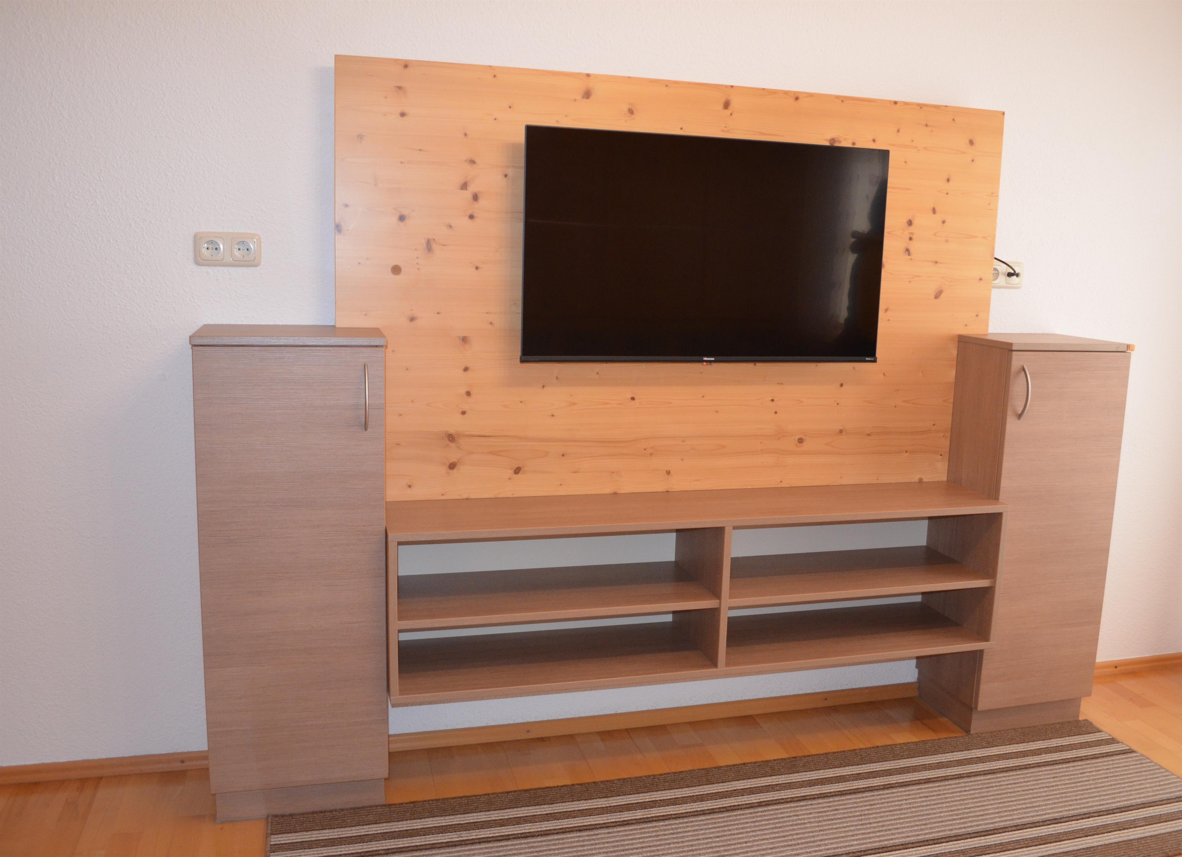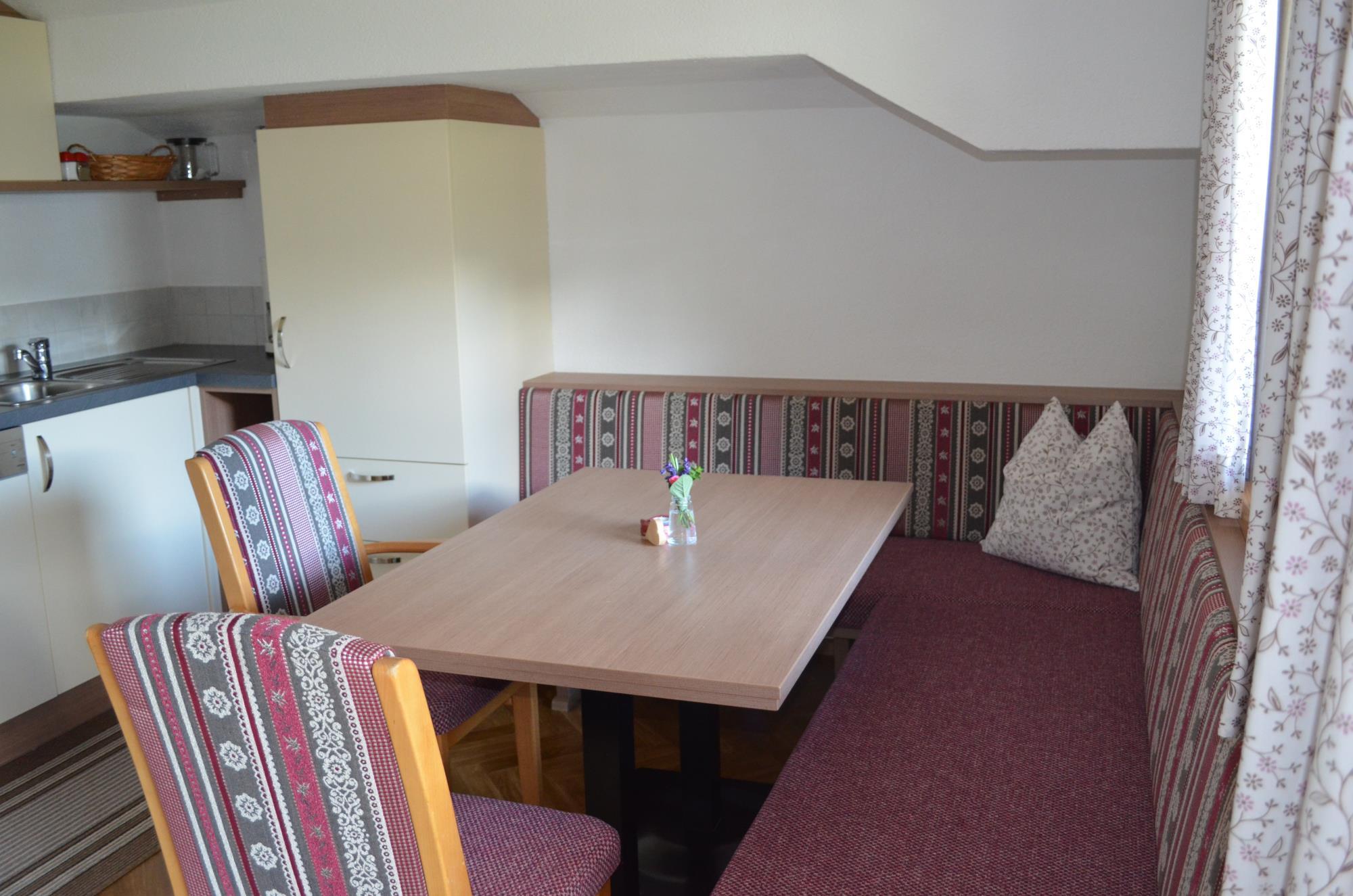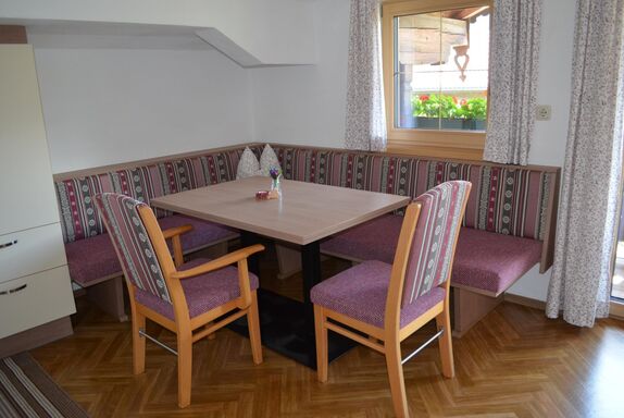 Auch in der Wohnküche: Flat TV und eine gemütliche Sitz-Essecke mit großem Esstisch.