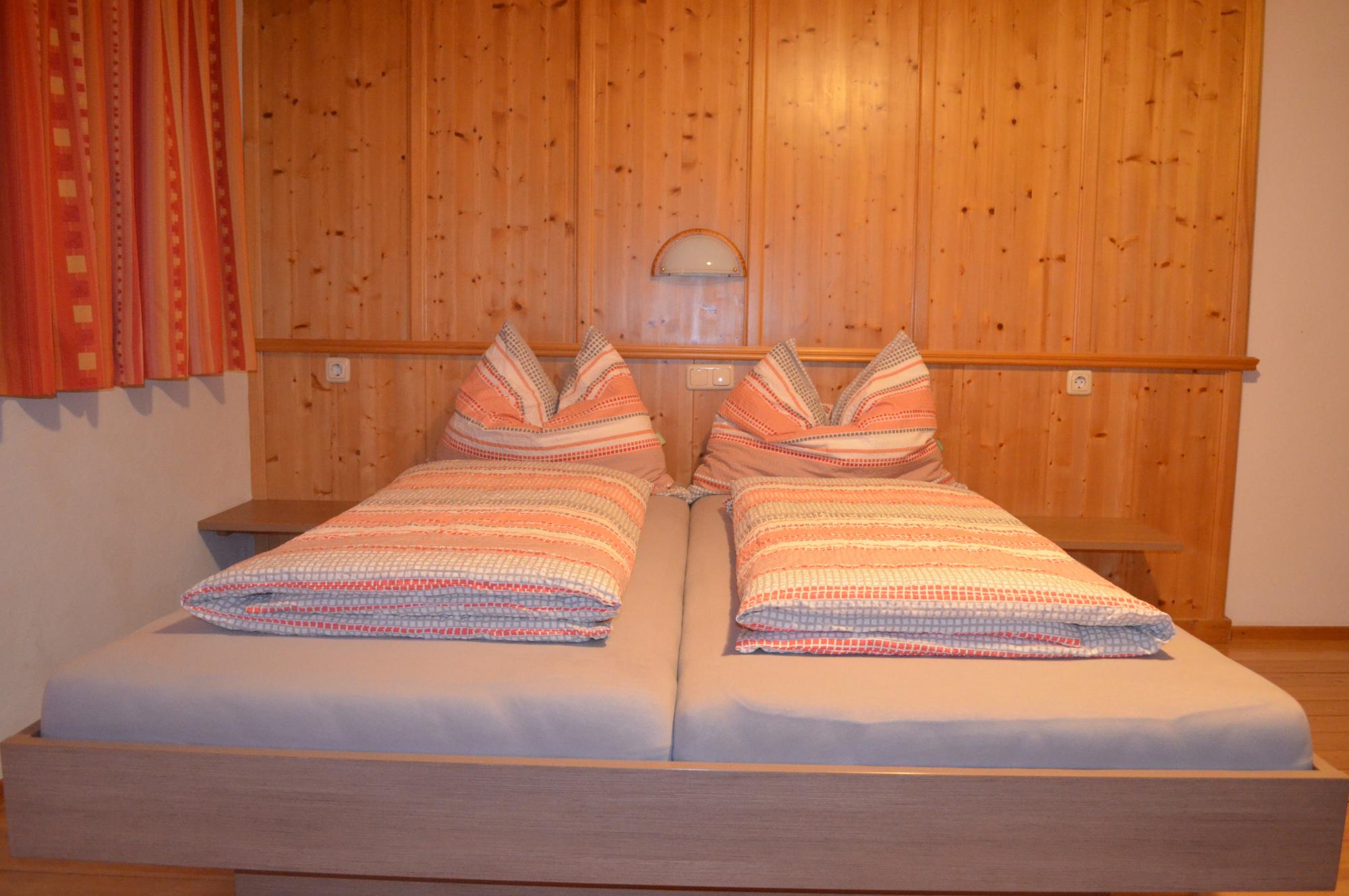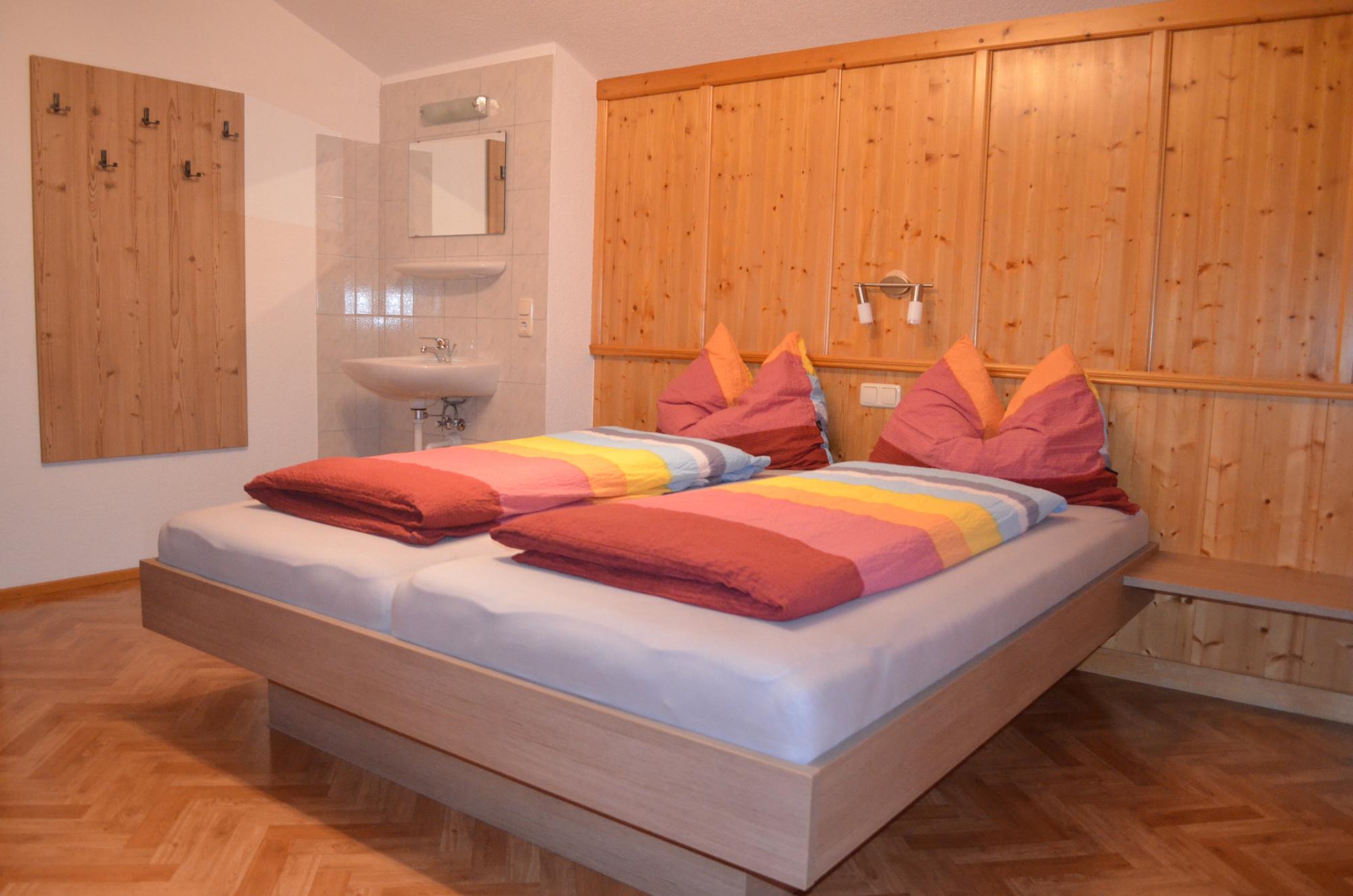 2 getrennte Schlafzimmer, eines davon ist mit Spiegel und Waschbecken ausgestattet. Die Zimmer sind hell mit viele Holzelementen und modernem Design. Bettwäsche und Handtücher sind vorhanden.