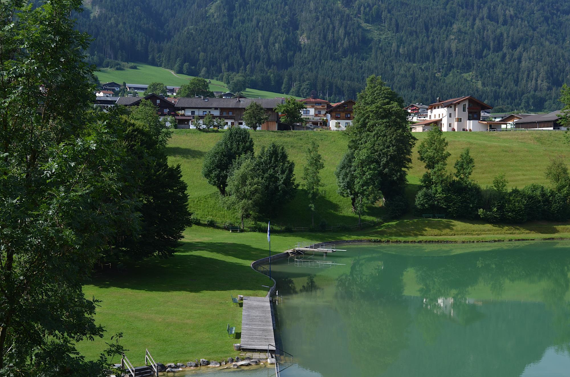 Ortskern, Gasthäuser, Bushaltestalle, Bergbahn , Badesee, Kinderspielpark, Supermarkt,Bäcker, Naturgarten Hildegard von Bingen