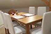 Wir haben dabei großen Wert auf die Verbindung von Modernität, Design und Charme gelegt und versucht, die Großzügigkeit von 130qm Grundfläche mit der Gemütlichkeit eines Dachgeschosses zu verbinden. Viel Weiß, alte Holzbalken und naturbelassene, breite Landhausdielen sowie ein großzügiges, helles Bad mit hochwertigen Armaturen, Fliesen und einer einzigartigen Wandstruktur ergeben ein ganz spezielles Ambiente.