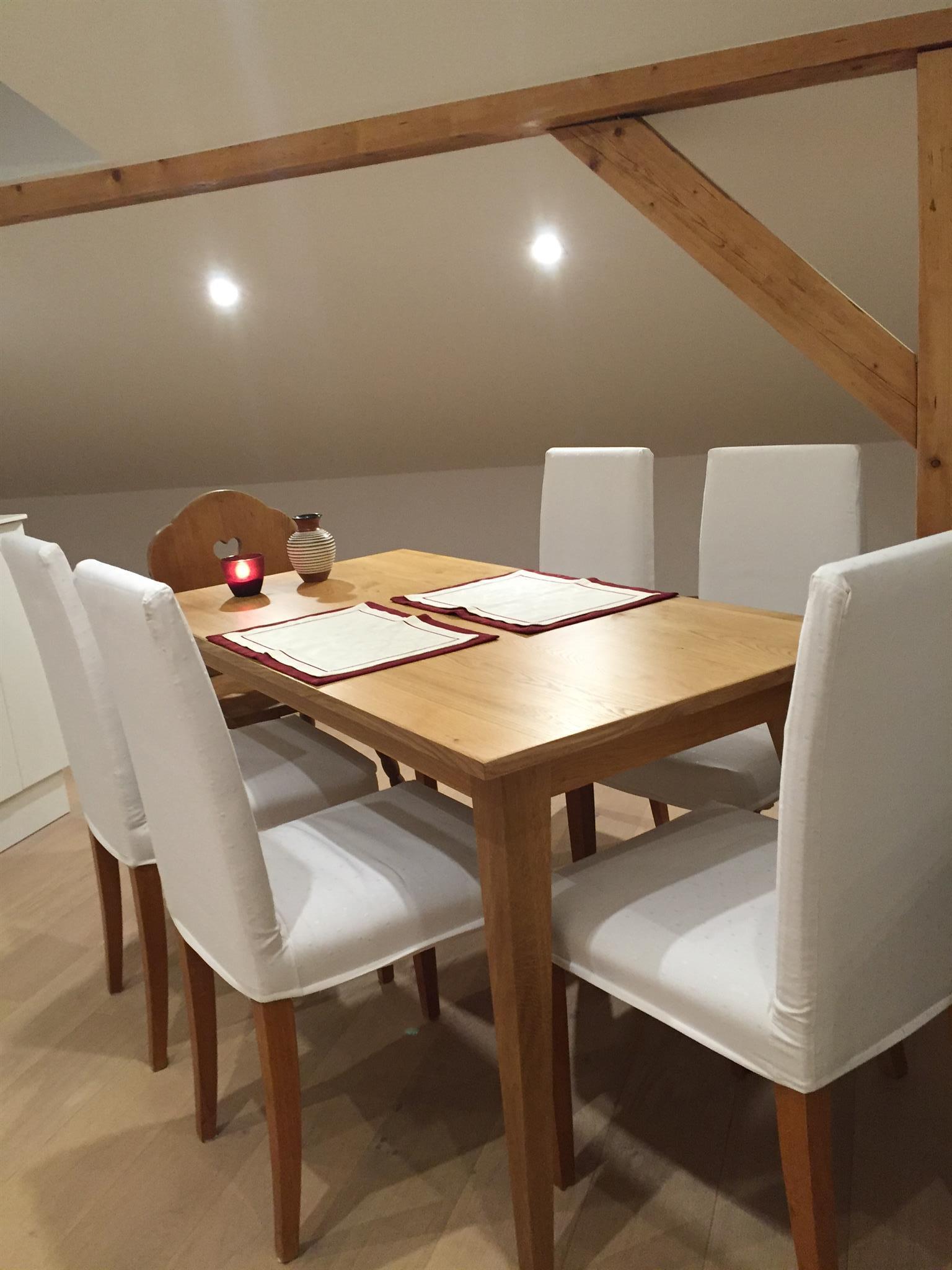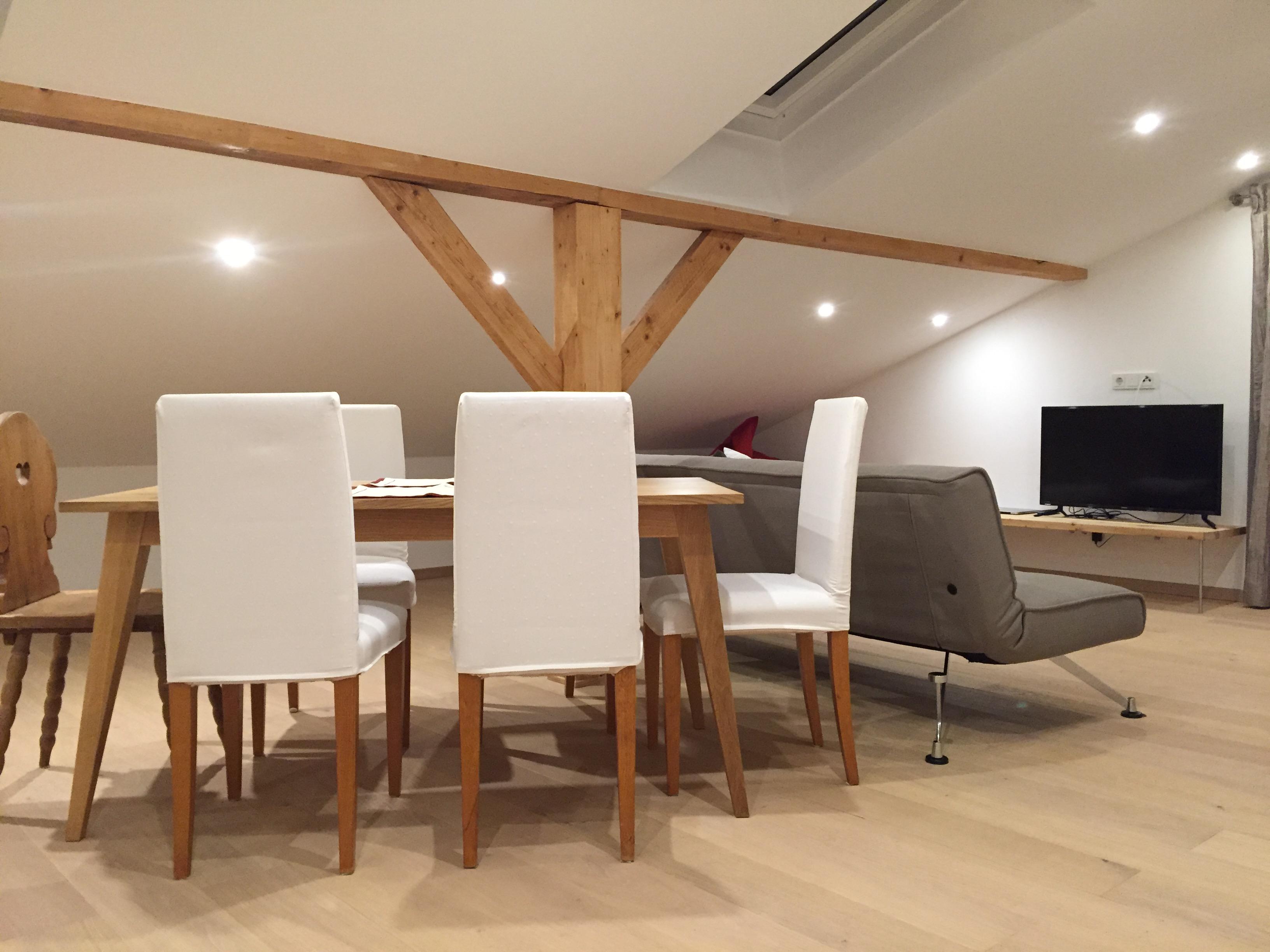 Das Appartement liegt im Dachgeschoss unseres Wohnhauses im Aicher Ortsteil Assach-Oberdorf. Es wurde 2015 neu gebaut und ist in einem modernen, klaren und dennoch sehr gemütlichen Stil eingerichtet.