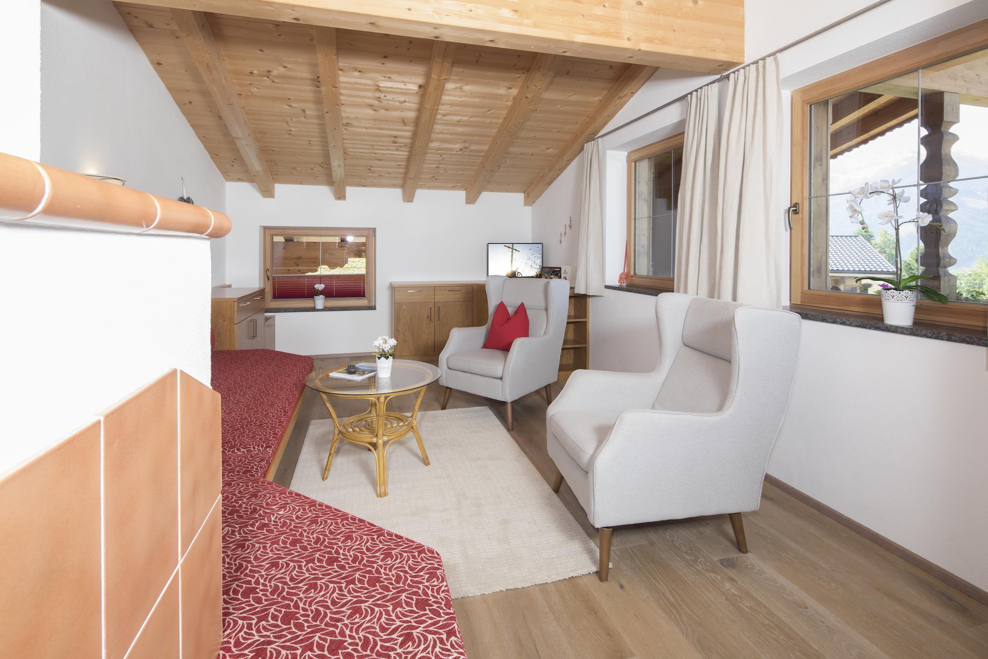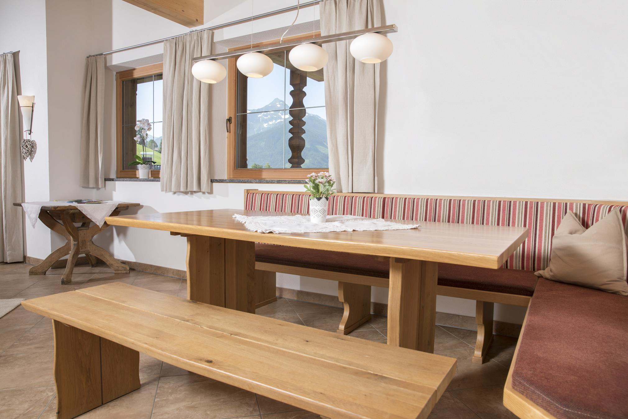 Die Ferienwohnung Roßmoos ist 150m² groß und verfügt über 3 Schlafzimmer (2 Doppelzimmer, 1 Zweibettzimmer) und hat einen herrlichen Ausblick in die Alpbachtaler Berge. Die vollausgestattet Küche mit Sitzecke und einem gemütlichen Wohnbereich lädt zum Verweilen ein.